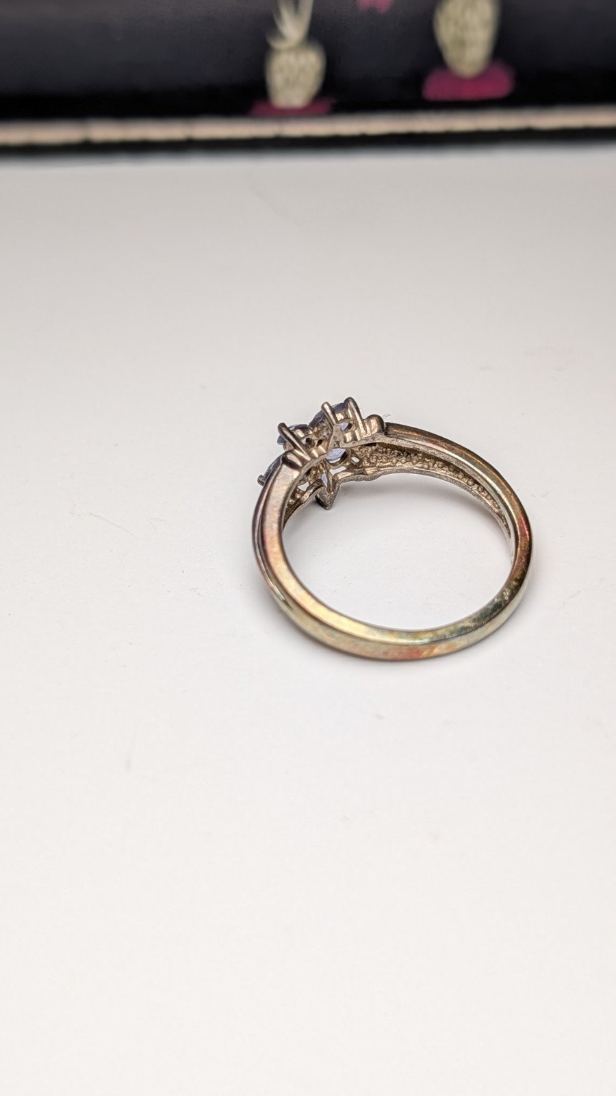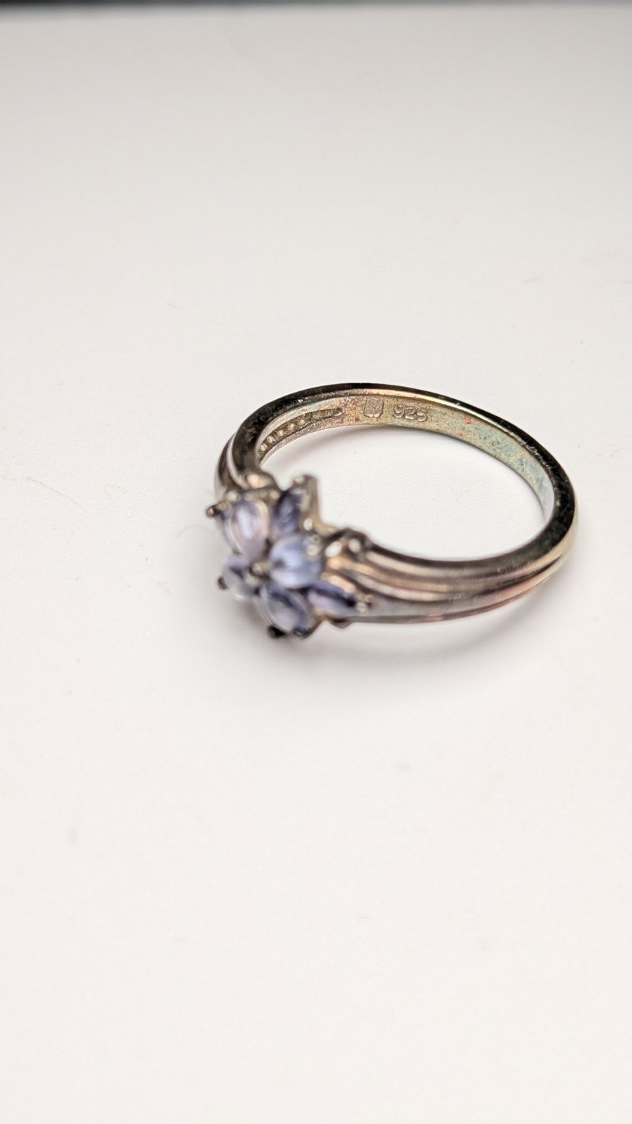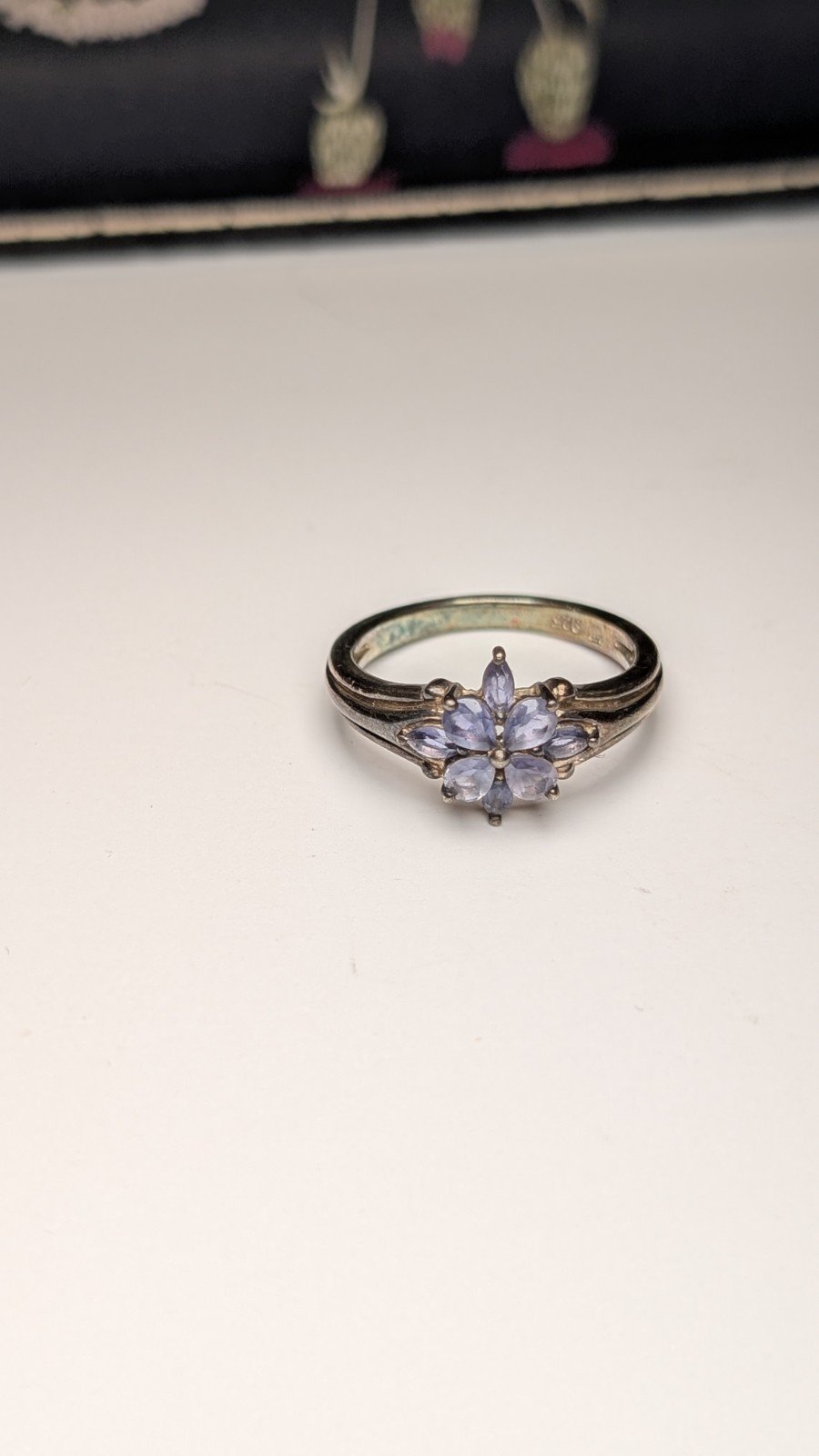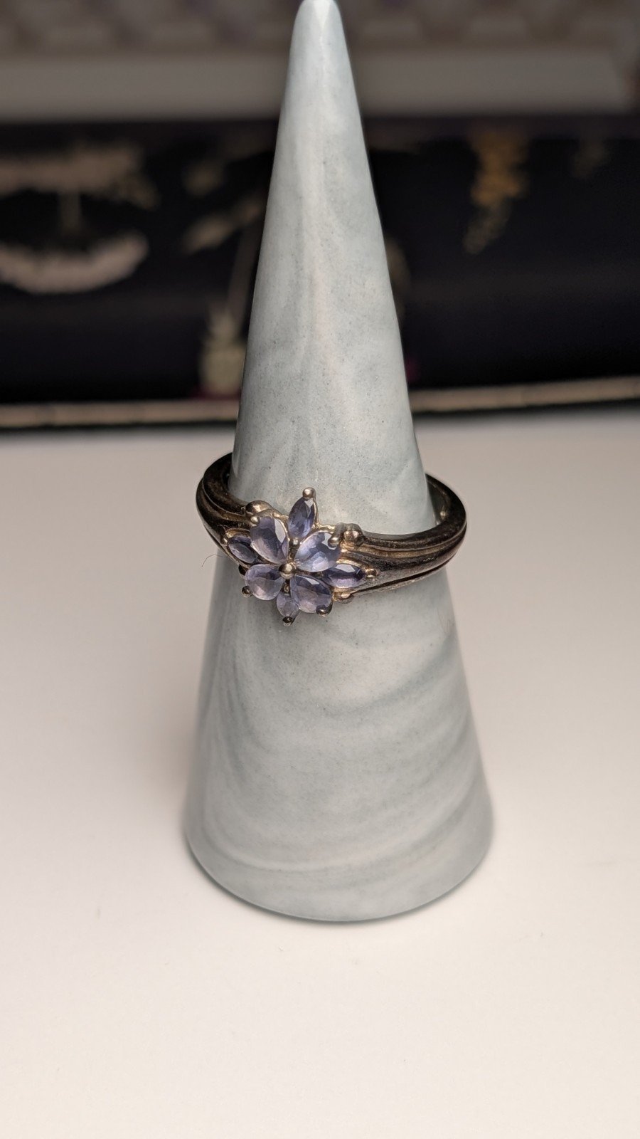Vintage Sterling Silver Iolite Gemstone Flower Ring | Size R 1/2 | 925 Silver