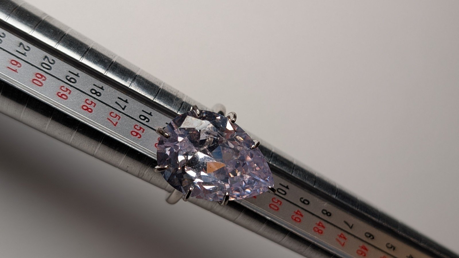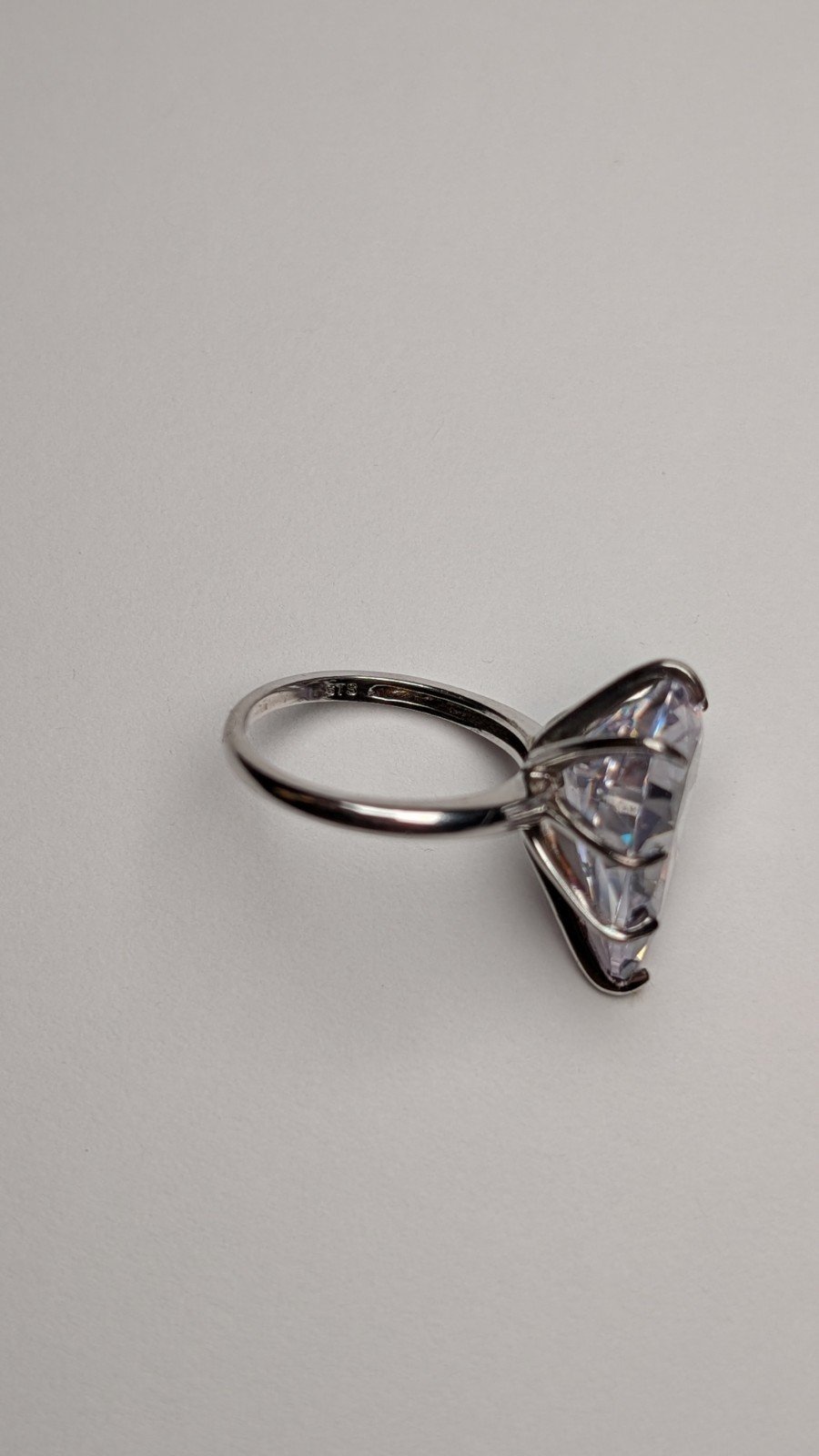 Vintage Sterling Silver Large CZ Teardrop Droplet Clear Ring | Size N | 925