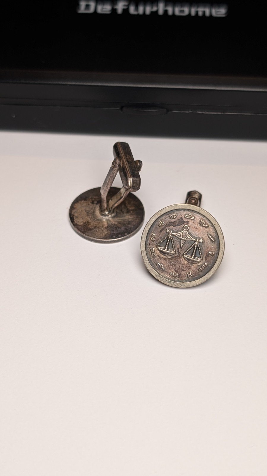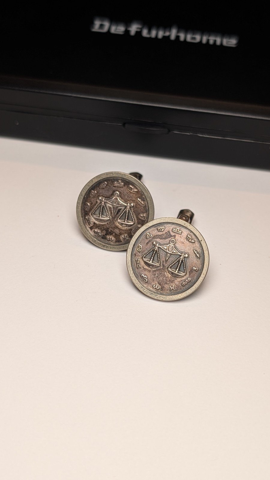 The cufflinks feature a star sign emblem, perfect for those born under the sign of Libra.