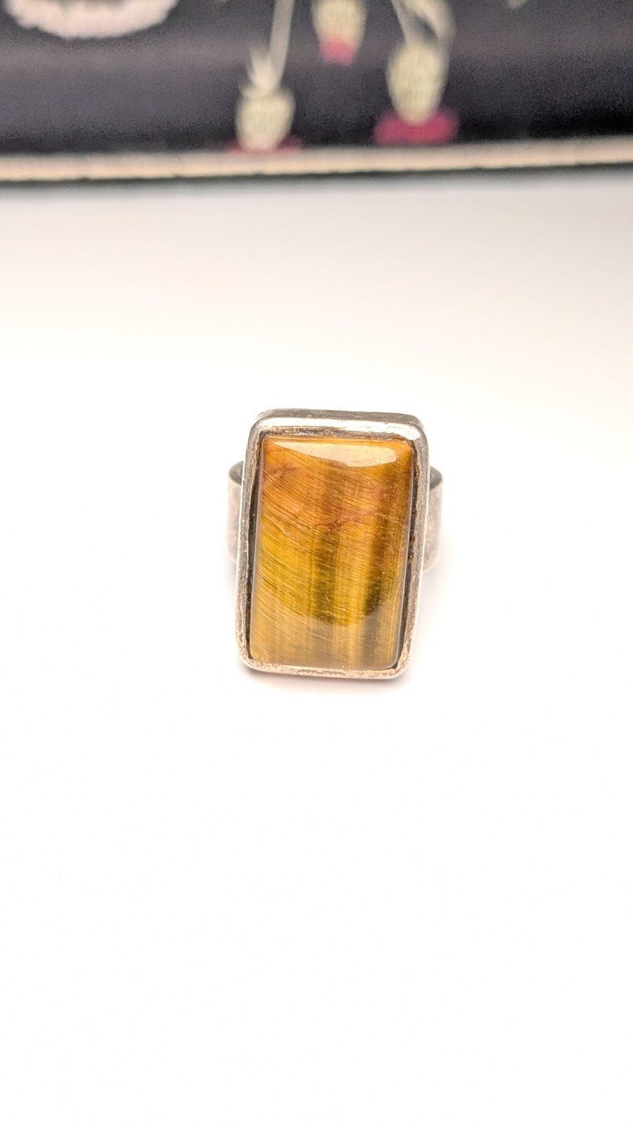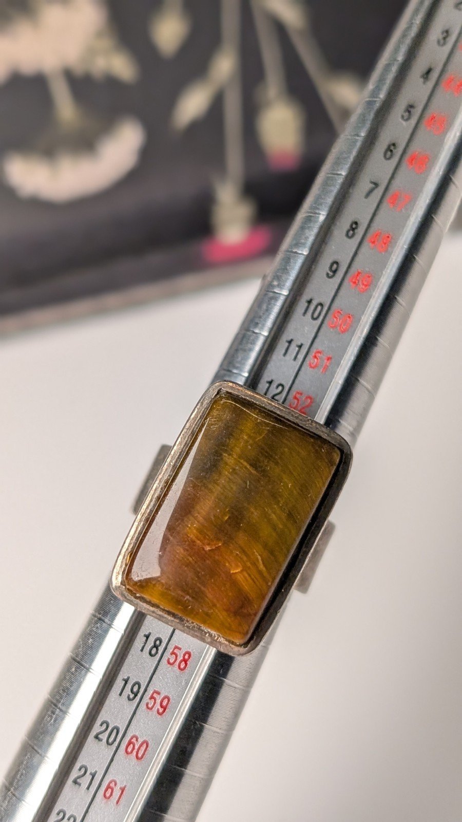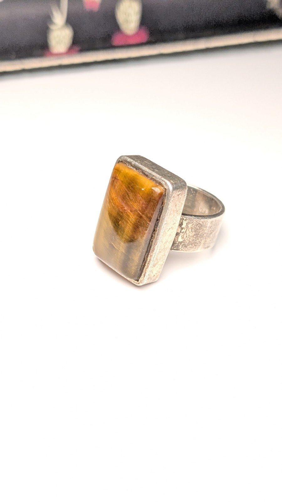 Vintage Sterling Silver Men’s Chunky Tigers Eye Ring | Size O | 925 Silver