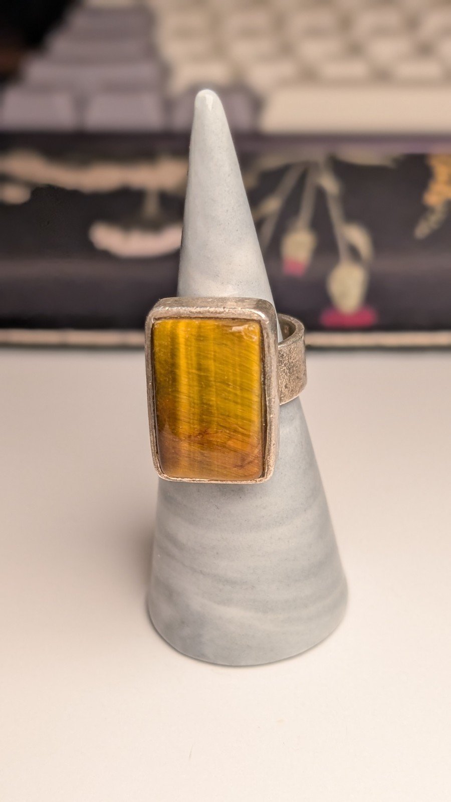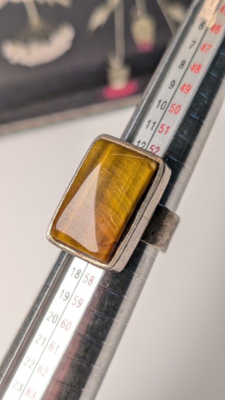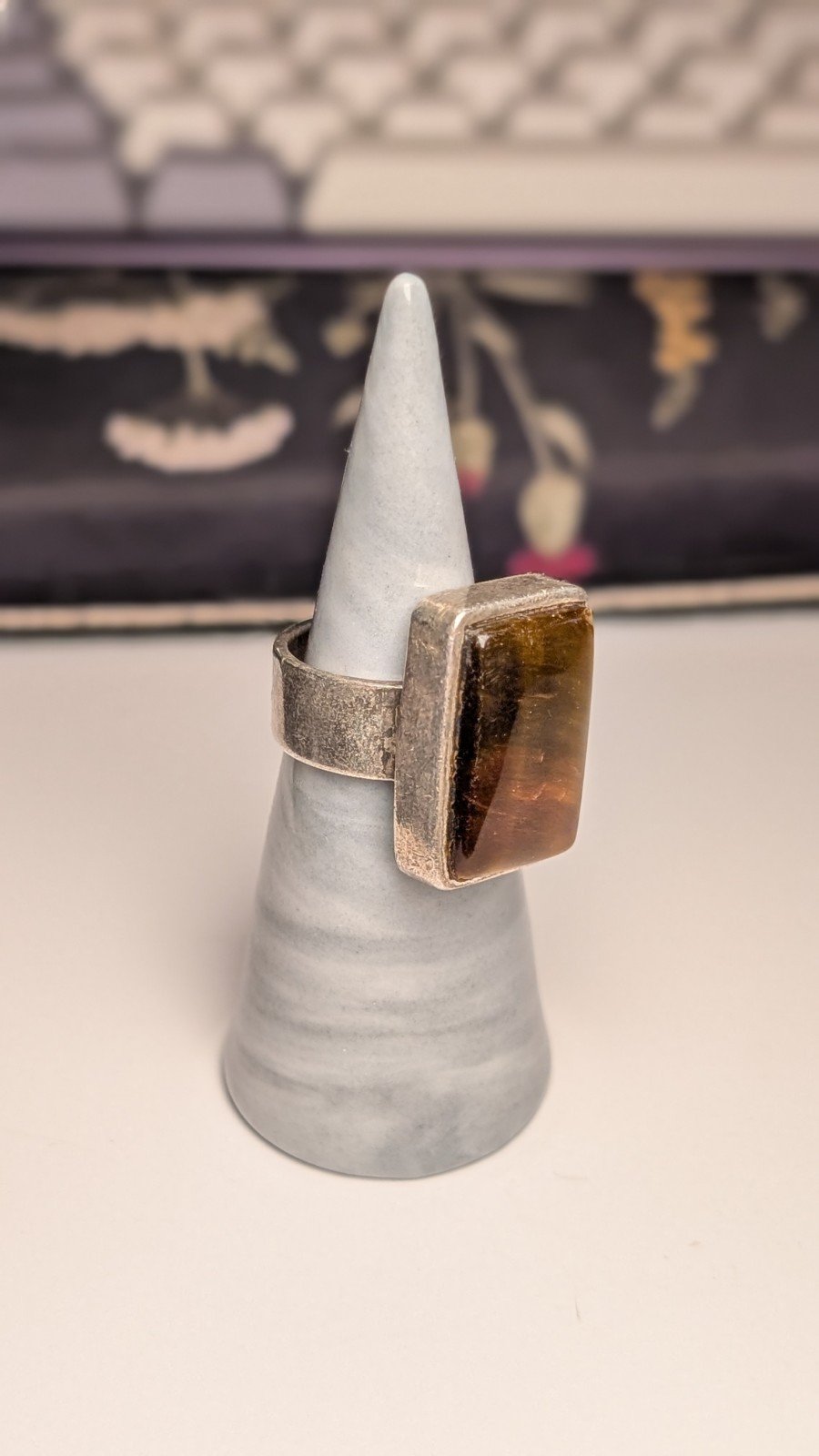 Vintage Sterling Silver Men’s Chunky Tigers Eye Ring | Size O | 925 Silver