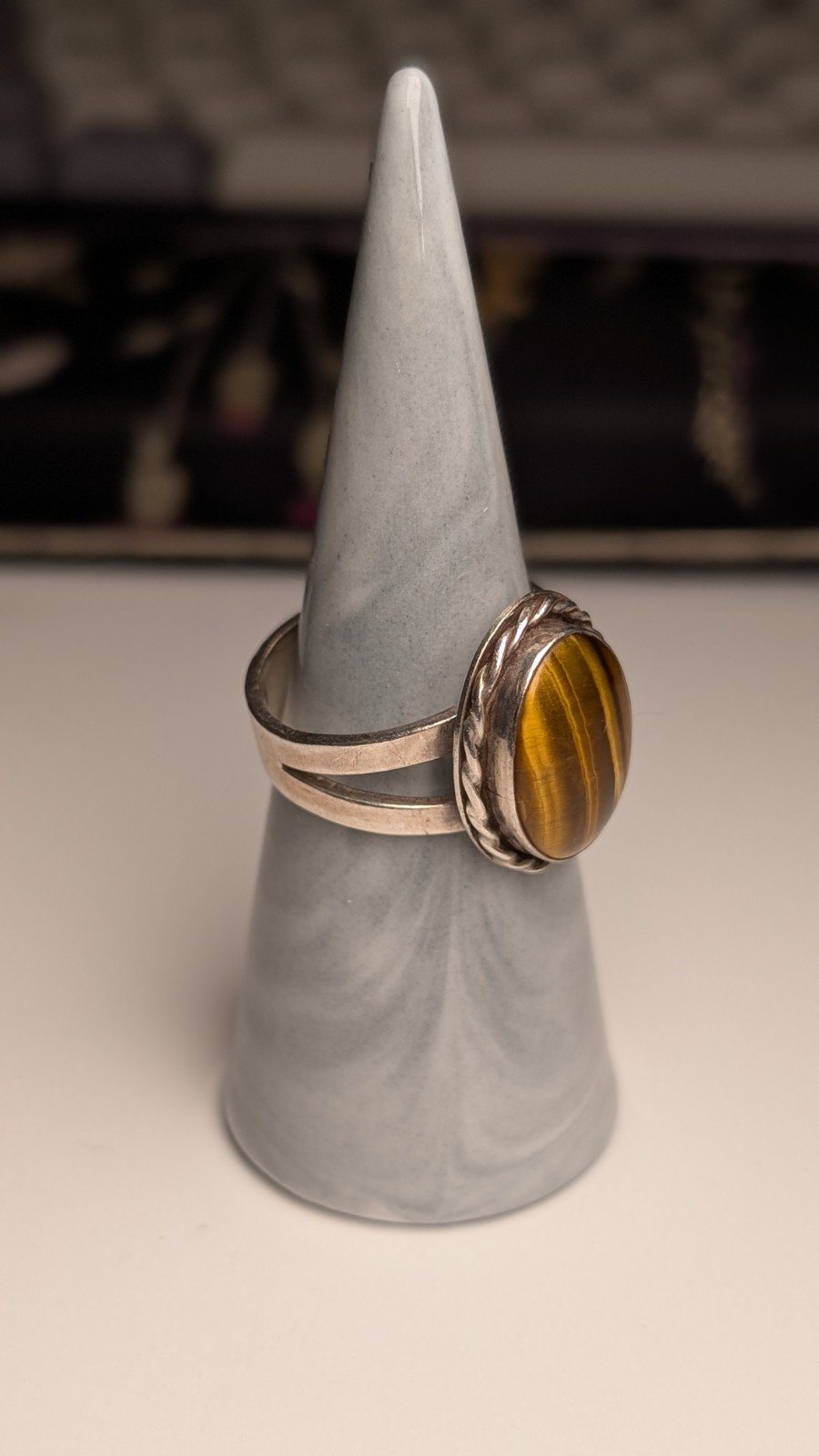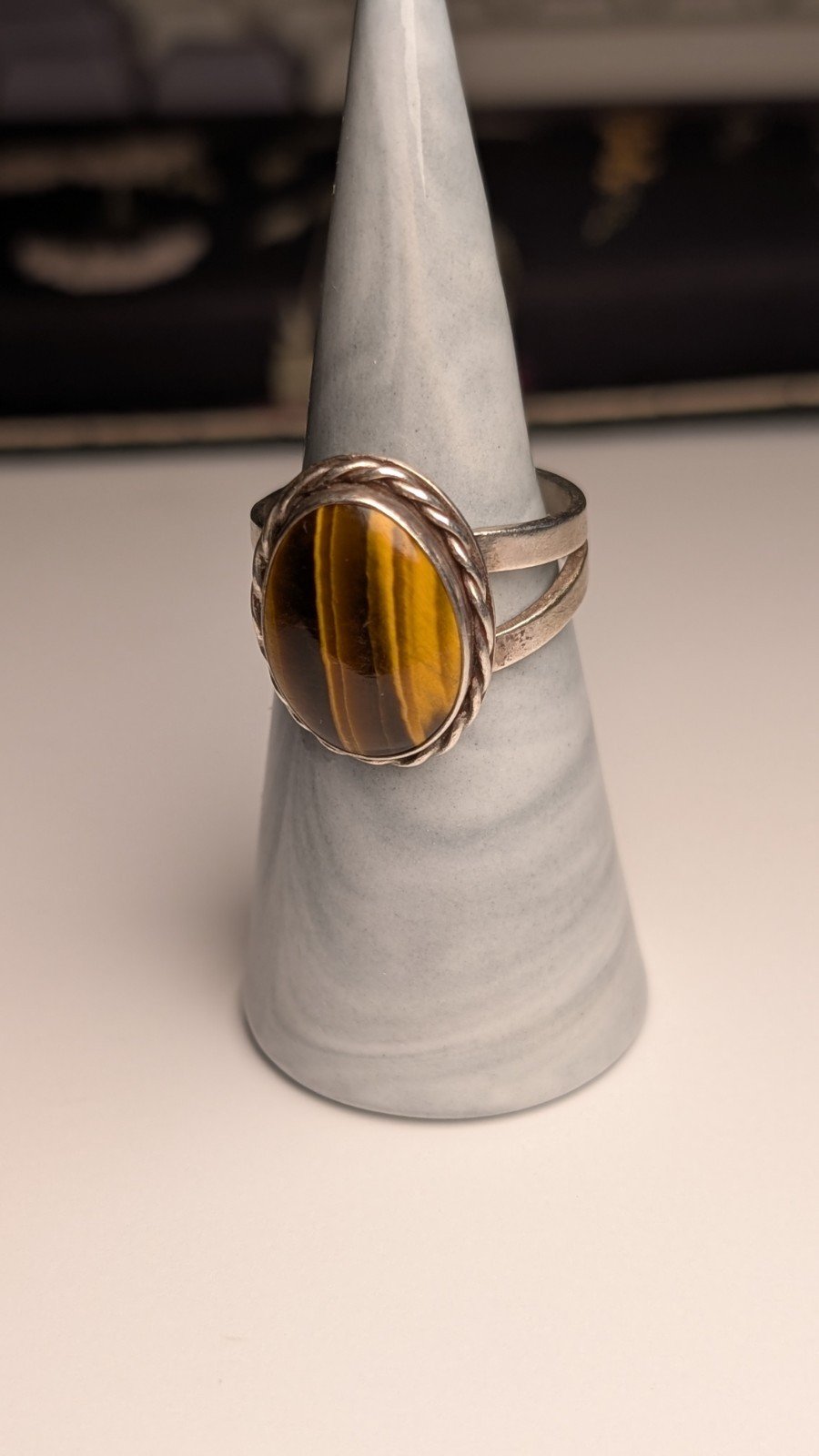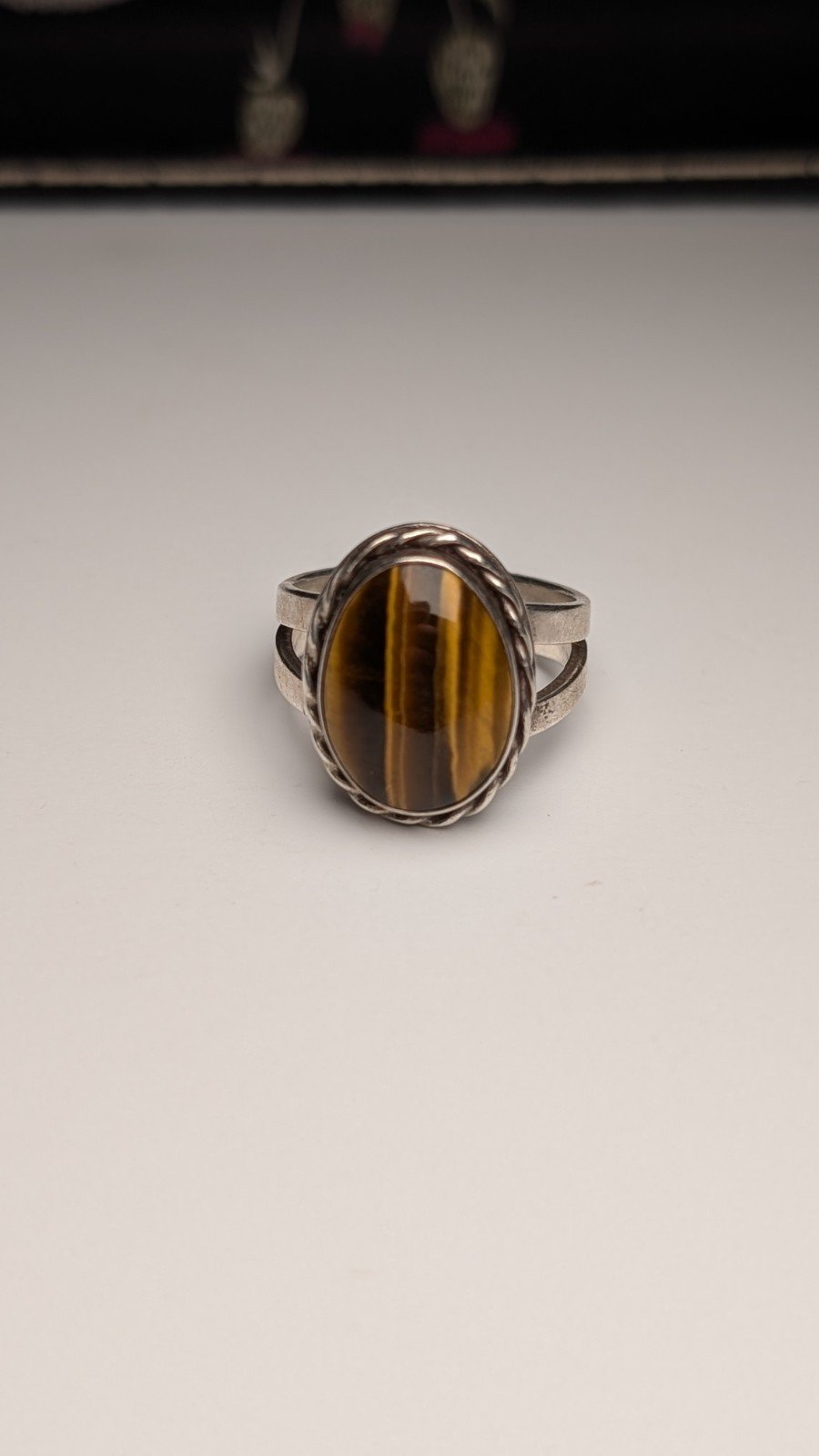 Vintage Sterling Silver Men’s Tigers Eye Ring | Size S | 925 Silver