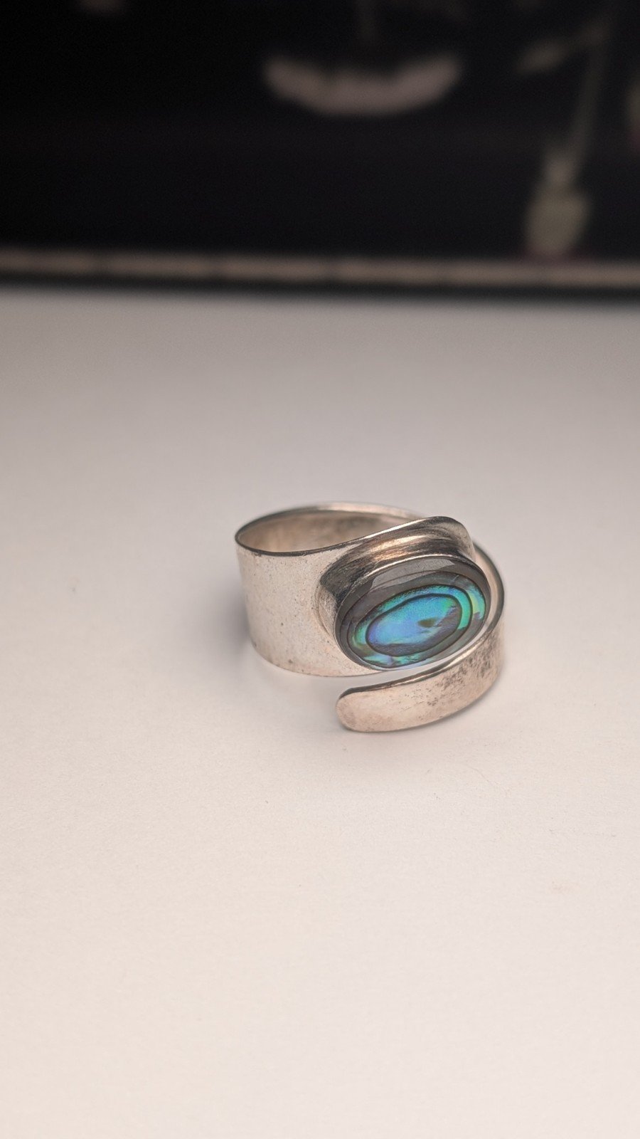 Vintage Sterling Silver Mother Of Pearl Spiral Ring | Size Q (Resizable) | 925