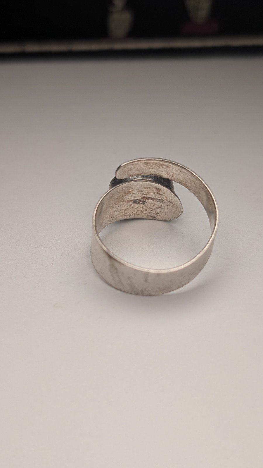 This ring can be slightly resized by stretching/manipulating it due to the design (please see images).