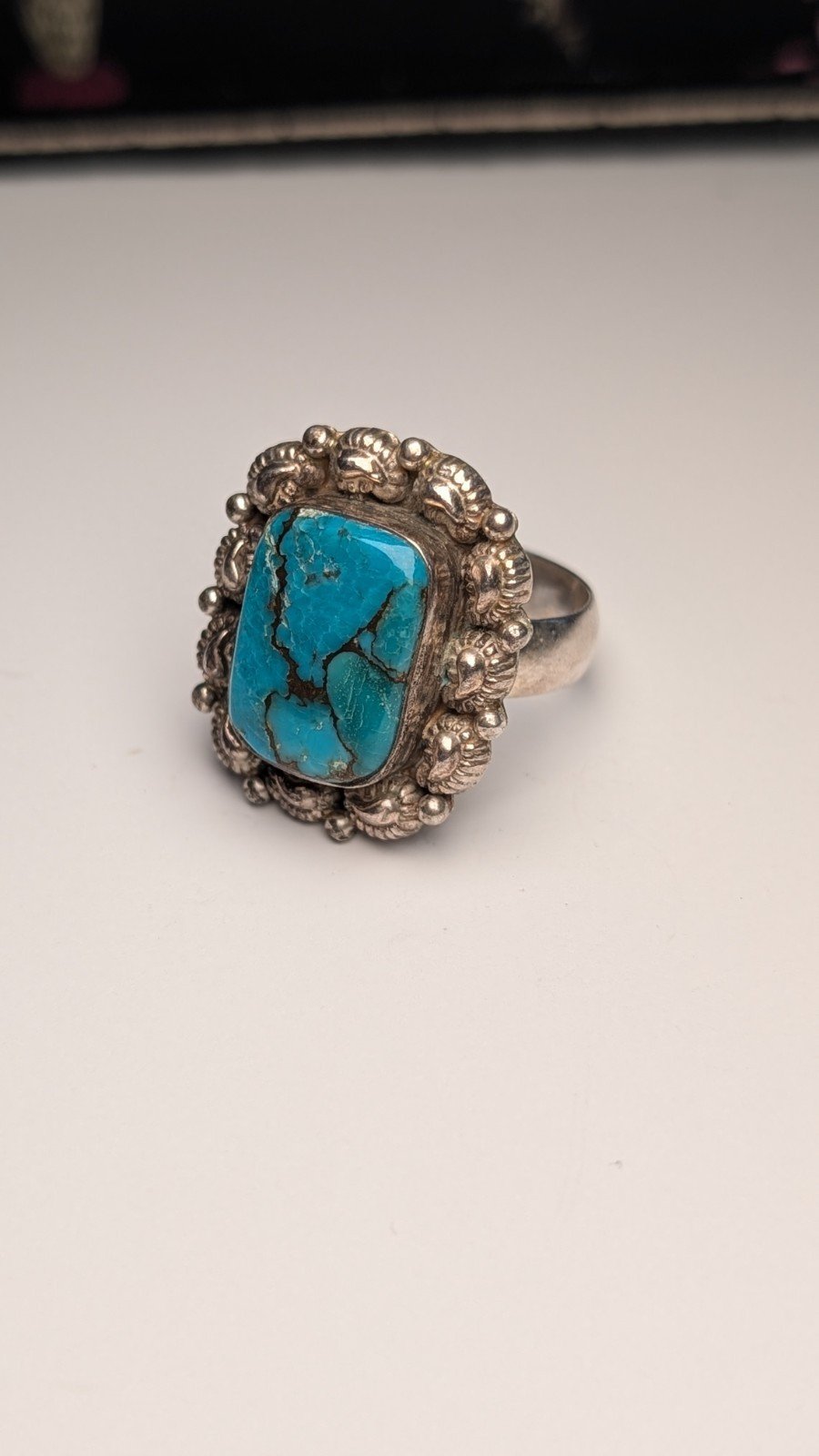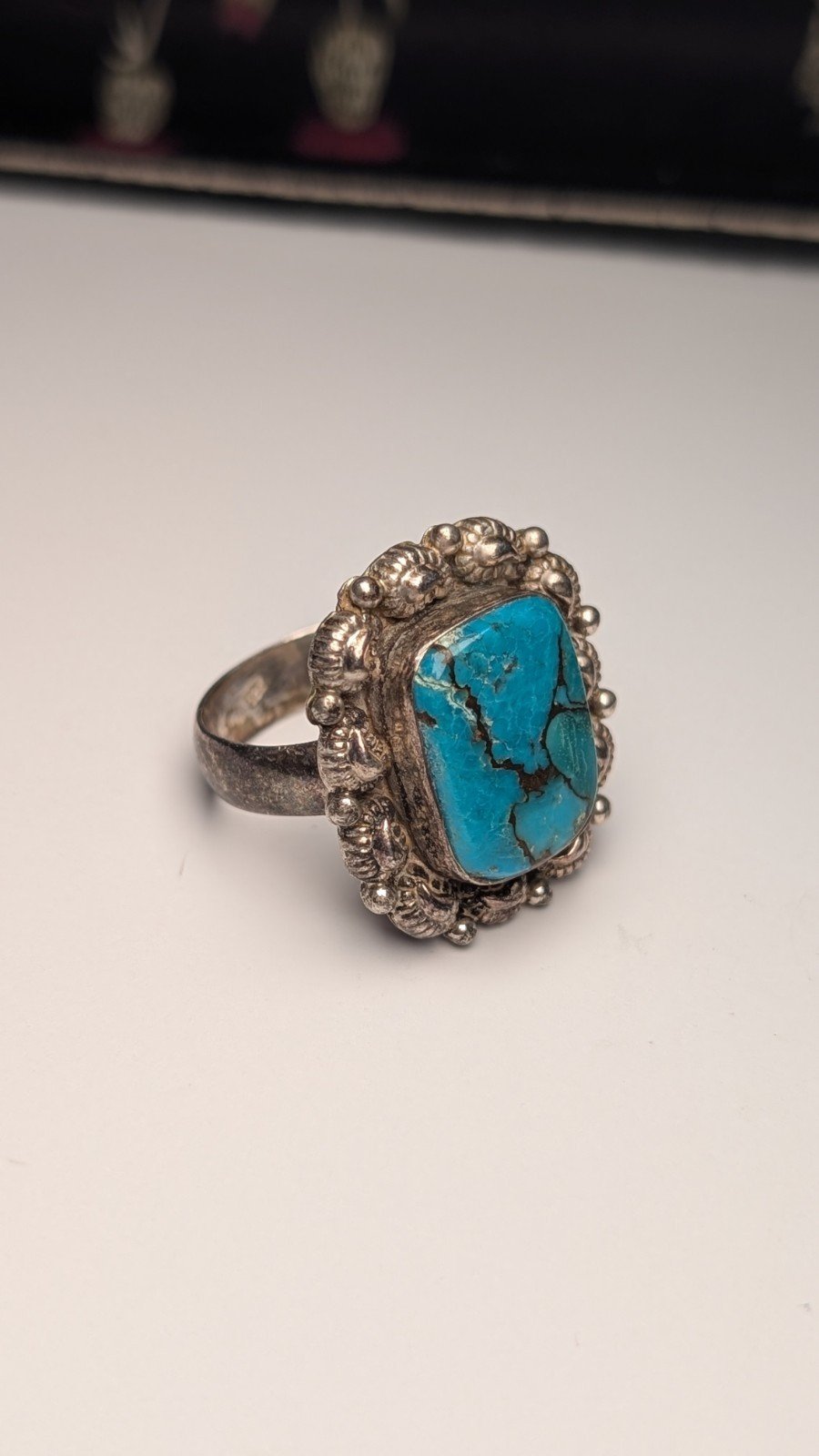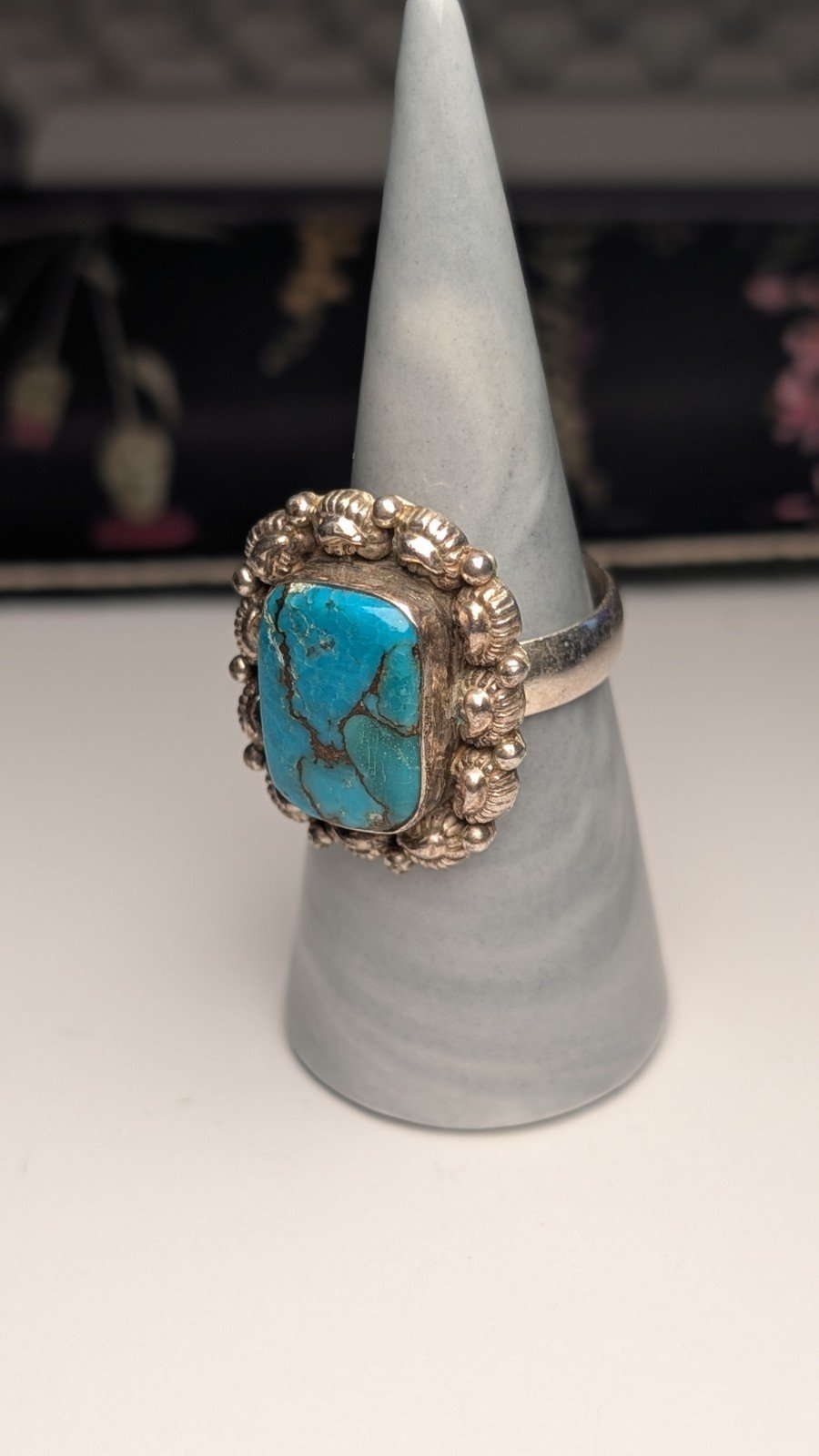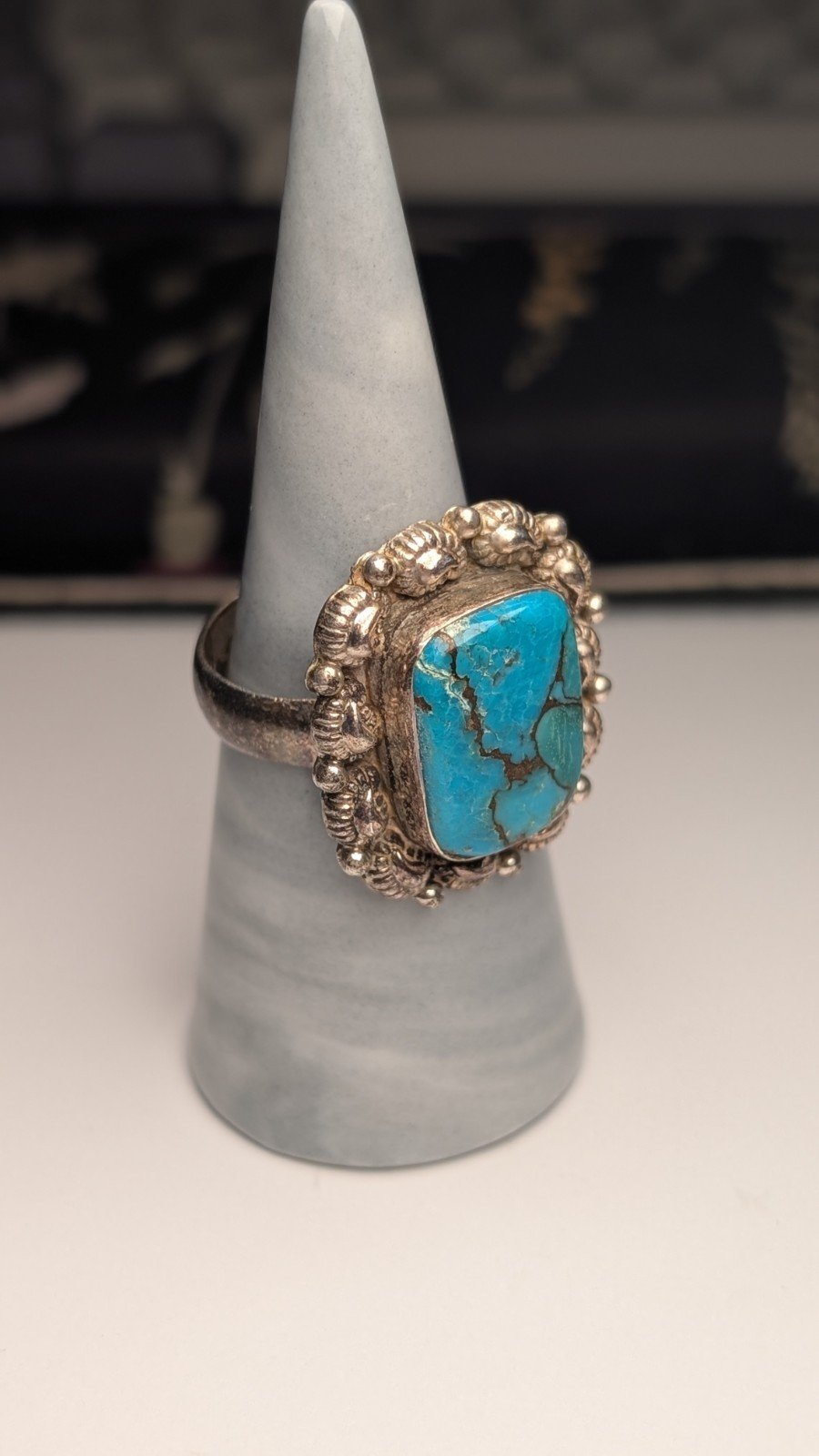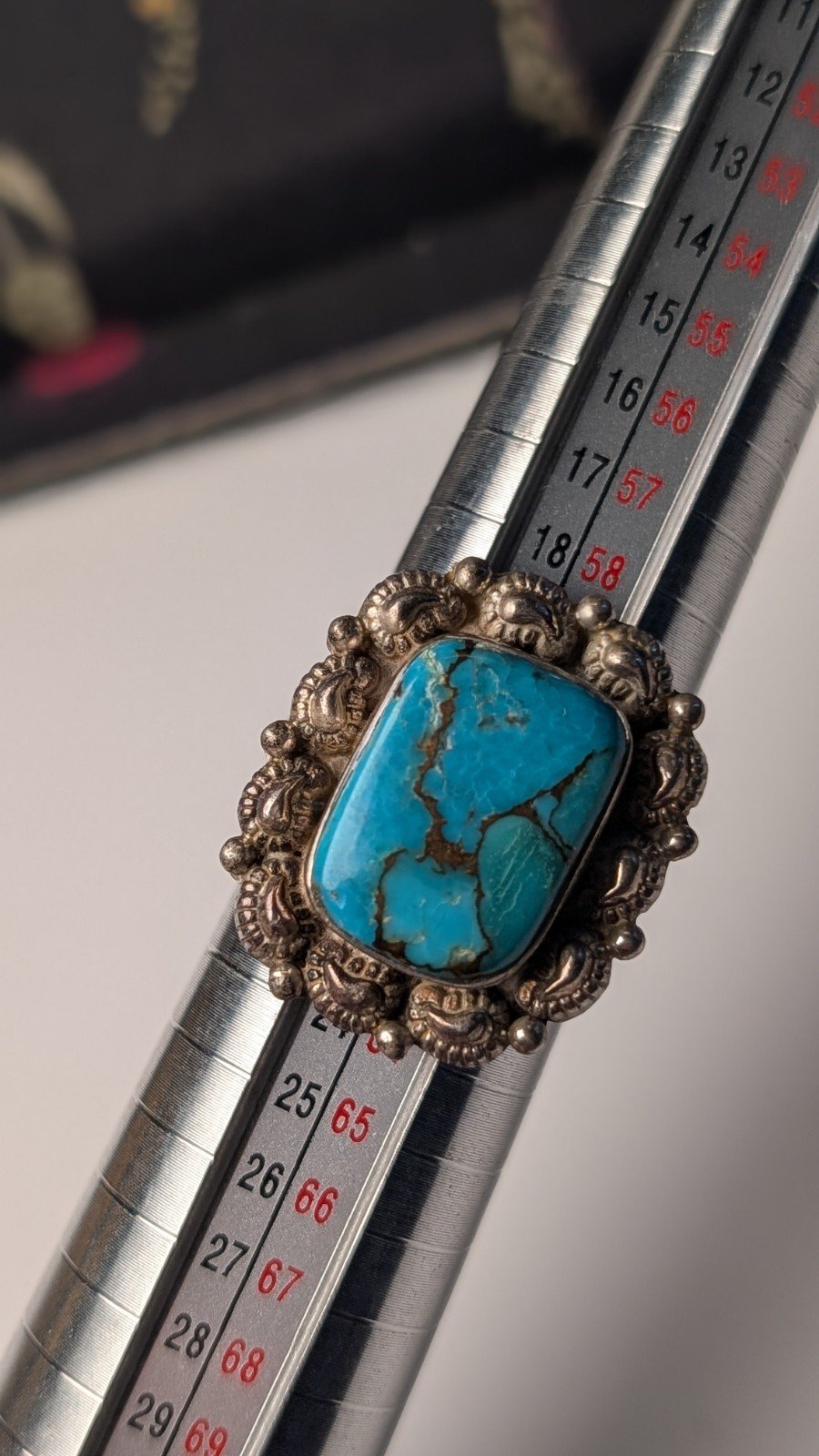 Vintage Sterling Silver Natural Blue Turquoise Ring | Size T | 925 Silver