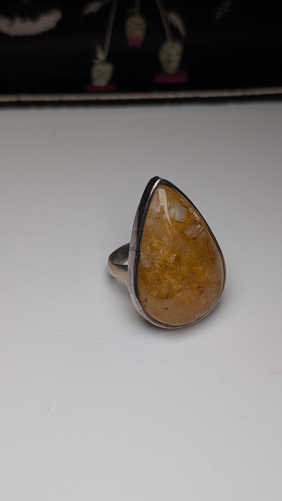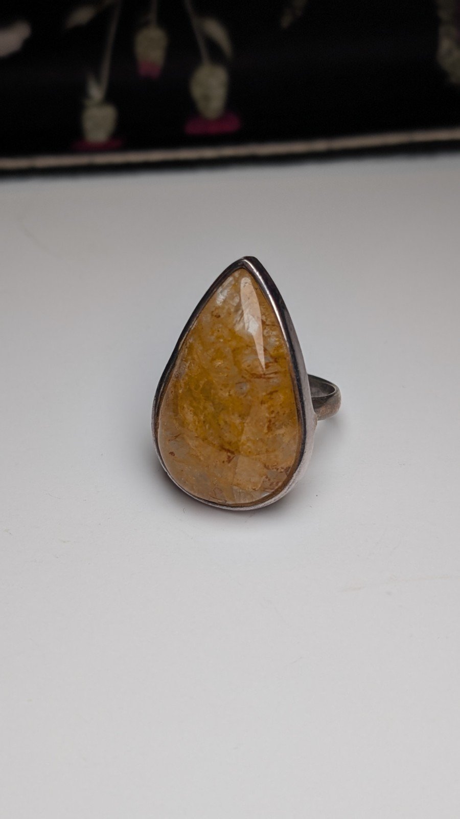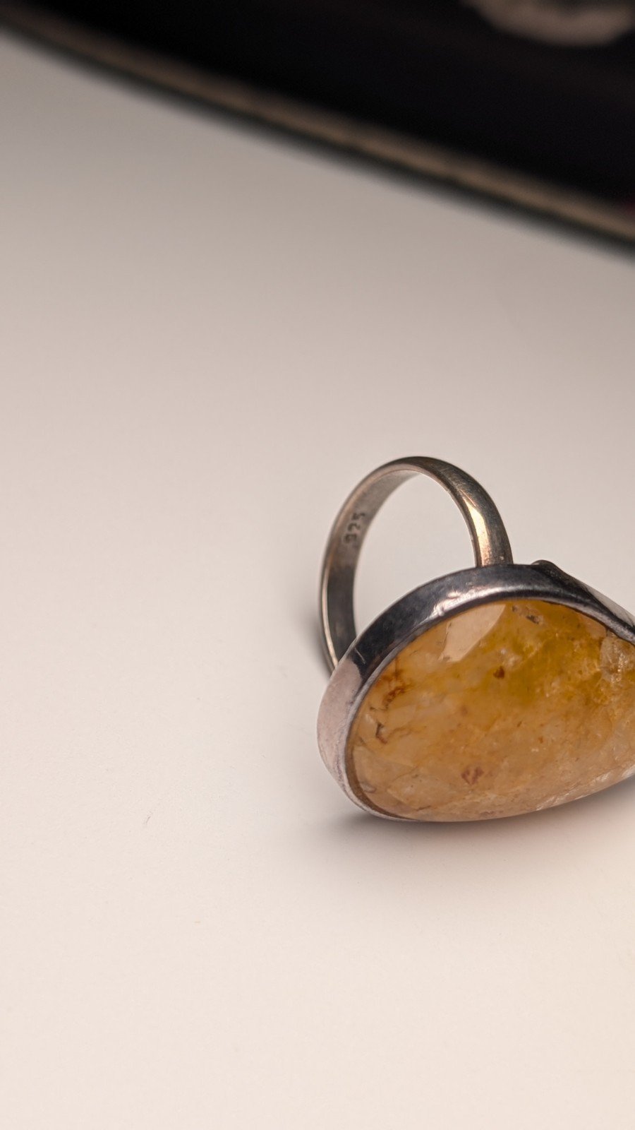 Vintage Sterling Silver Natural Yellow Jasper Ring | Size P | 925 Silver