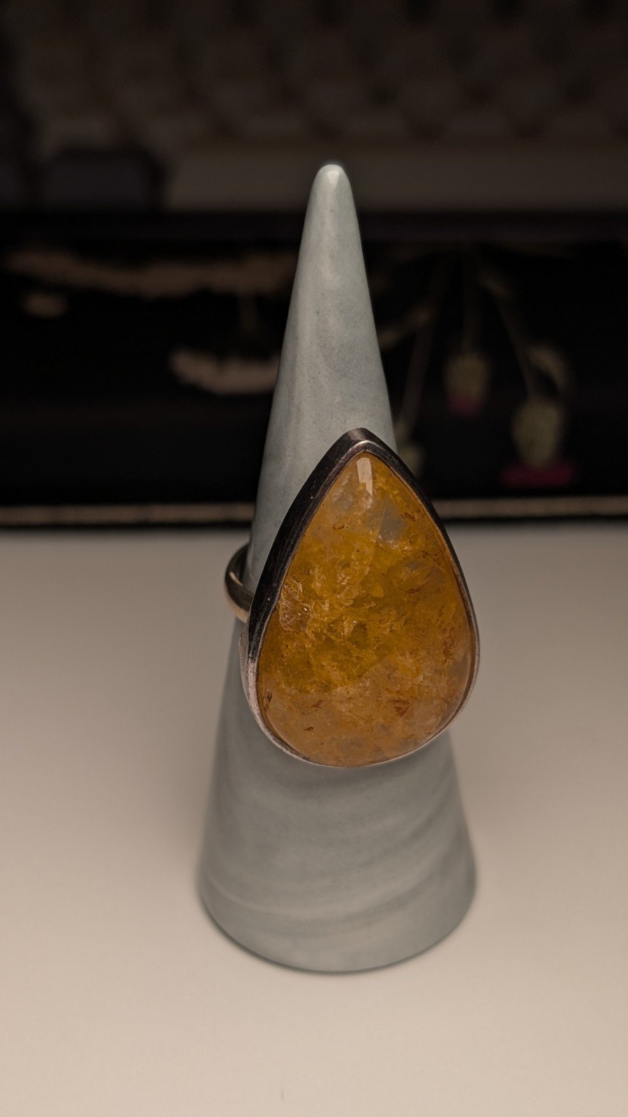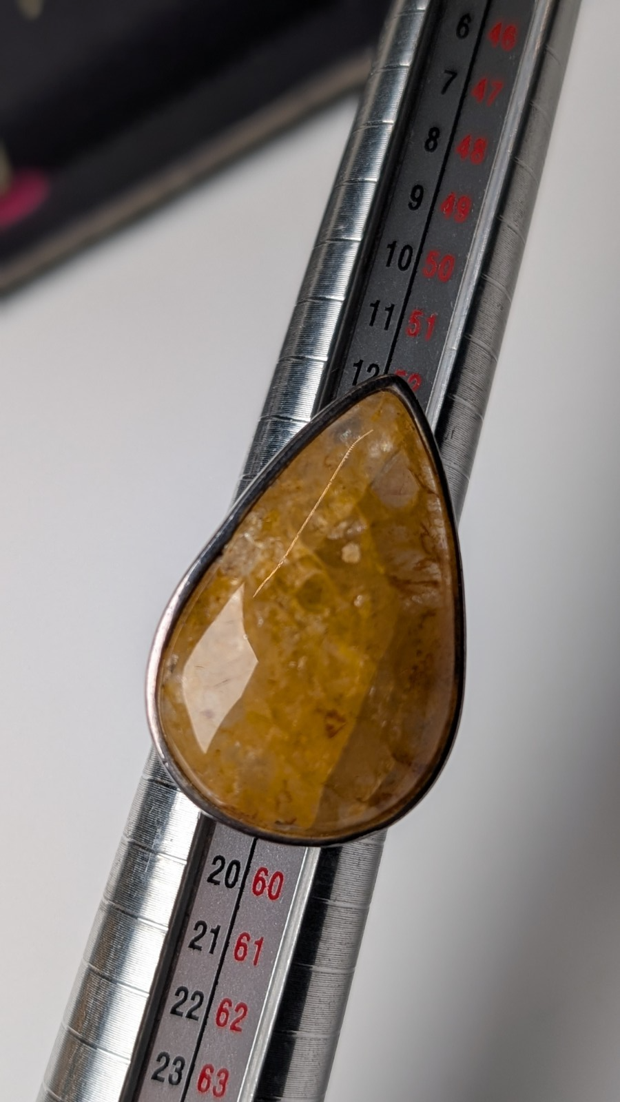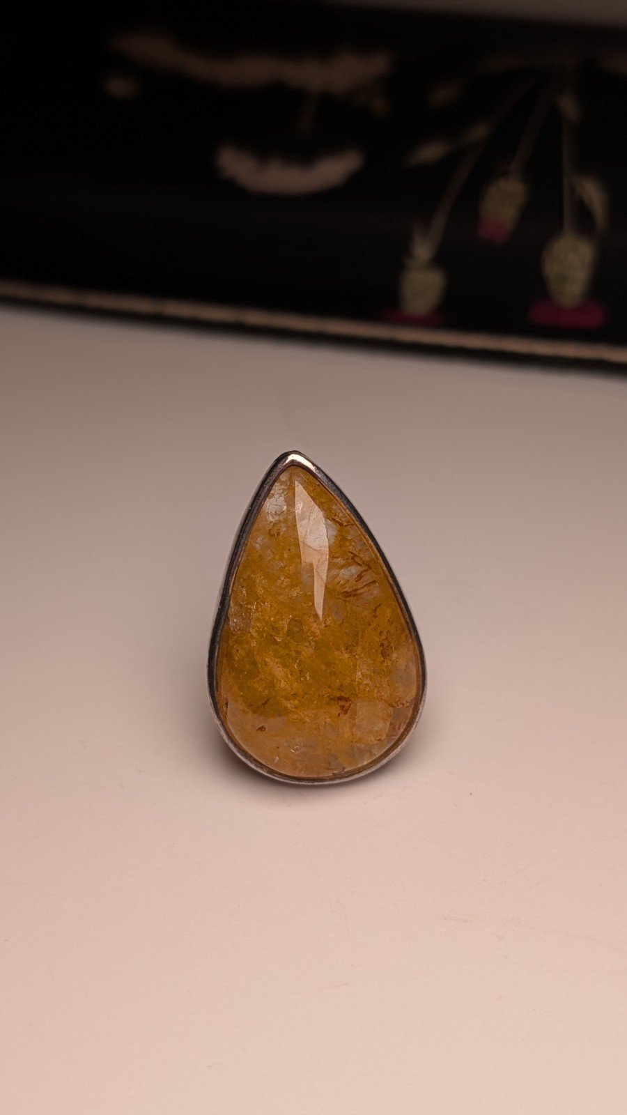 Vintage Sterling Silver Natural Yellow Jasper Ring | Size P | 925 Silver