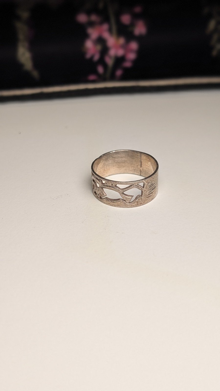 Vintage Sterling Silver Openwork Band Ring | Size M 1/2 | 925 Silver