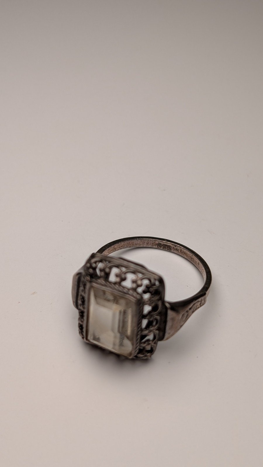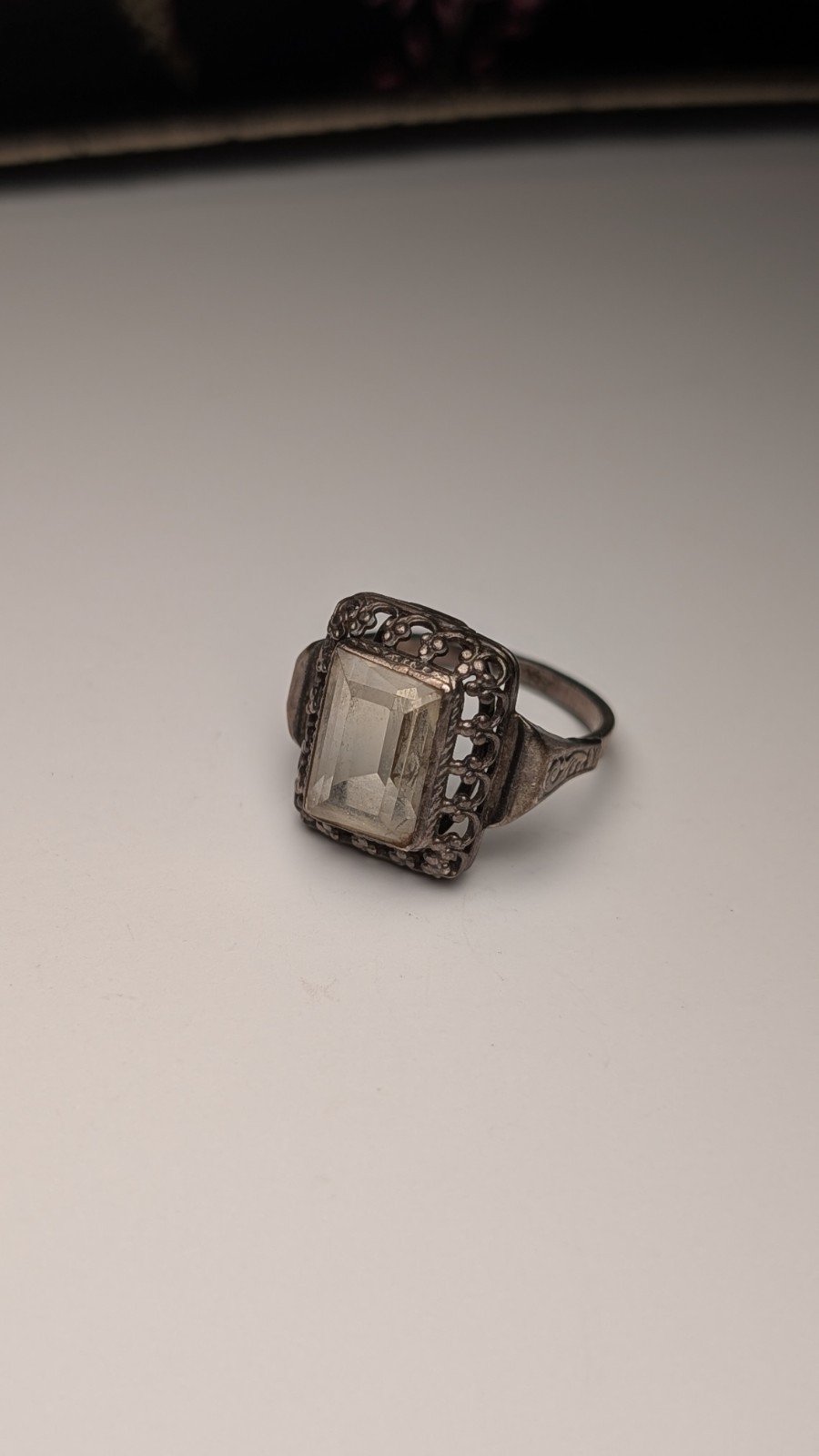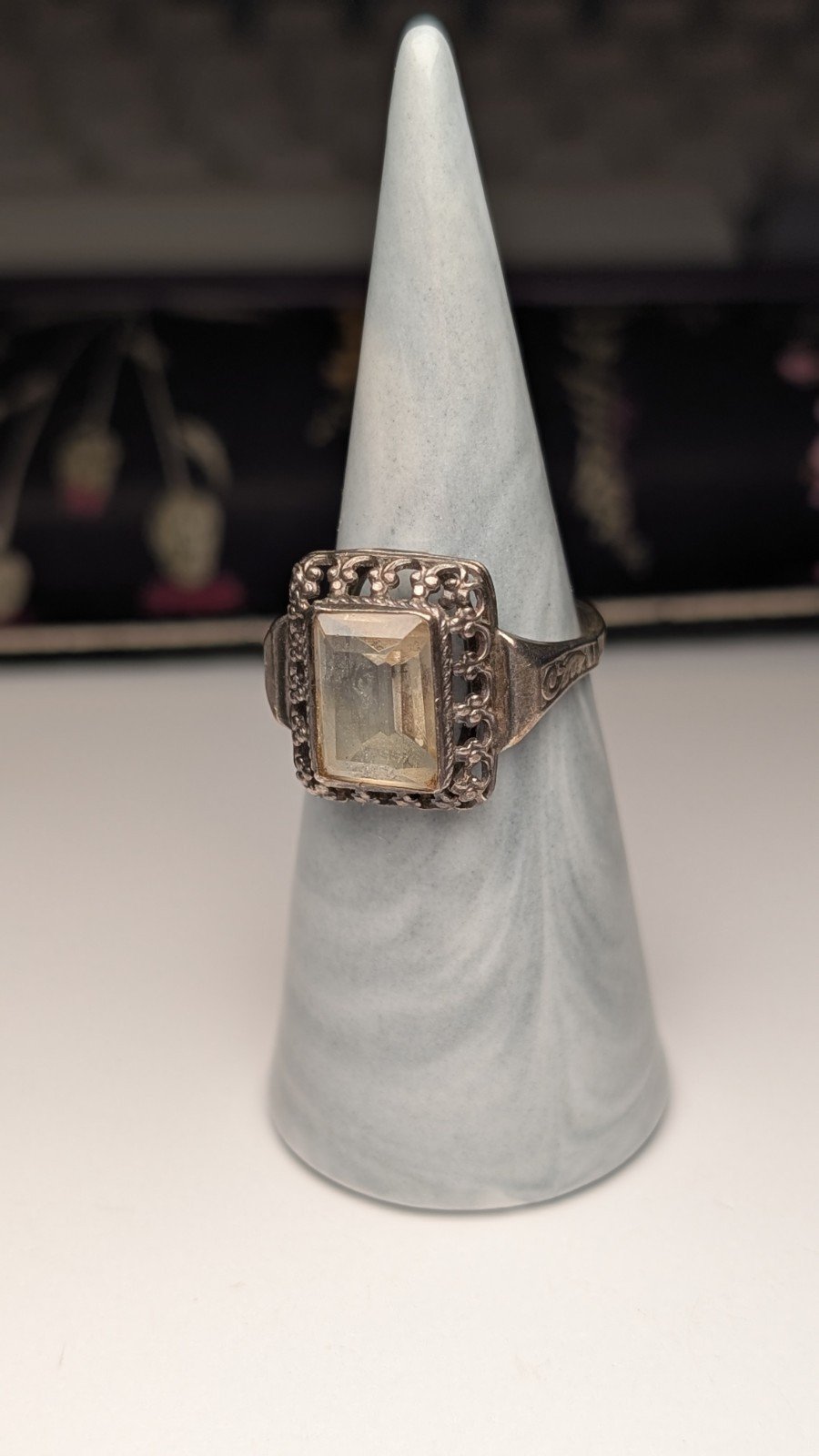 Vintage Sterling Silver Openwork Clear Gemstone Ring | Size O | 925 Silver
