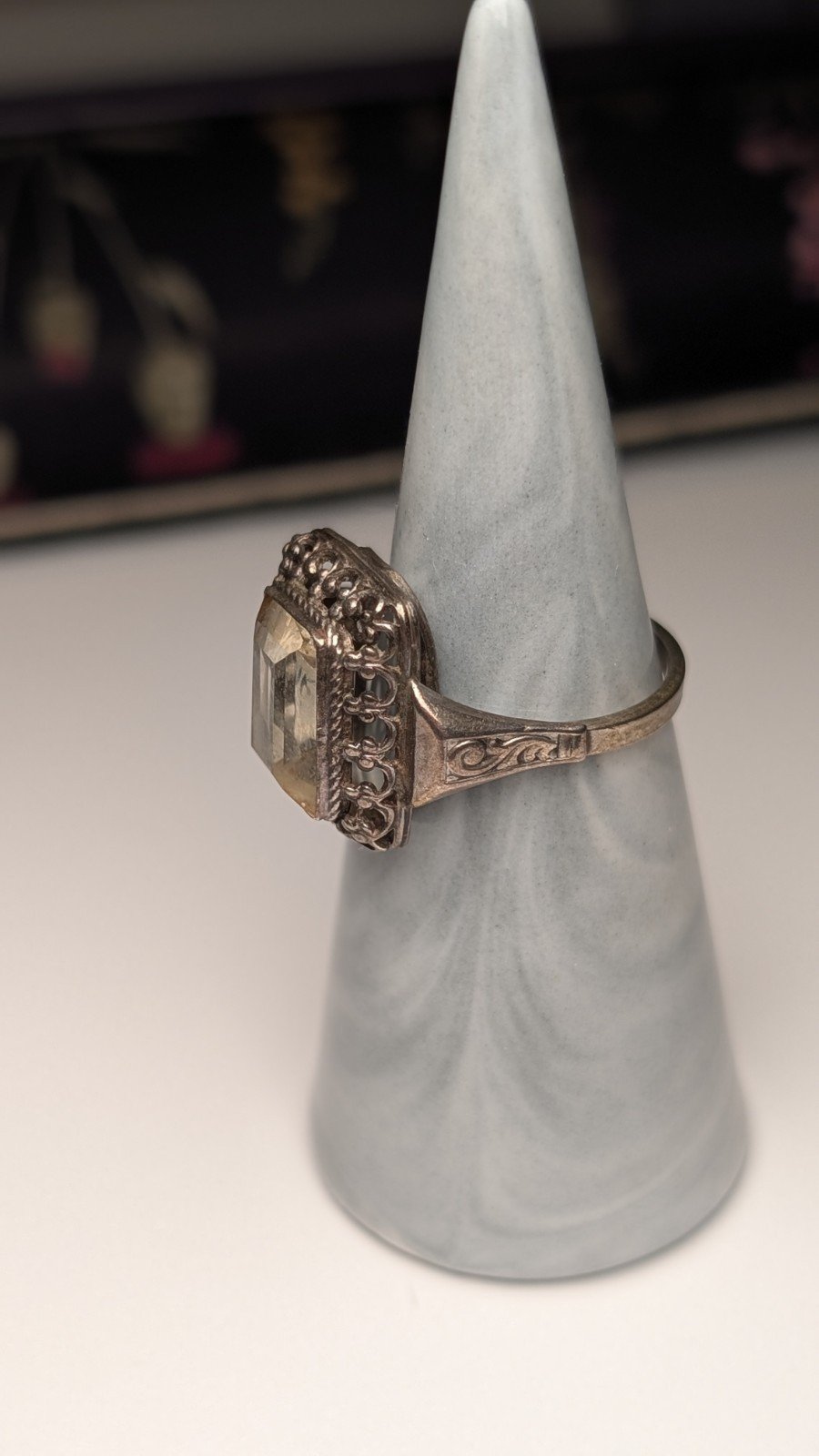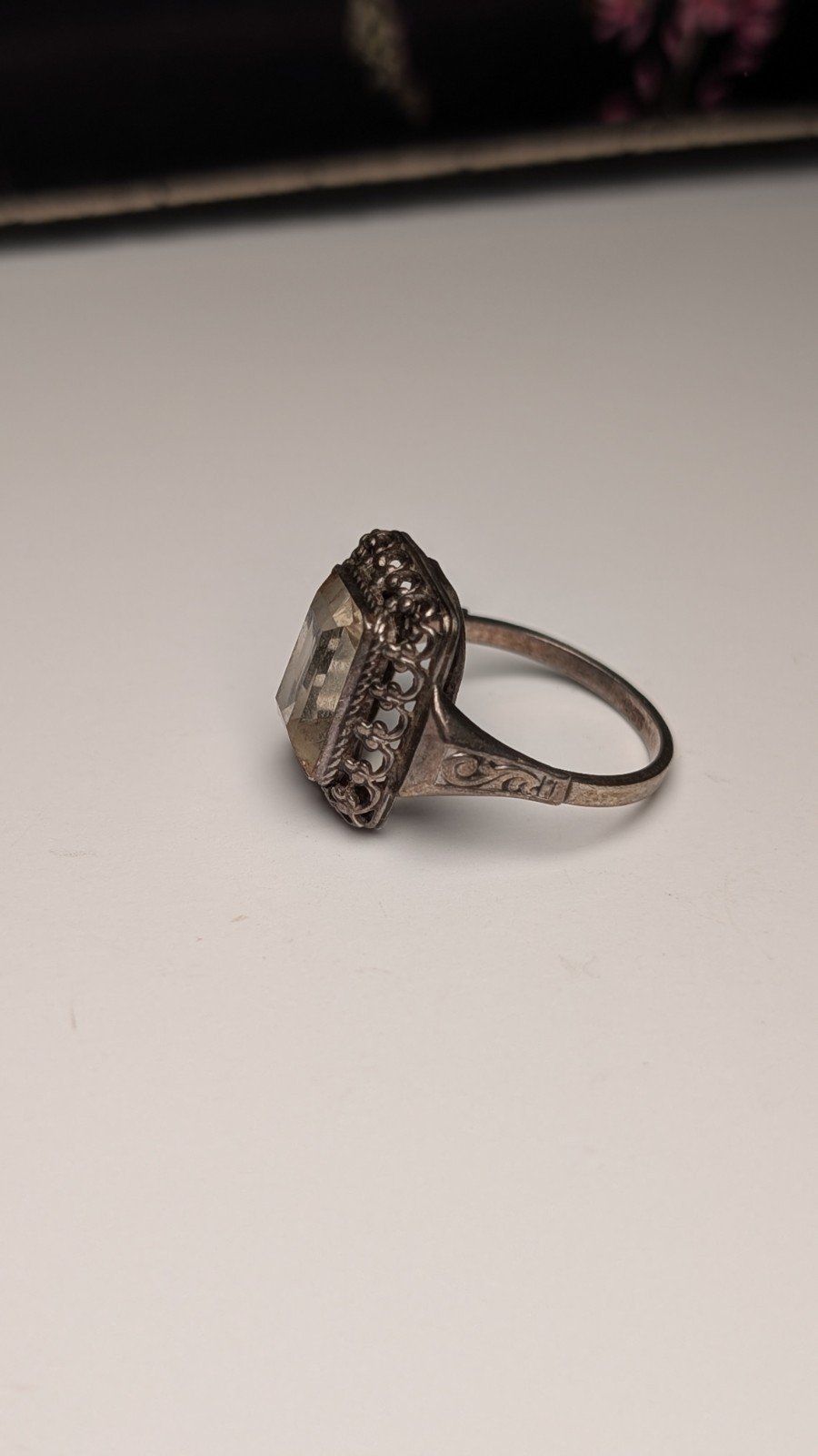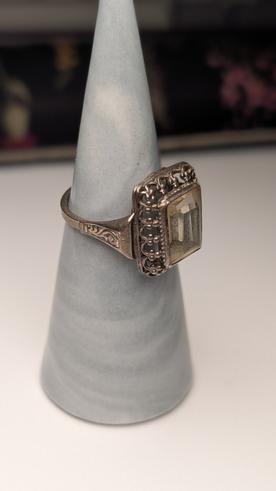 Vintage Sterling Silver Openwork Clear Gemstone Ring | Size O | 925 Silver