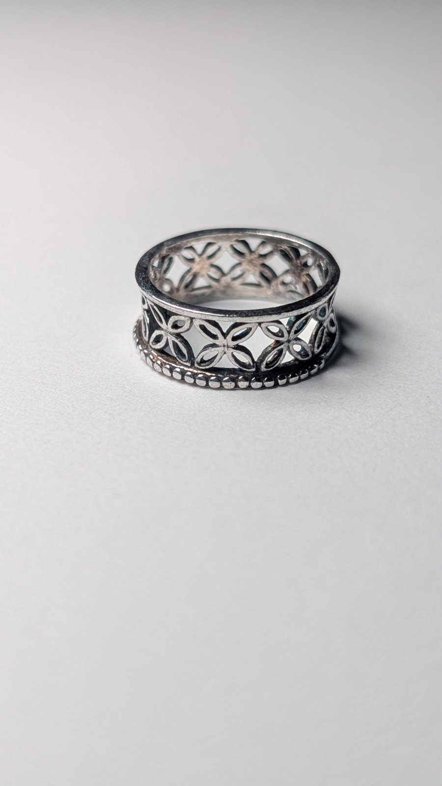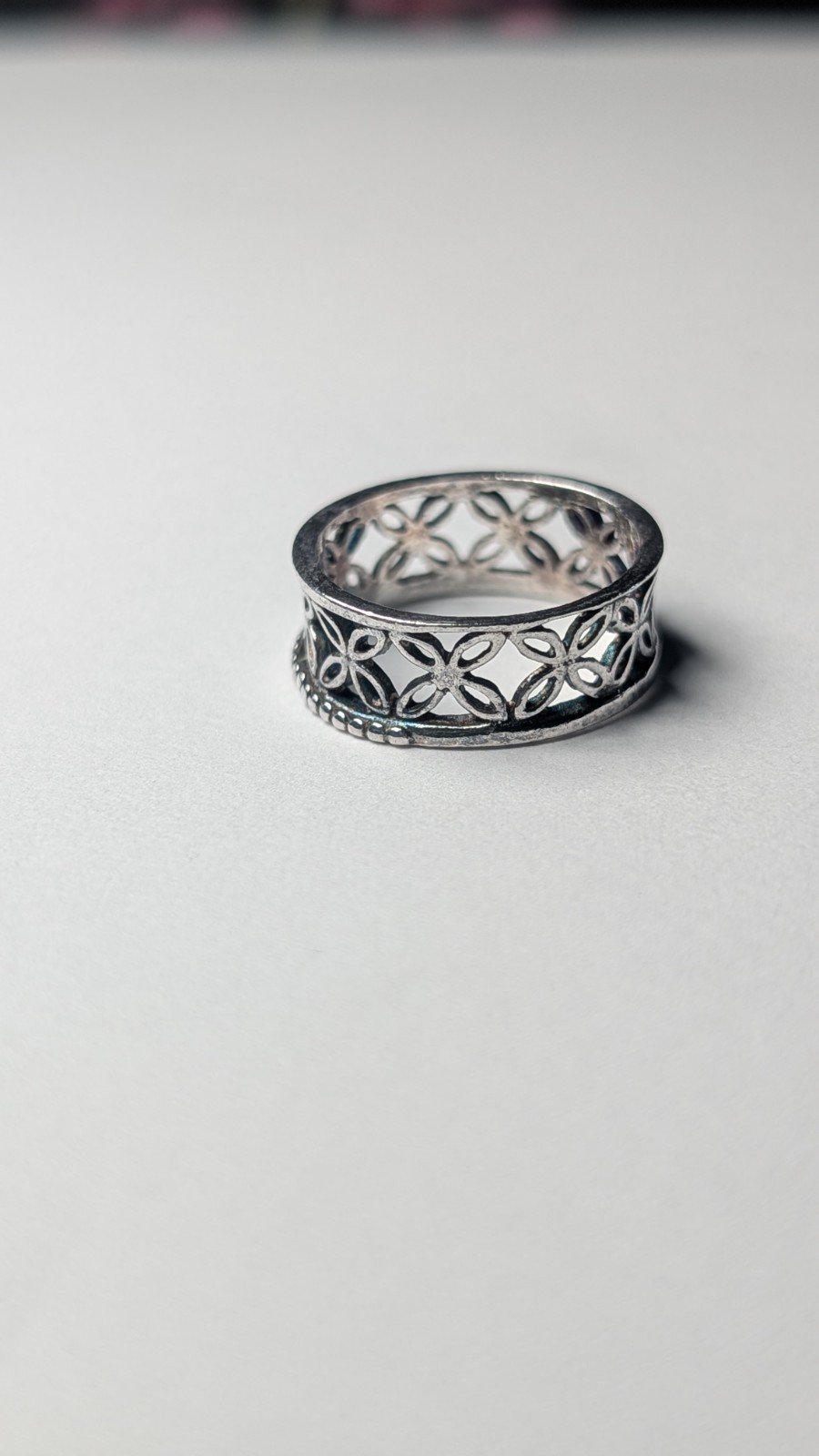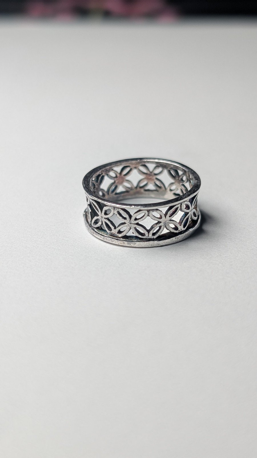 This vintage sterling silver openwork flower ring is a stunning piece of jewellery, perfect for any unisex adult looking to add a touch of elegance to their outfit.