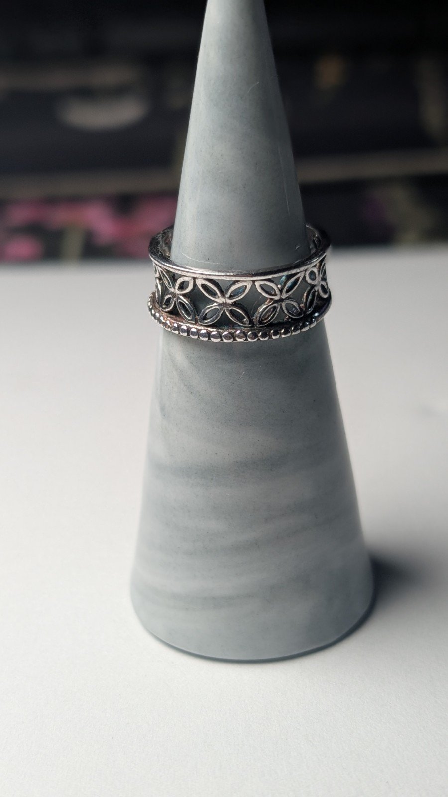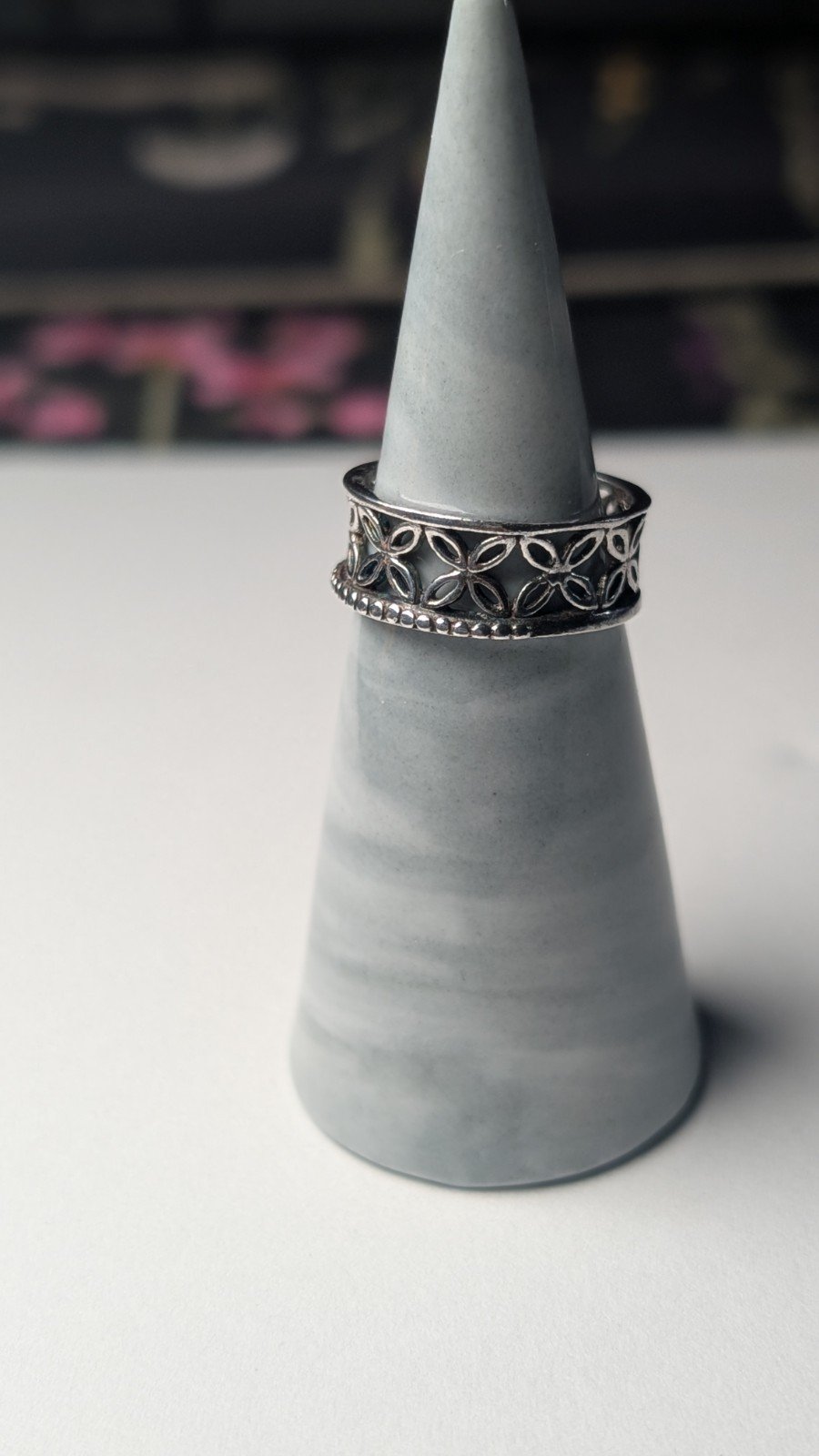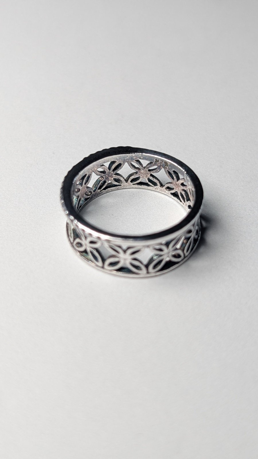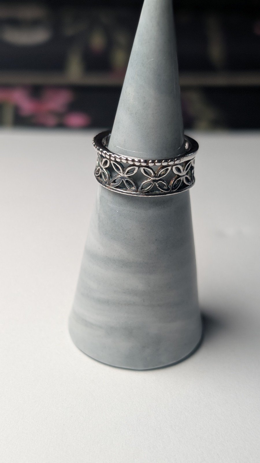 This vintage sterling silver openwork flower ring is a stunning piece of jewellery, perfect for any unisex adult looking to add a touch of elegance to their outfit.