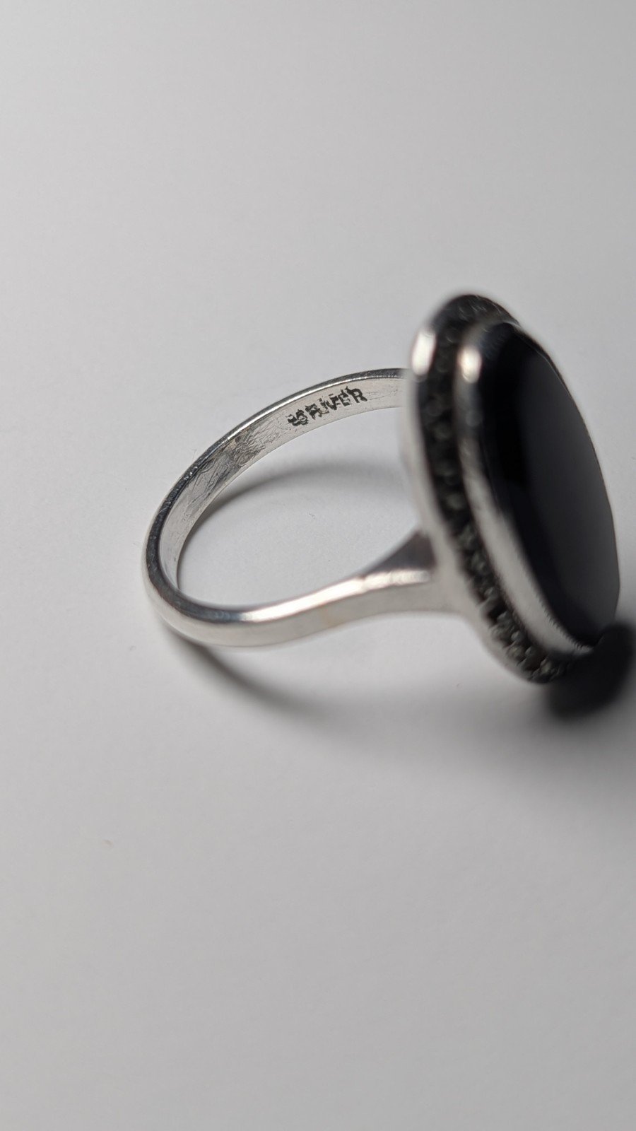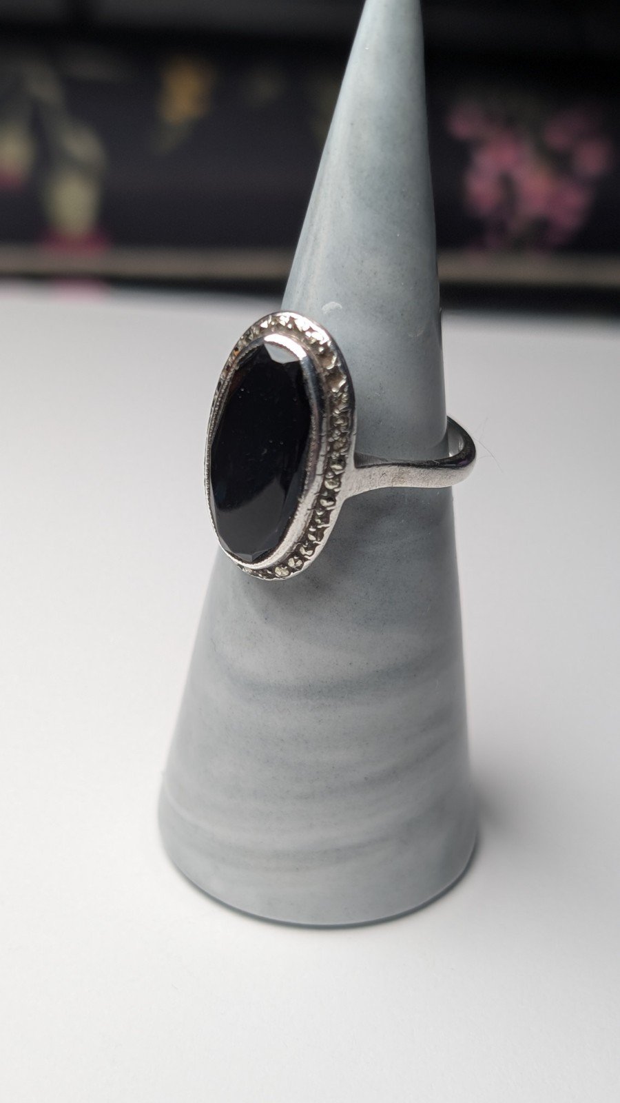 This vintage sterling silver oval black onyx ring is a timeless piece of fine jewellery that exudes elegance and style.