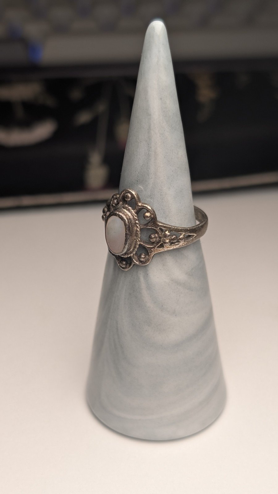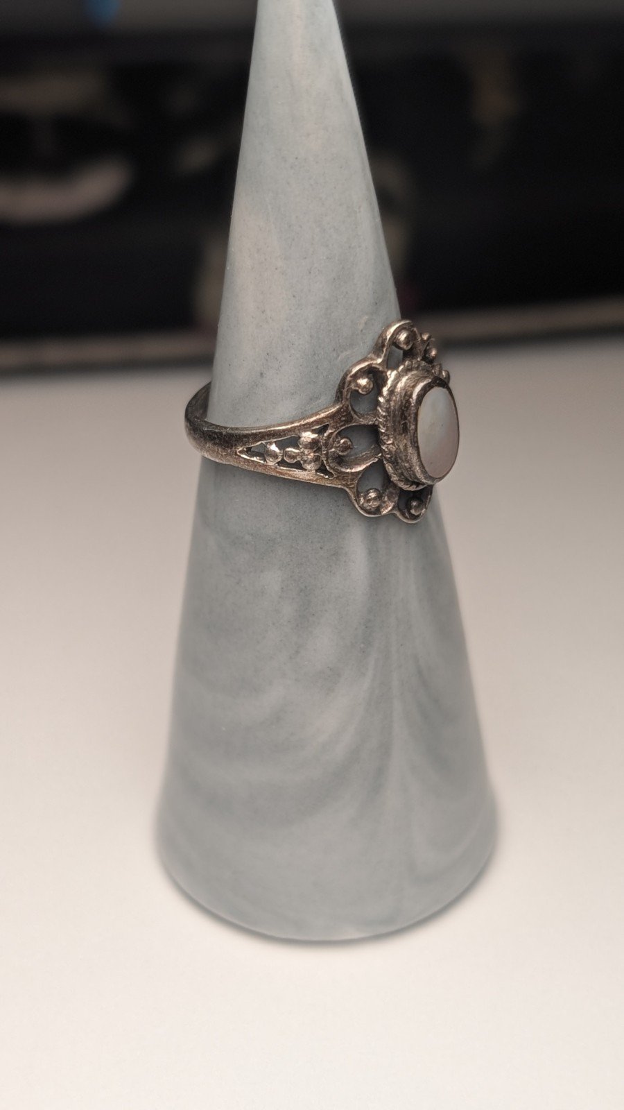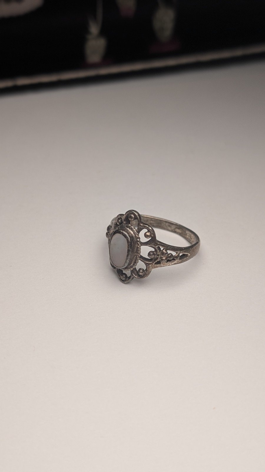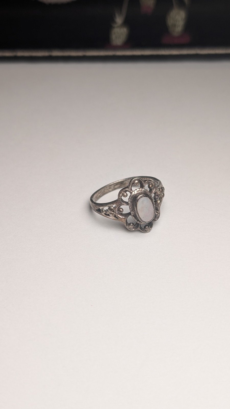 Vintage Sterling Silver Oval Mother Of Pearl Ring | Size L | 925 Silver