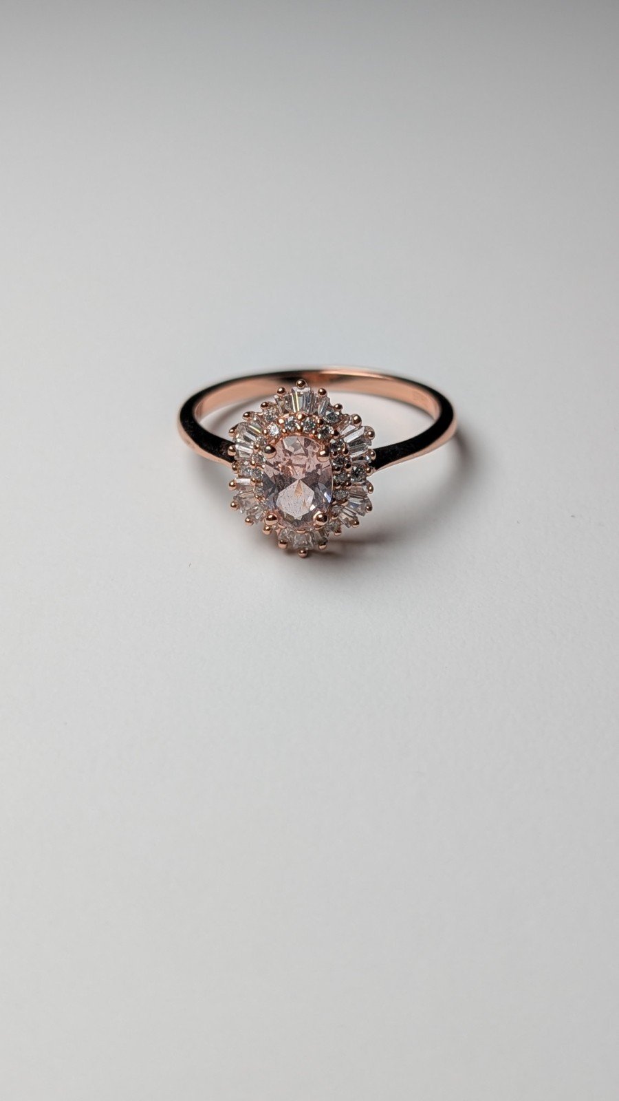 Vintage Sterling Silver Pink CZ Cluster Ring | Size S | Rose Gold Tone