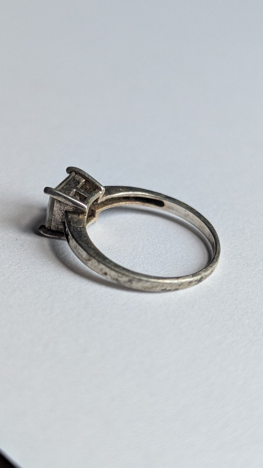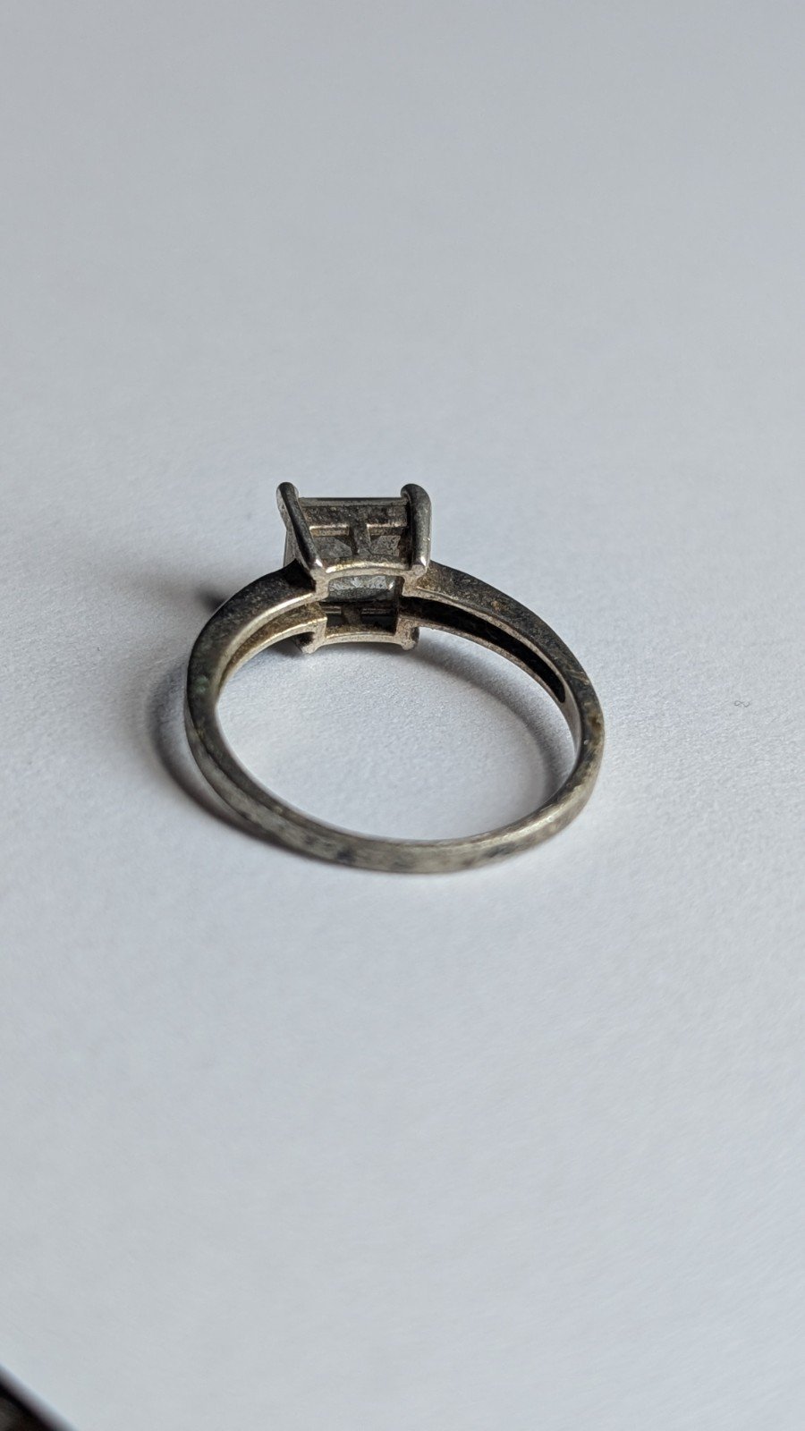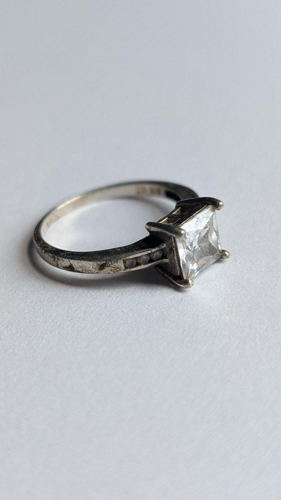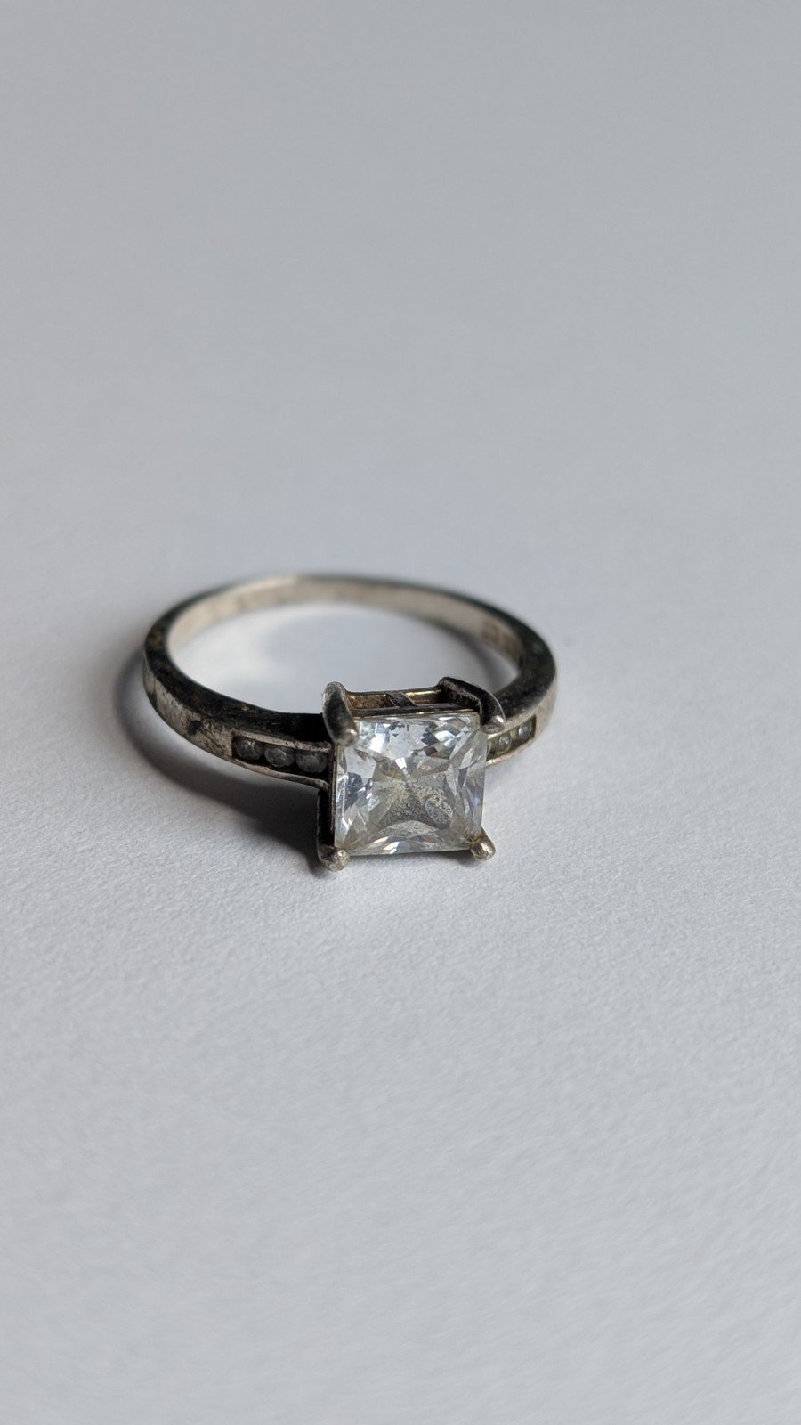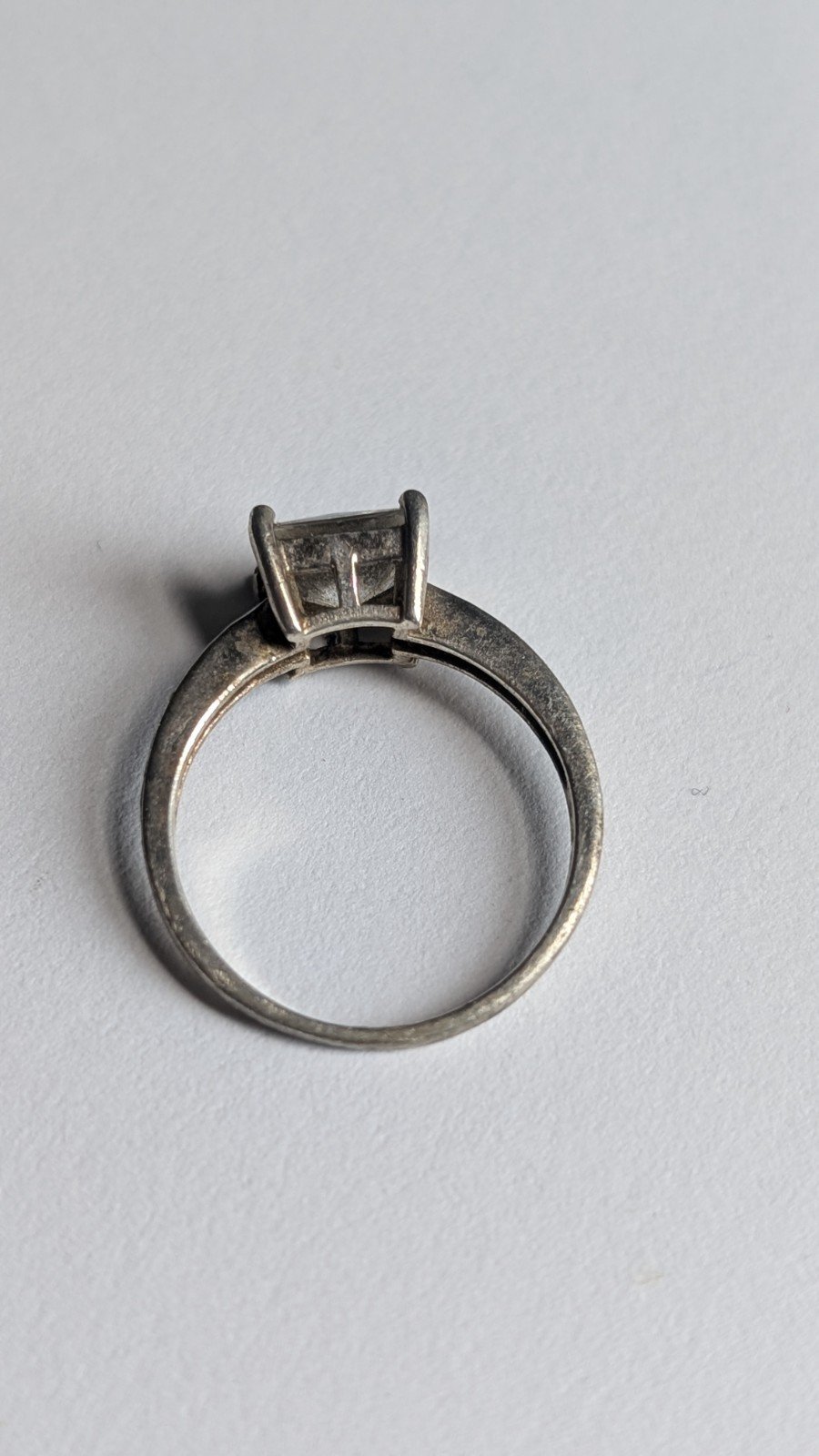 This vintage sterling silver Princess cut stone ring in size Q is a stunning piece of jewellery for women.