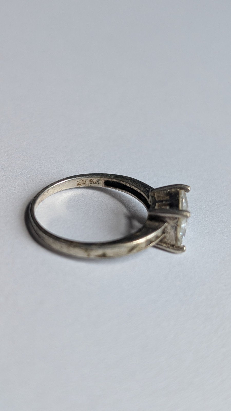 The ring is hallmarked as 925 silver, ensuring its authenticity and quality.