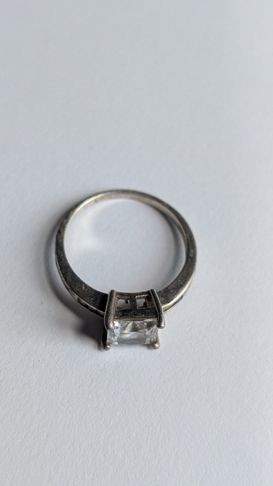 Vintage Sterling Silver Princess Cut Stone Ring | Size Q | 925 Silver