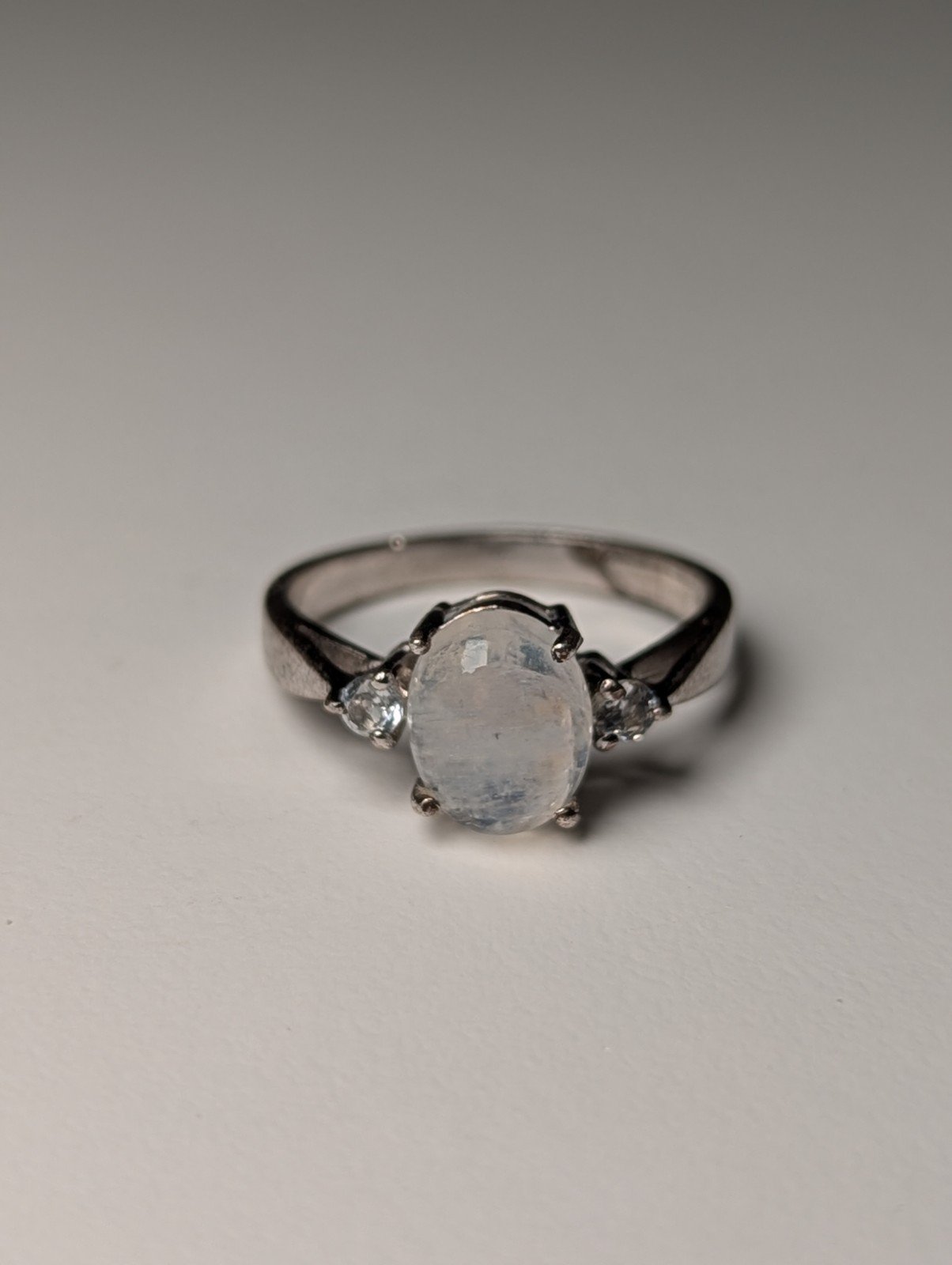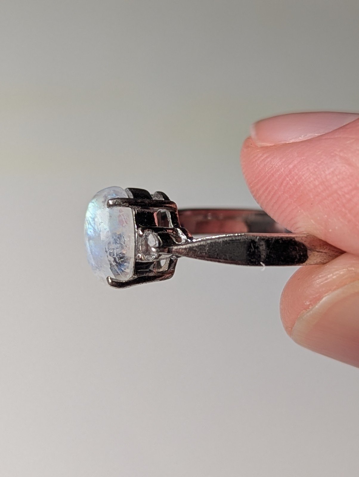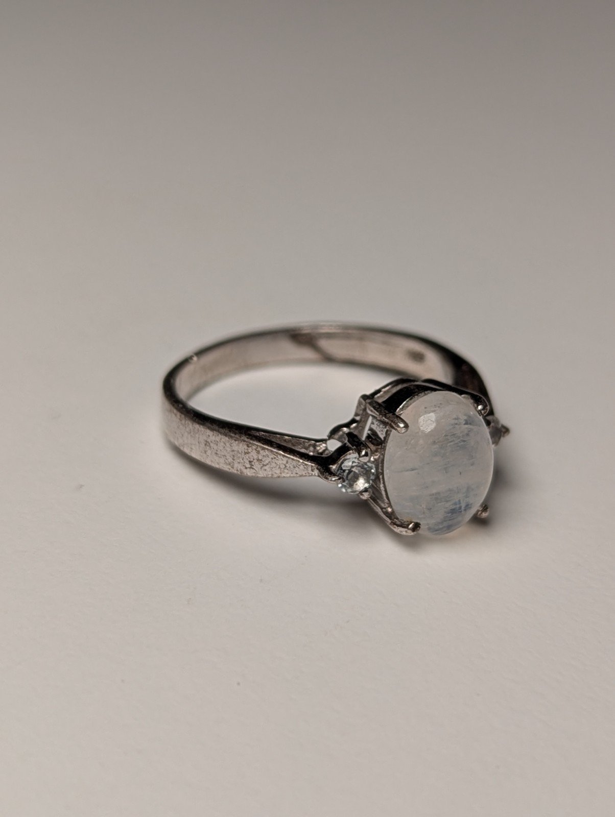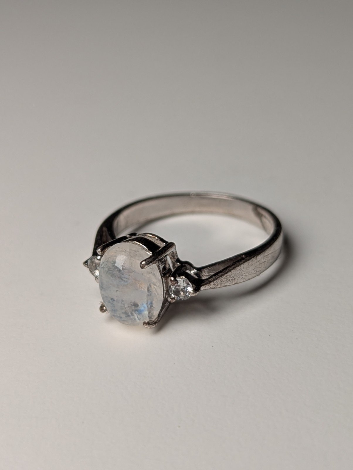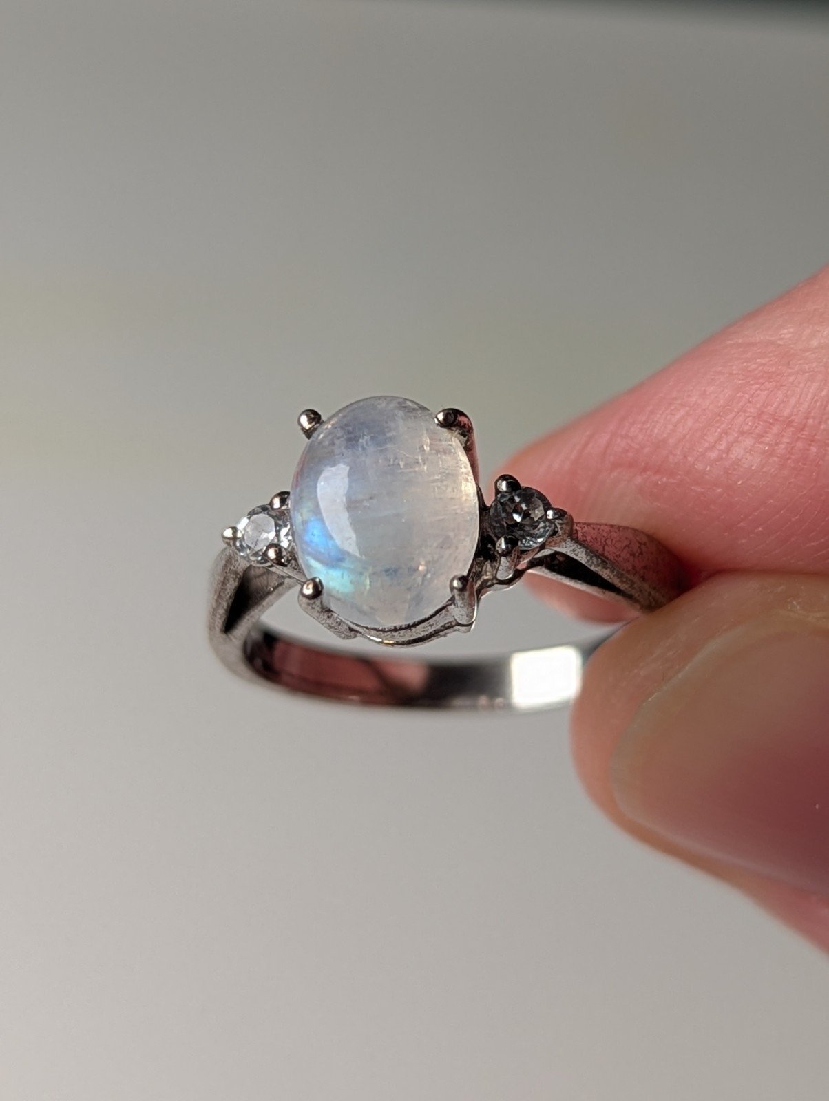 Vintage Sterling Silver Rainbow Moonstone Ring | Size N | 925 Silver