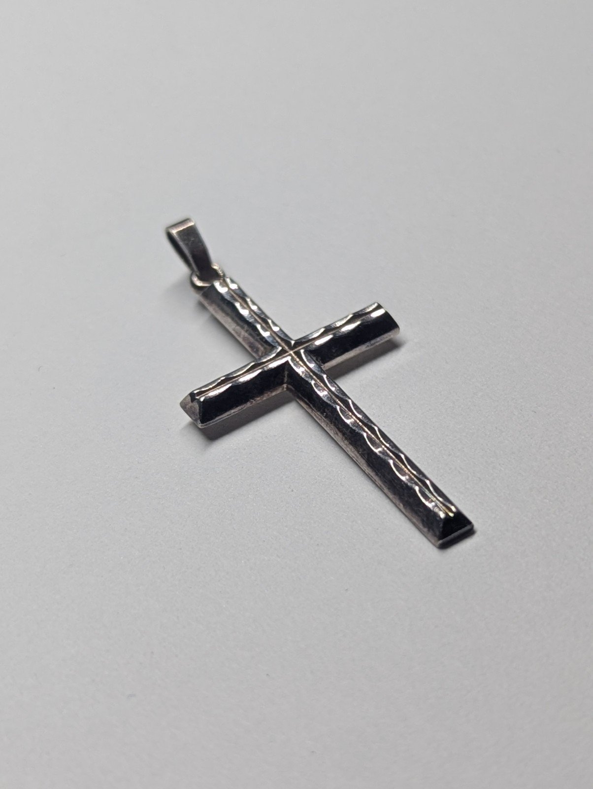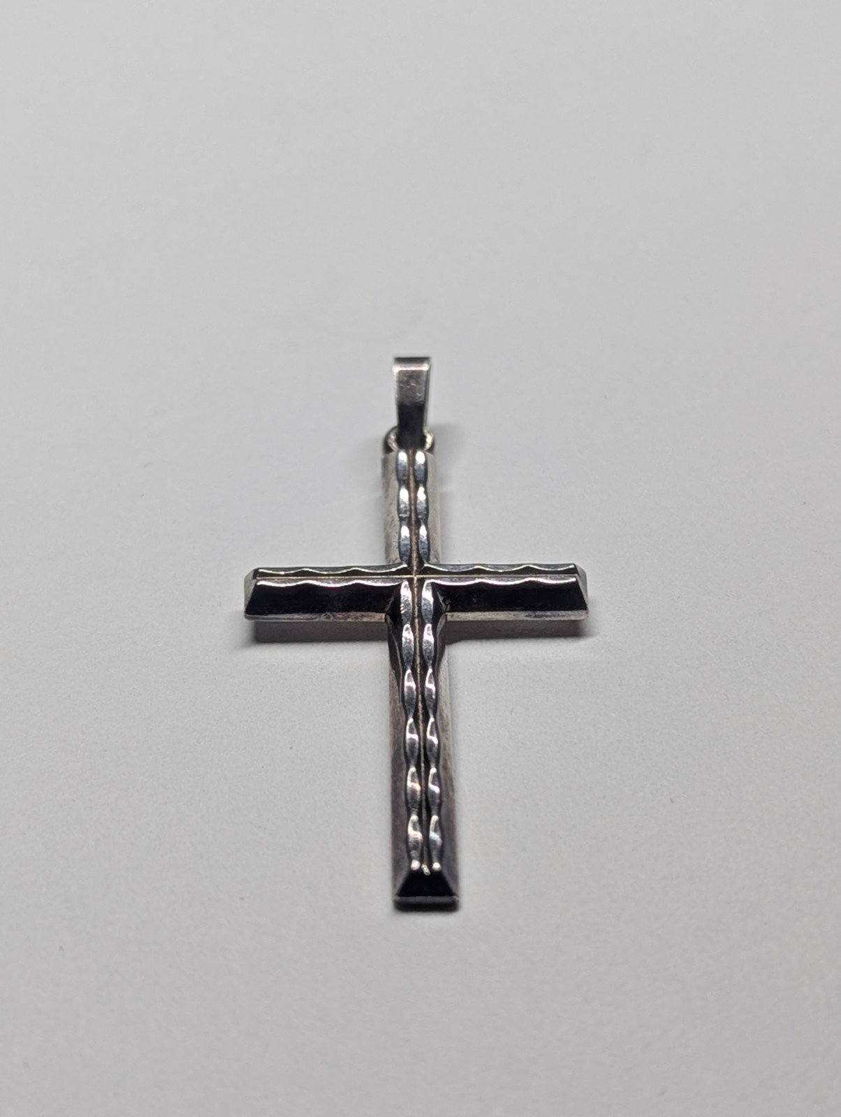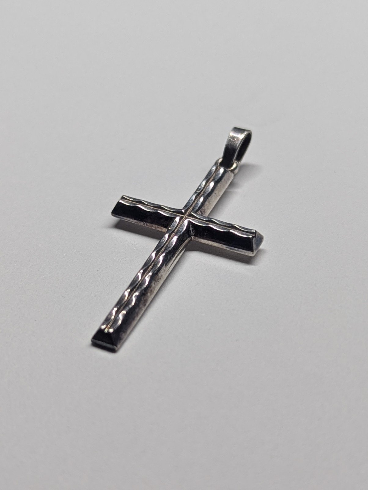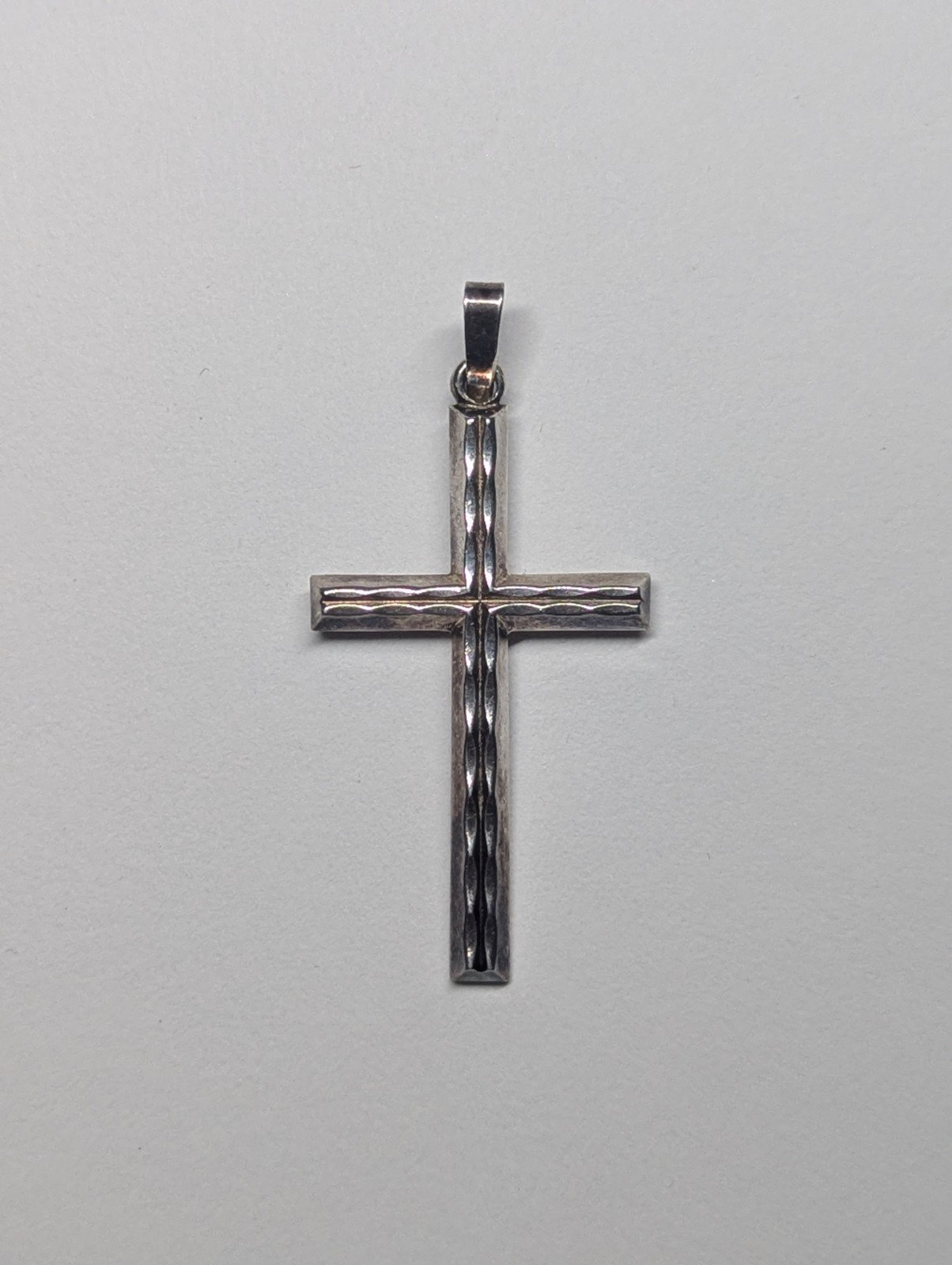 Vintage Sterling Silver Ripple Design Christian Cross | 925 Silver