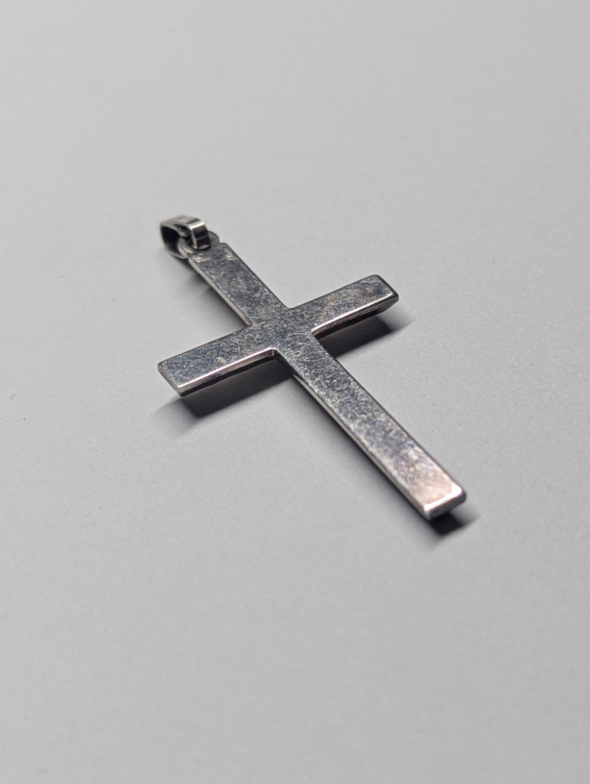 This vintage sterling silver pendant features a timeless ripple design in the shape of a Christian cross.