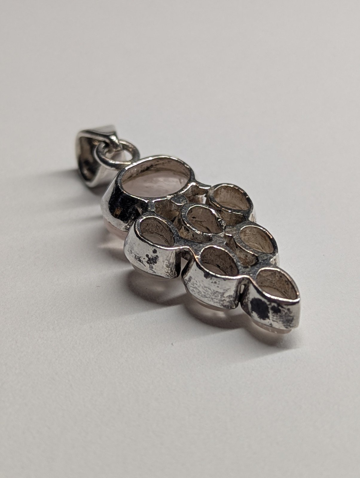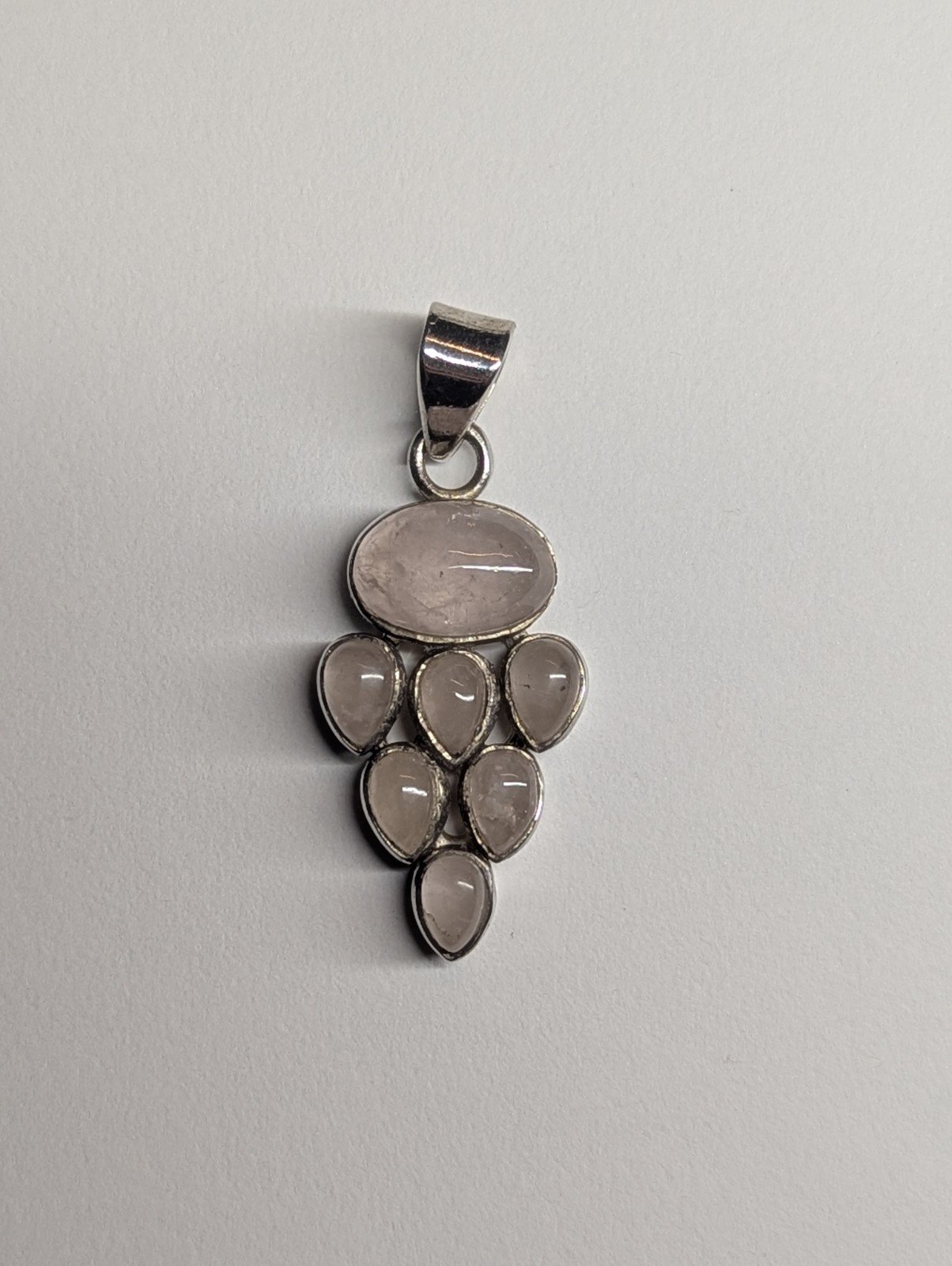 Vintage Sterling Silver Rose Quartz Cluster Pendant | 925 Silver