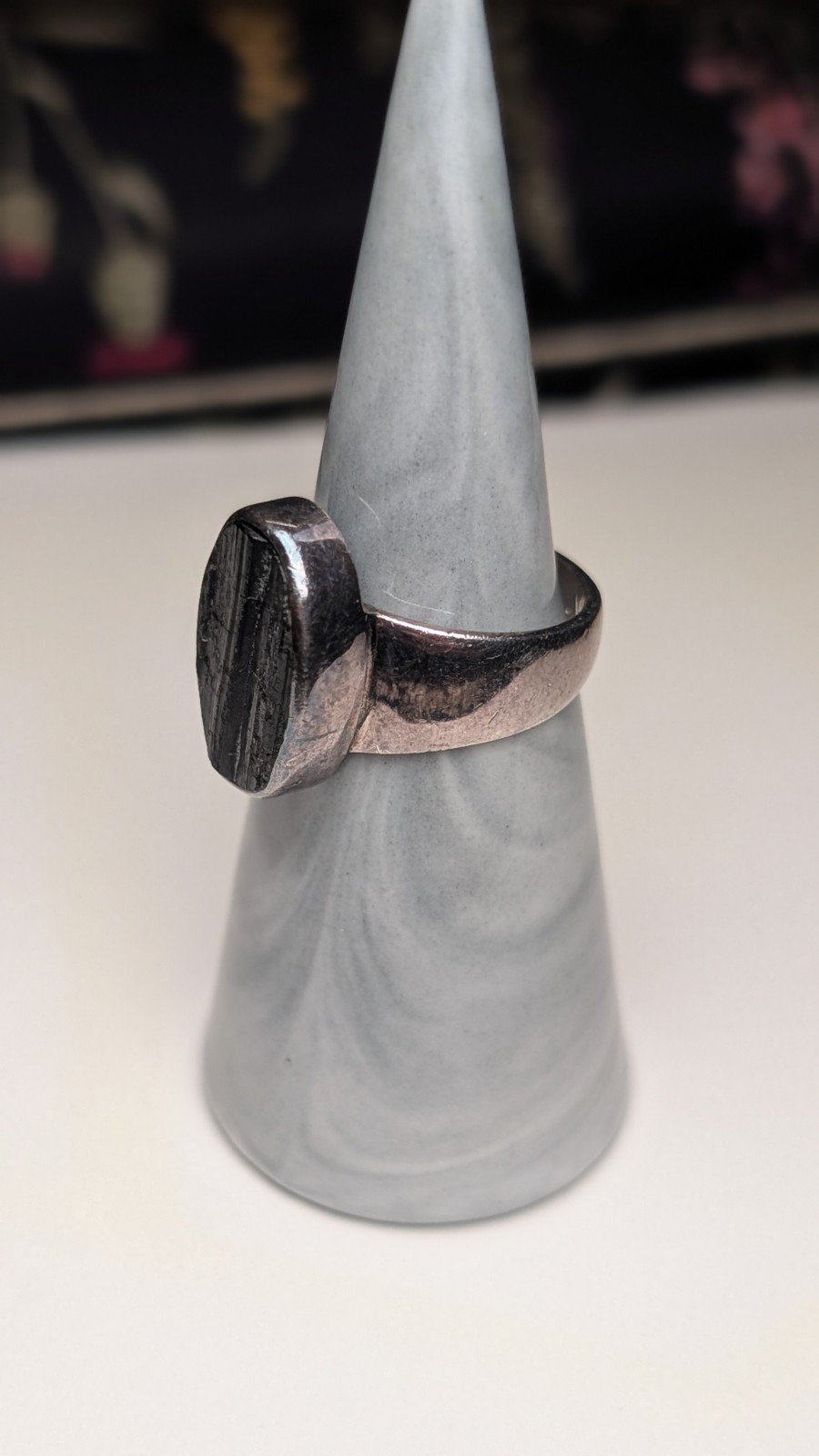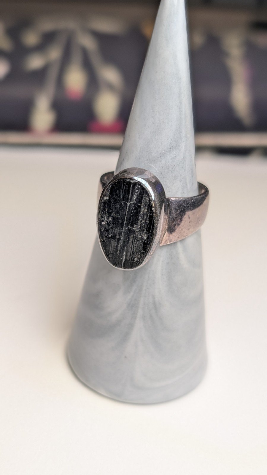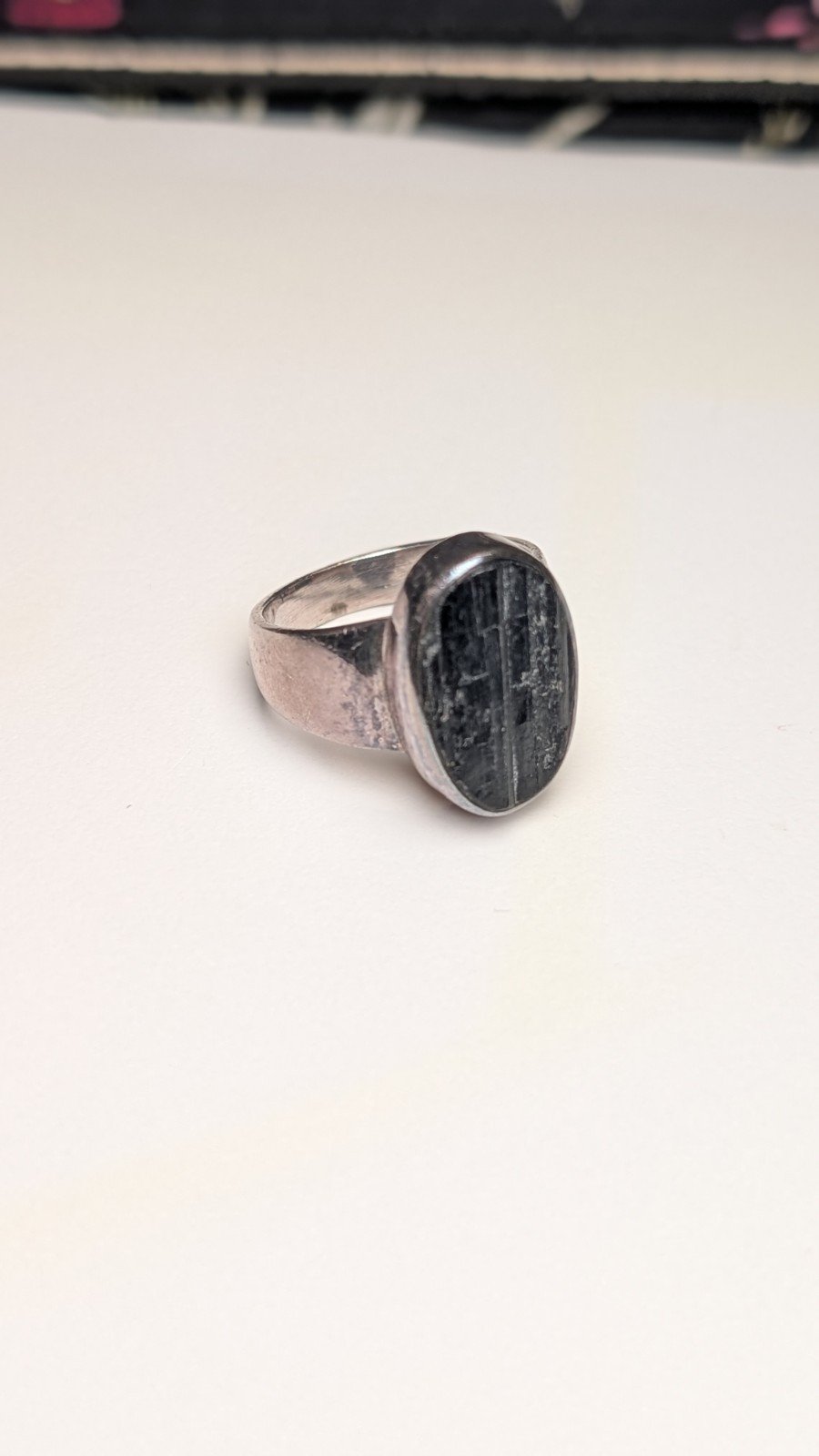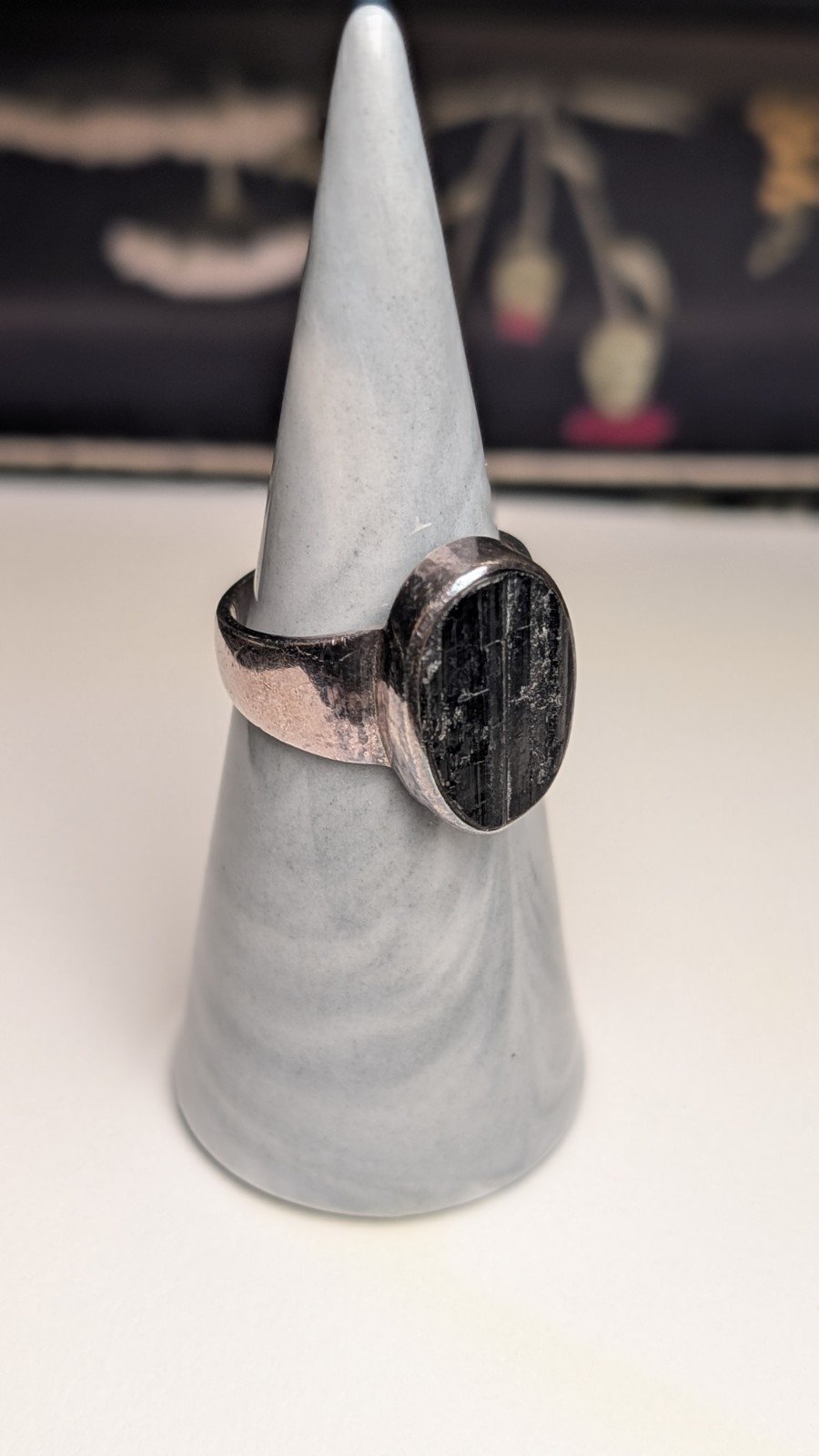 Be the first to review “Vintage Sterling Silver Rough Black Tourmaline Gemstone Ring | Size O 1/2 | 925”
