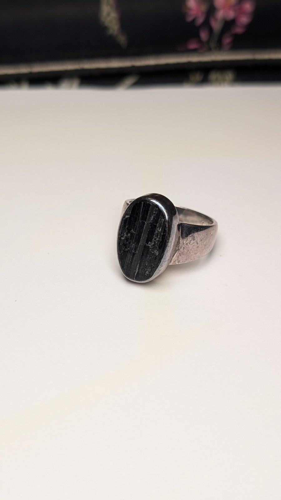 Vintage Sterling Silver Rough Black Tourmaline Gemstone Ring | Size O 1/2 | 925