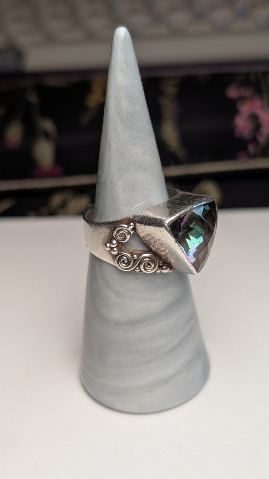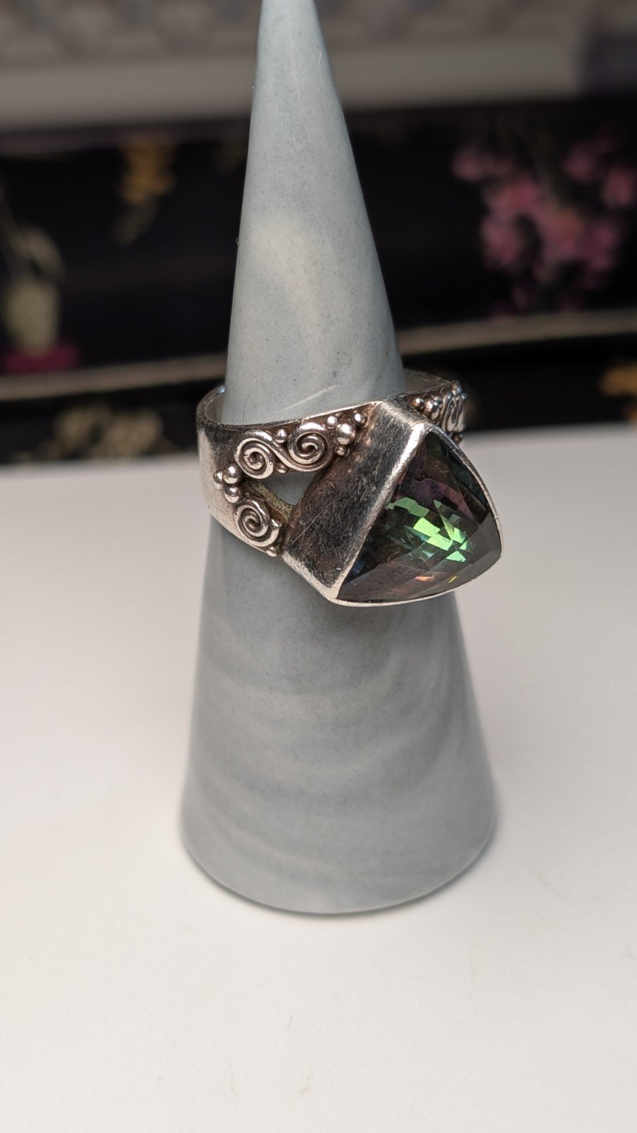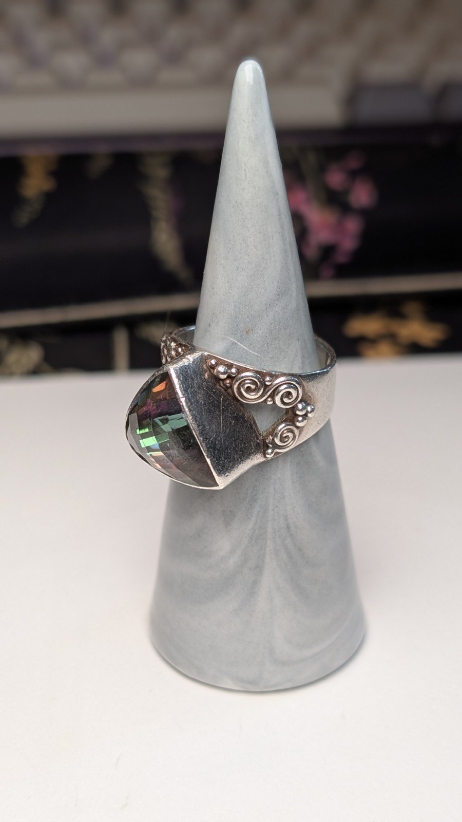 Vintage Sterling Silver Sajen Mystic Topaz Ring | Size P ( Resizable See Desc)