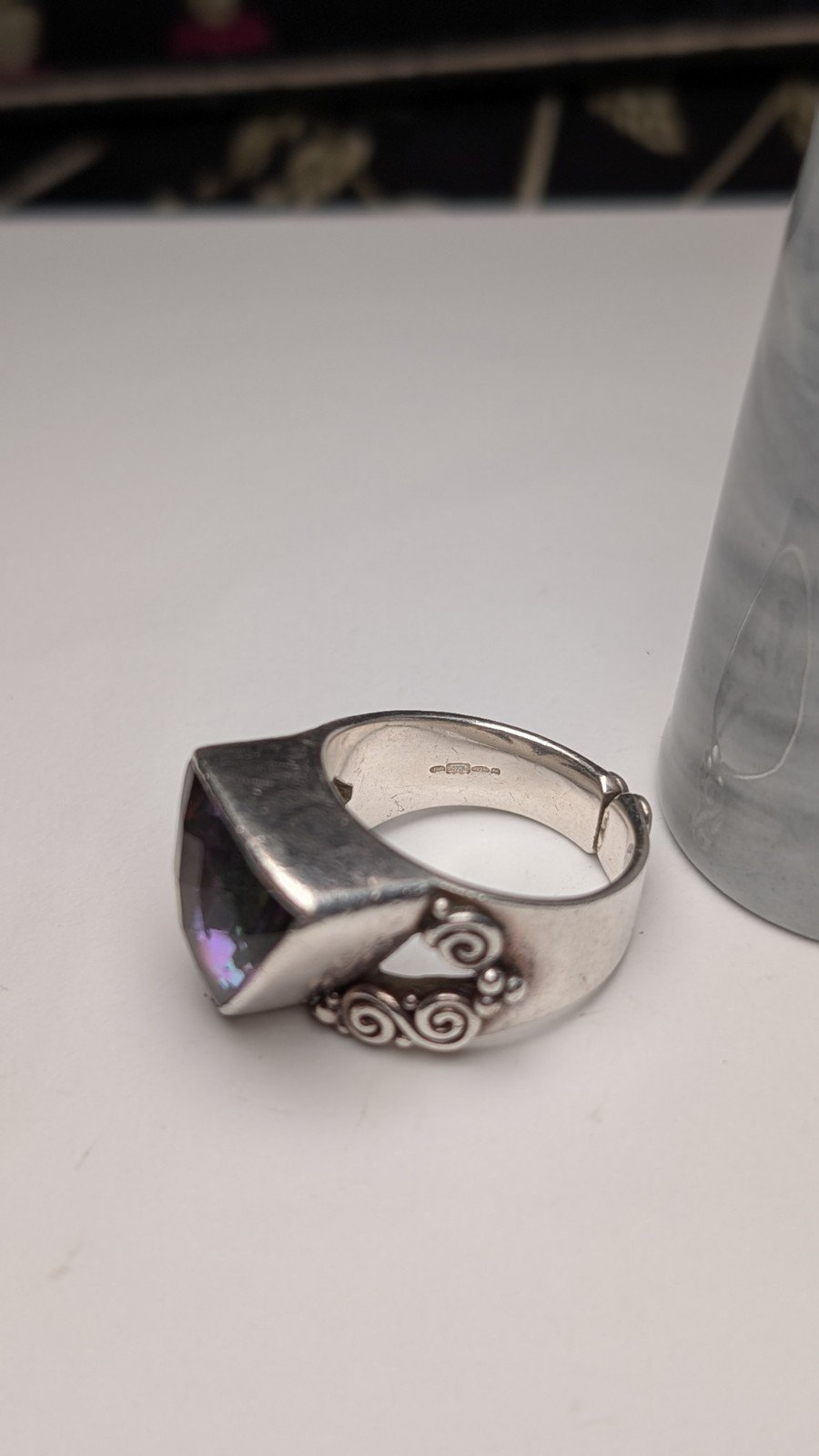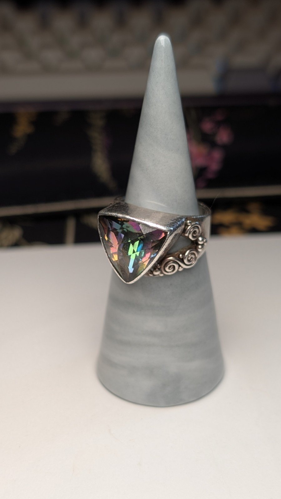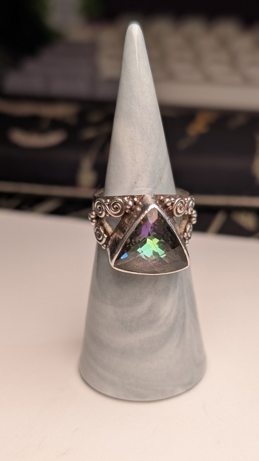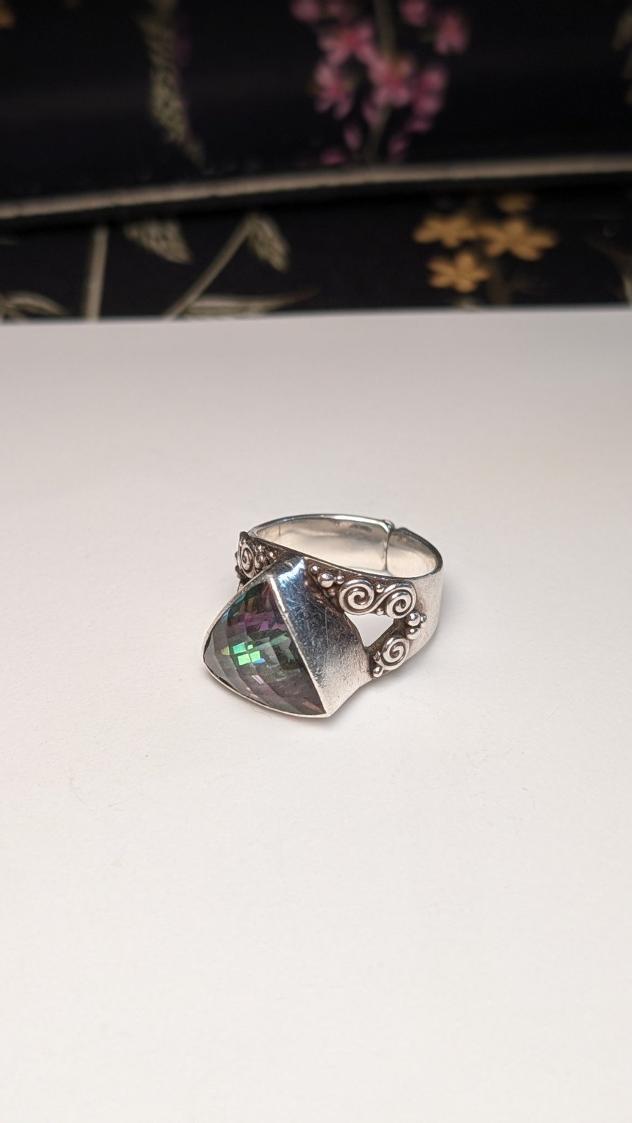 Vintage Sterling Silver Sajen Mystic Topaz Ring | Size P ( Resizable See Desc)
