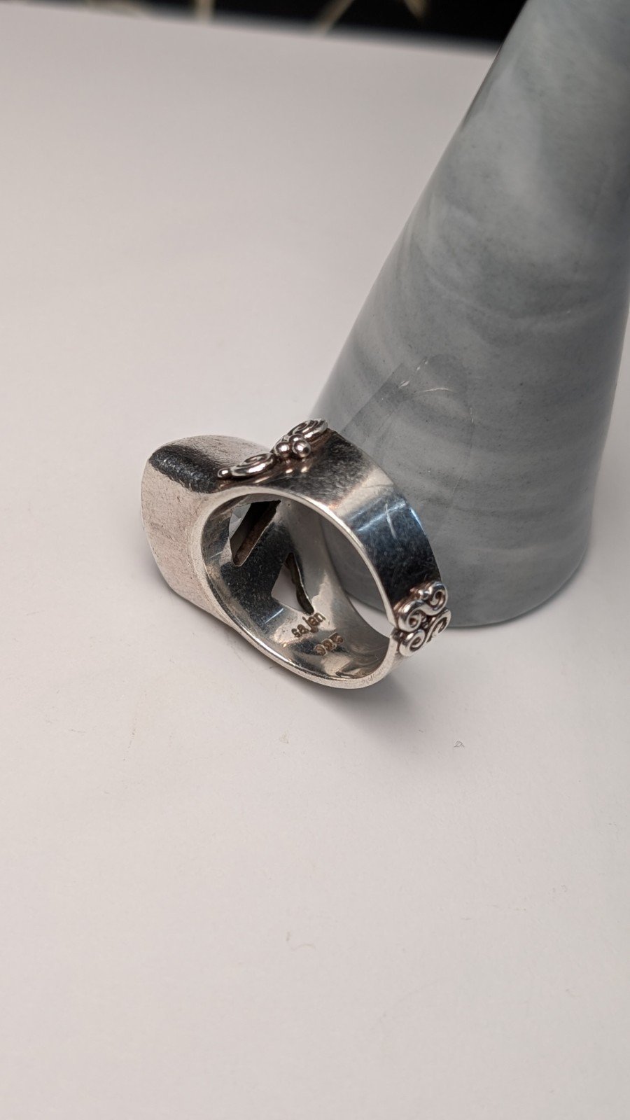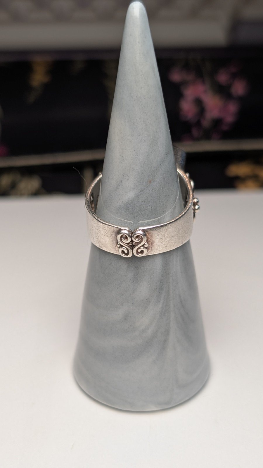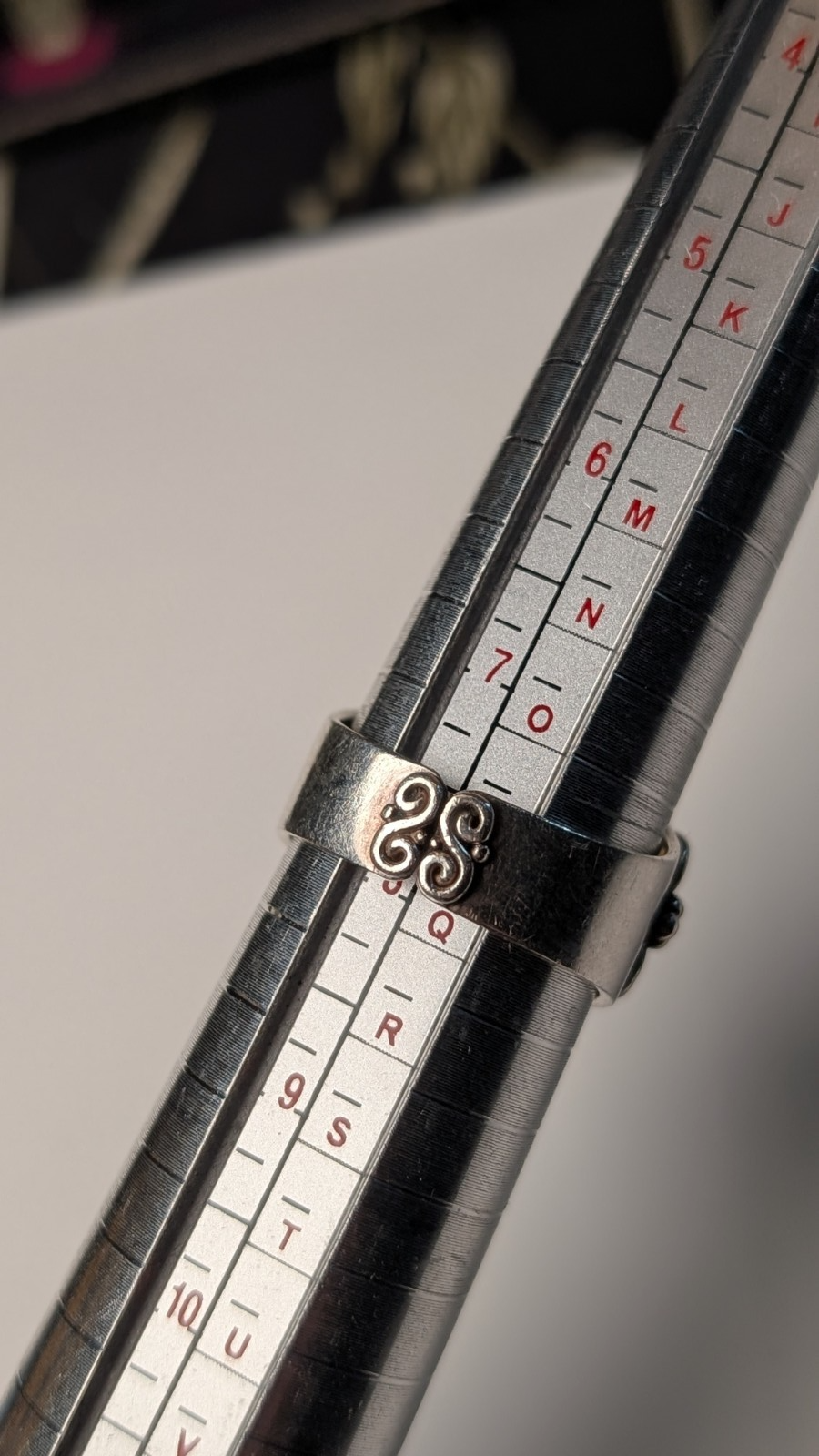 This ring is a size P but as seen in the images it has an open back, this means you could stretch it open to go larger, but not to a smaller size than P. I wouldn’t push it past a couple sizes up.