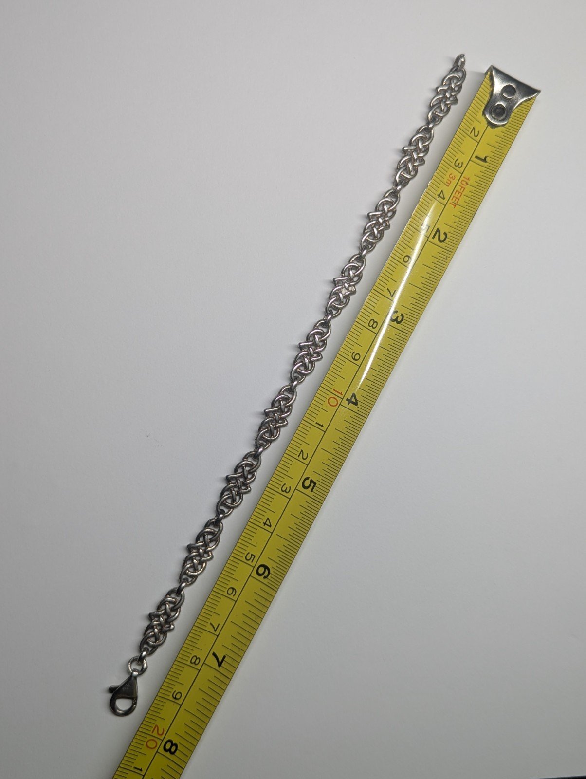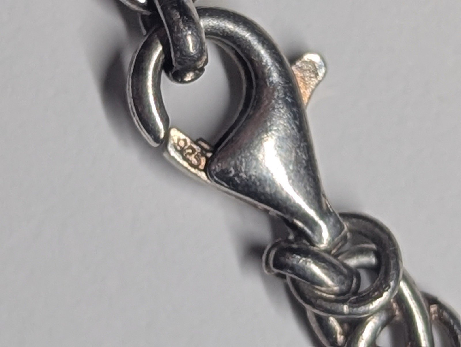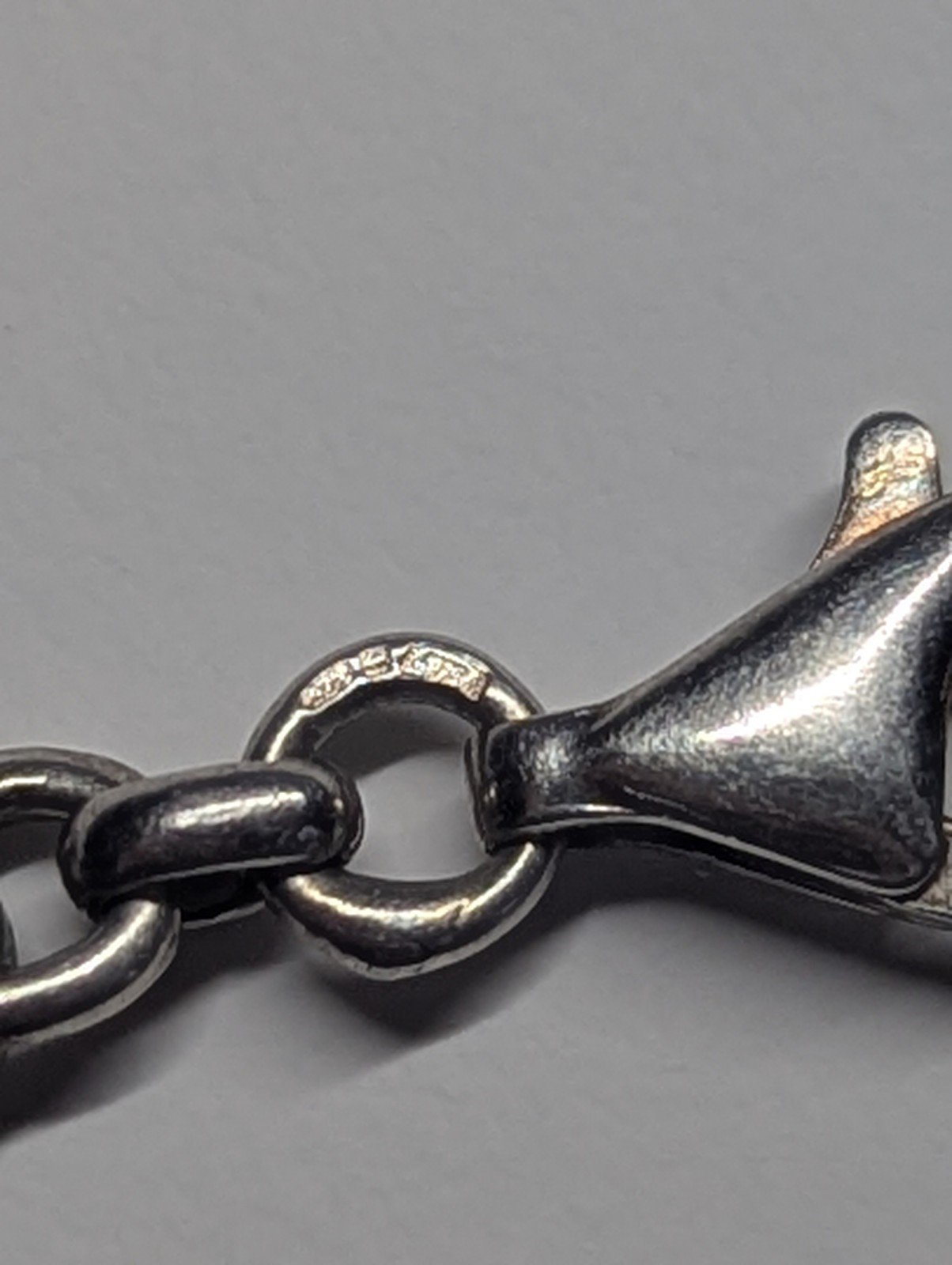 The 20cm chain bracelet is hallmarked as sterling silver, with a metal purity of 925.