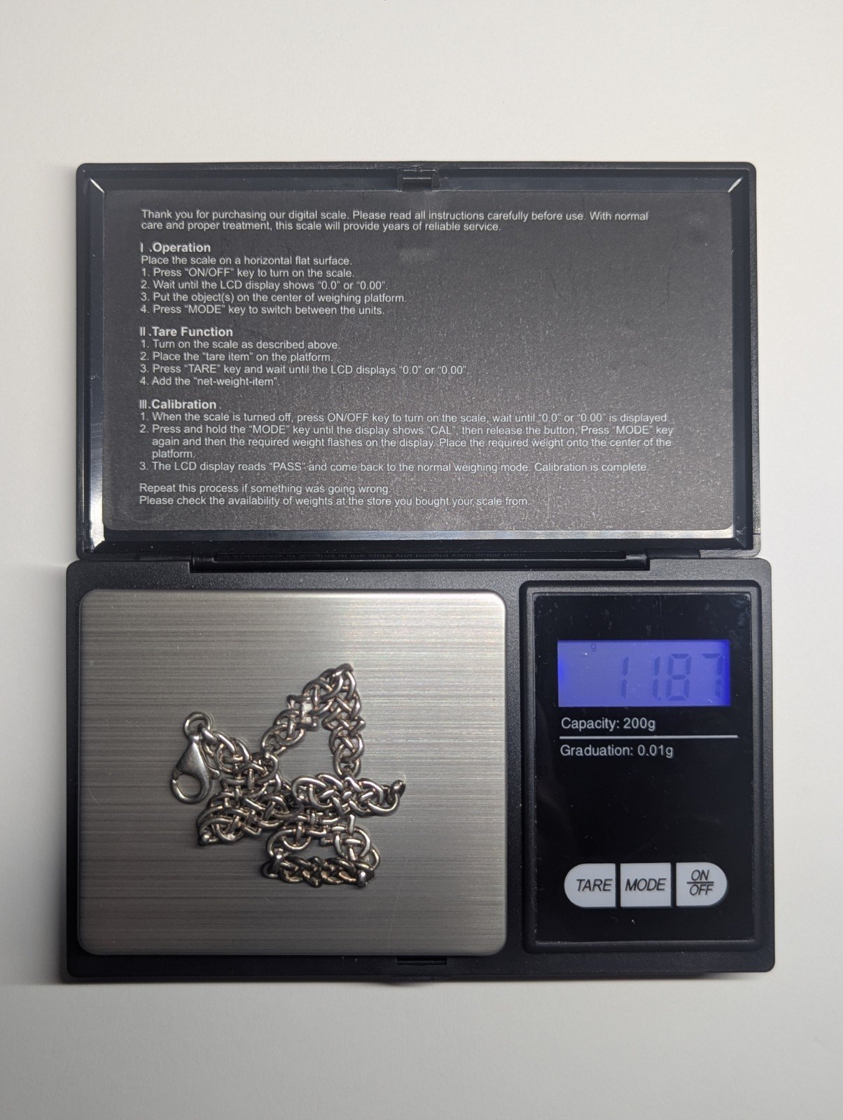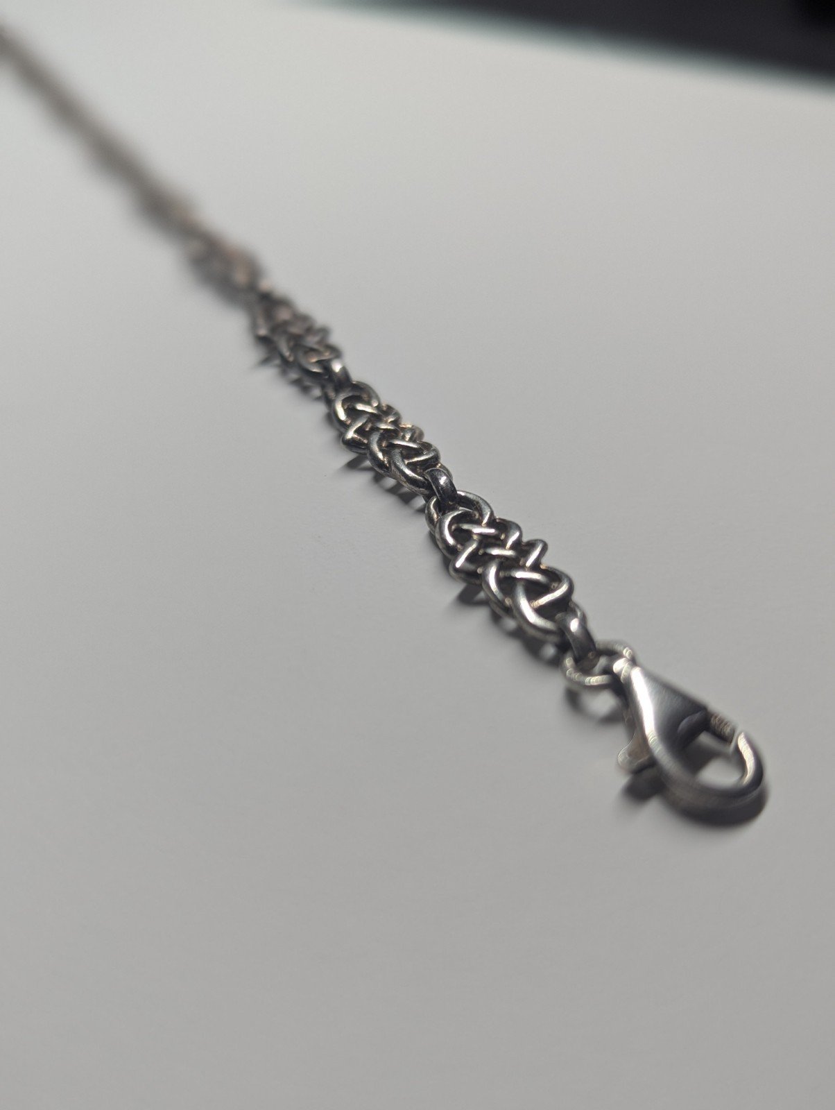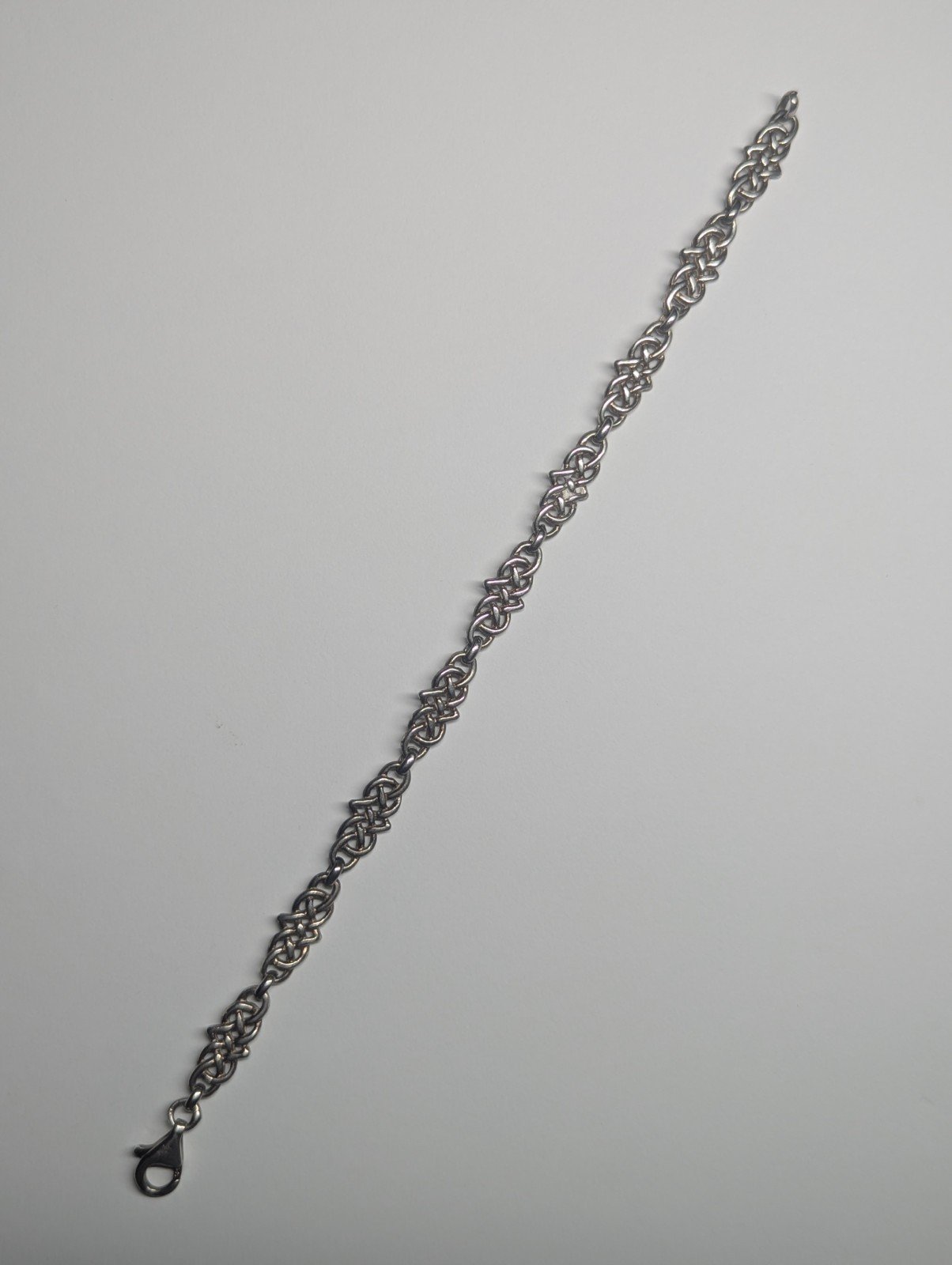 The 20cm chain bracelet is hallmarked as sterling silver, with a metal purity of 925.