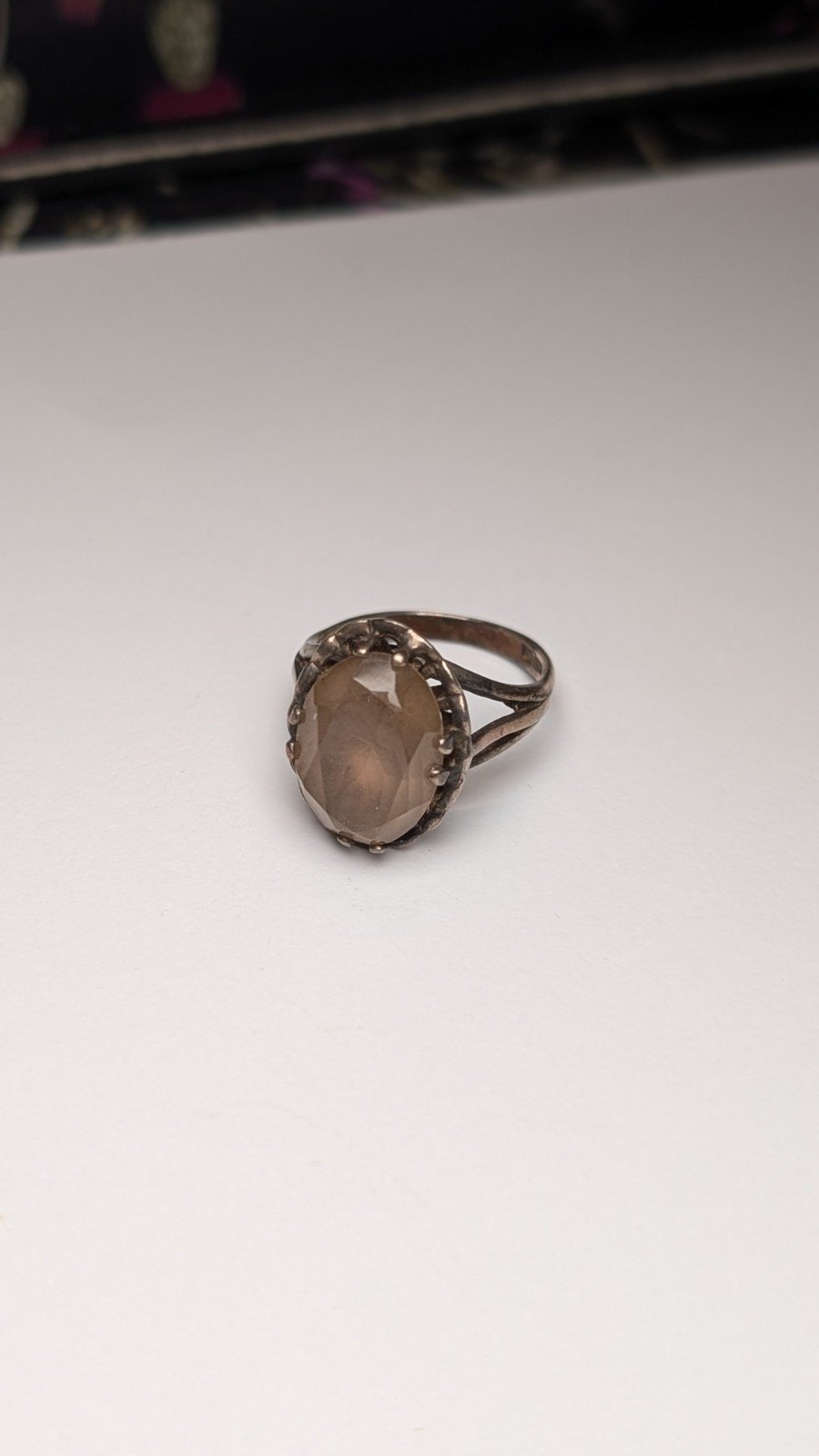 Vintage Sterling Silver Smokey Quartz Gemstone Ring | Size M | 925 Silver