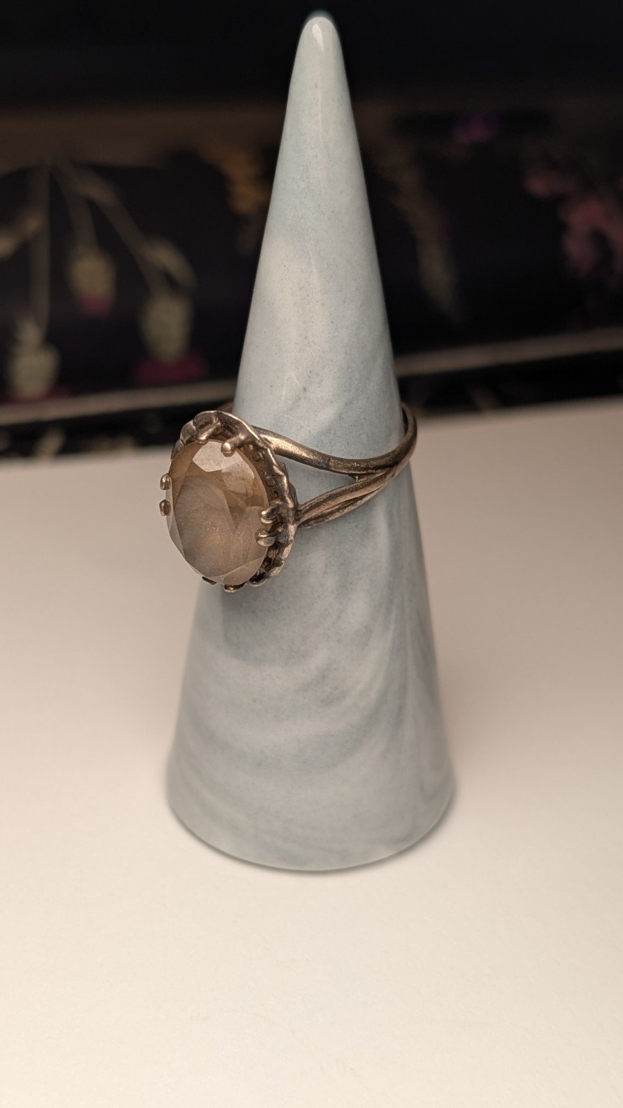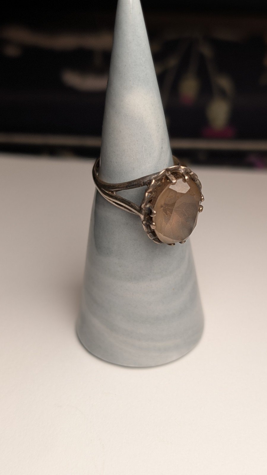 This Vintage Sterling Silver Smokey Quartz Gemstone Ring features a natural brown Smoky Quartz stone set in 925 sterling silver.