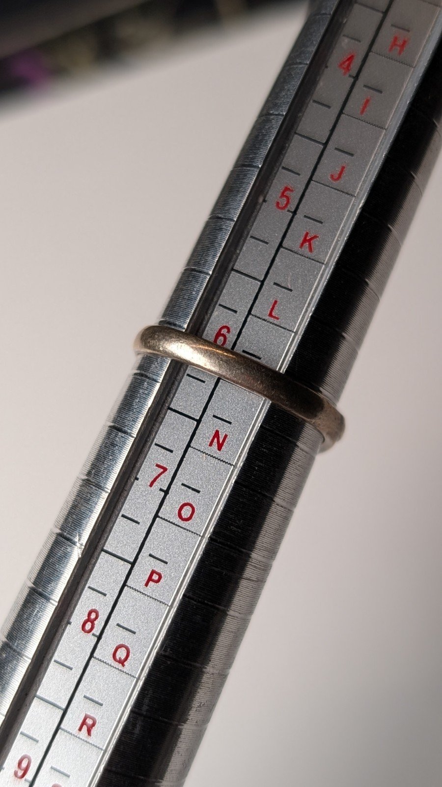 The ring is hallmarked and has a band style, making it a classic and timeless piece of jewellery.