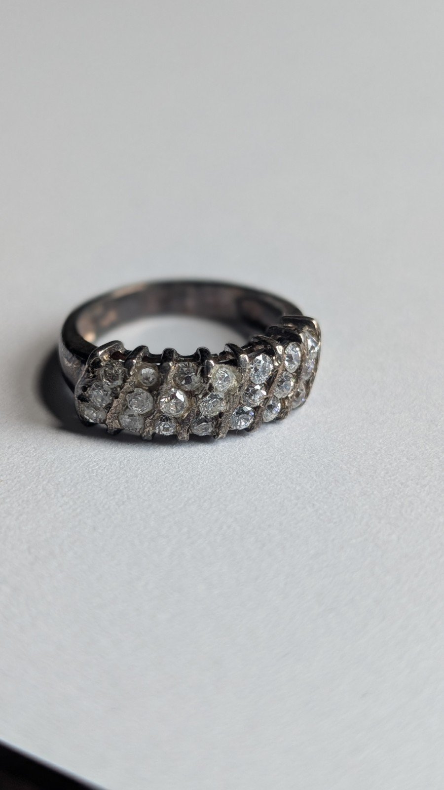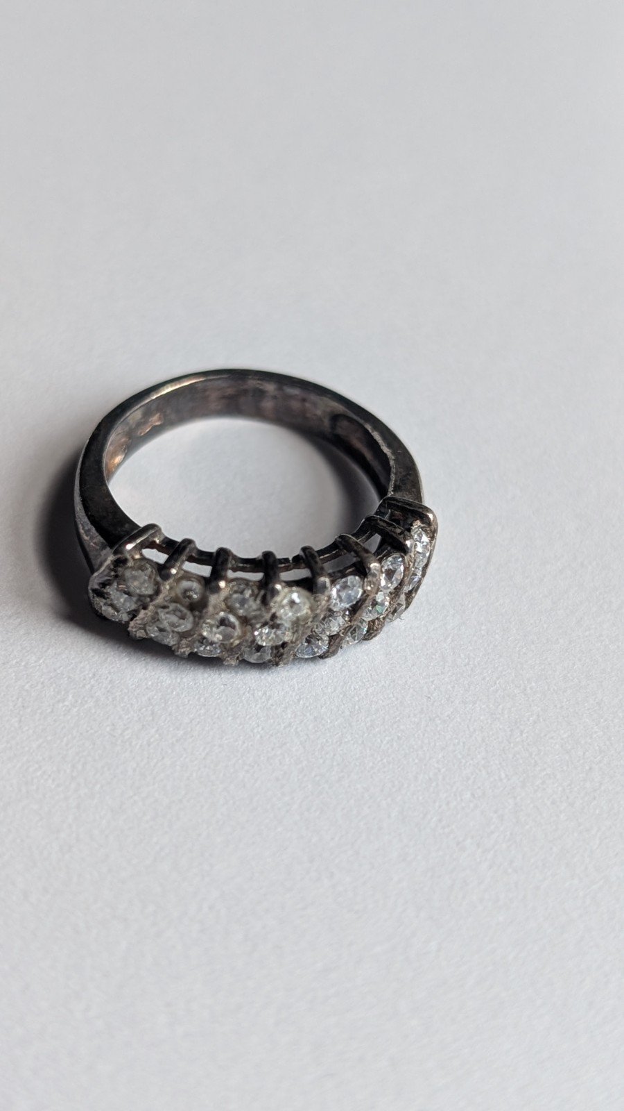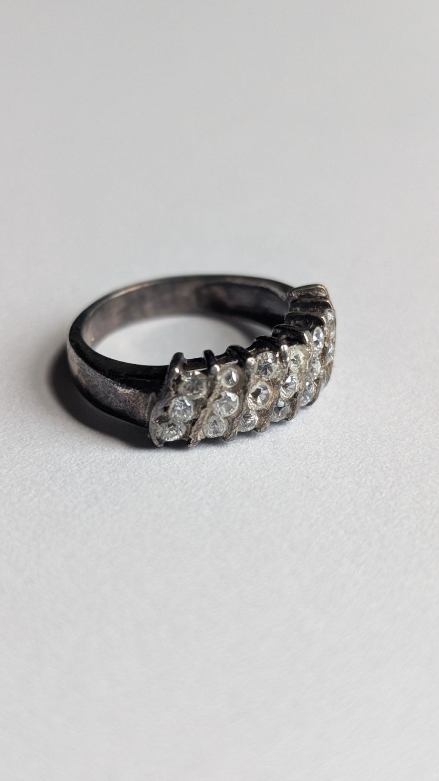 Vintage Sterling Silver Three Row Cluster Ring | Size L 1/2 | 925 Silver