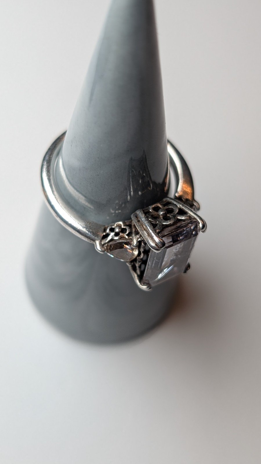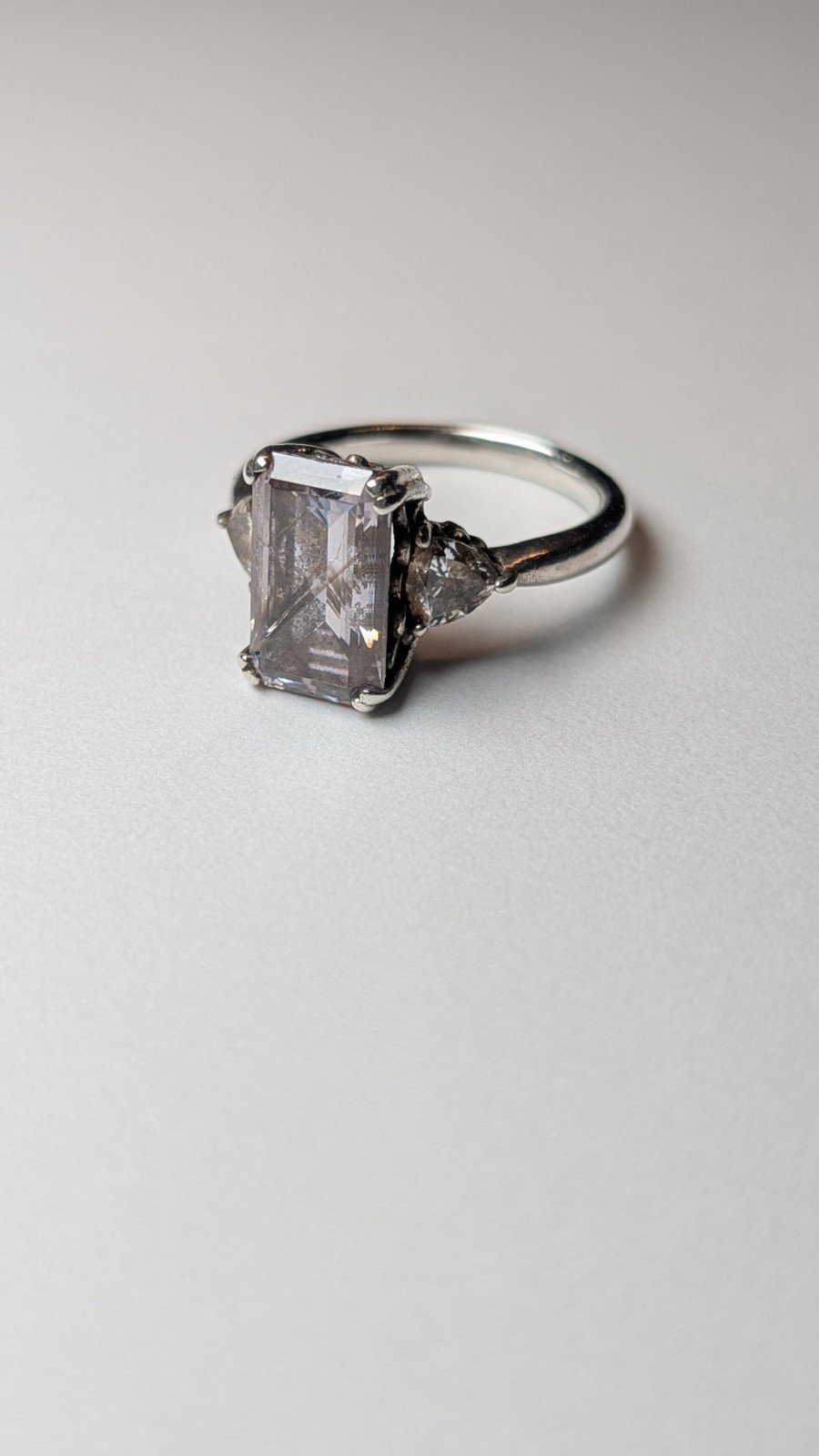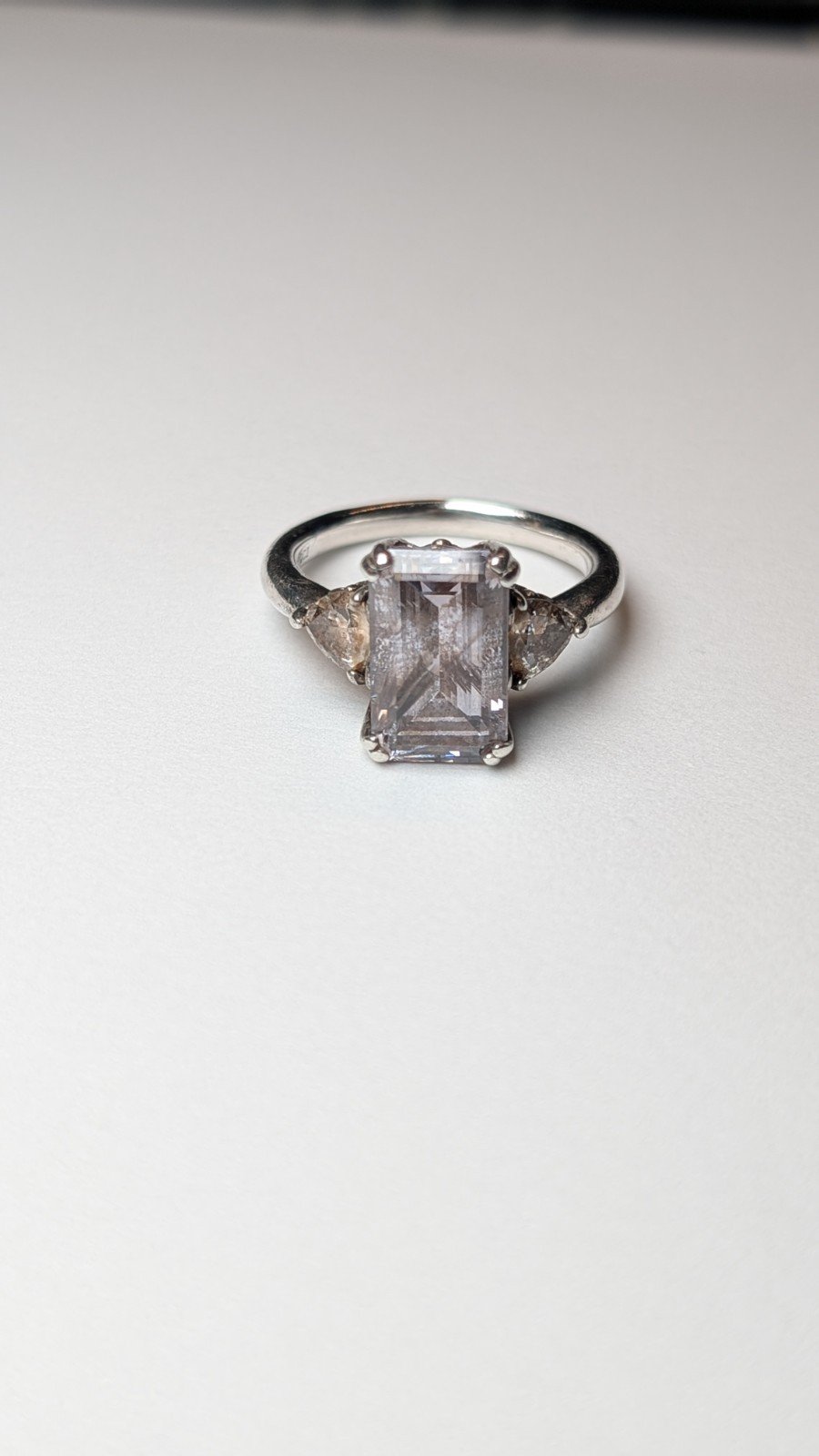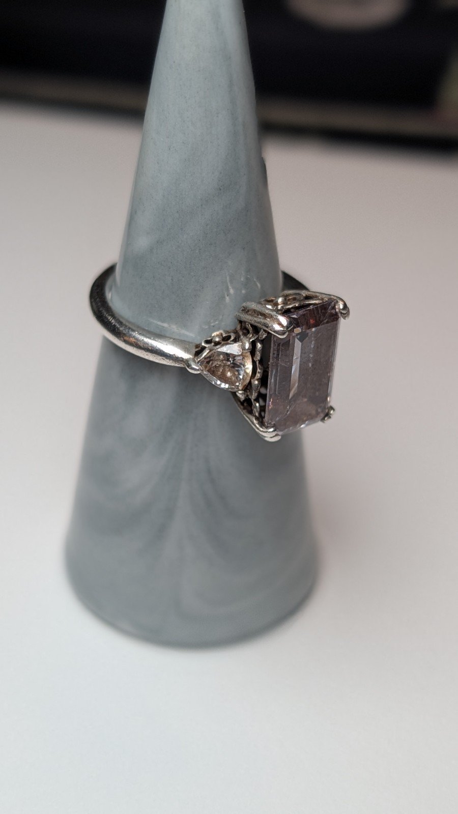 Vintage Sterling Silver Trilogy Clear DQCZ Gemstone Ring | Size Q
