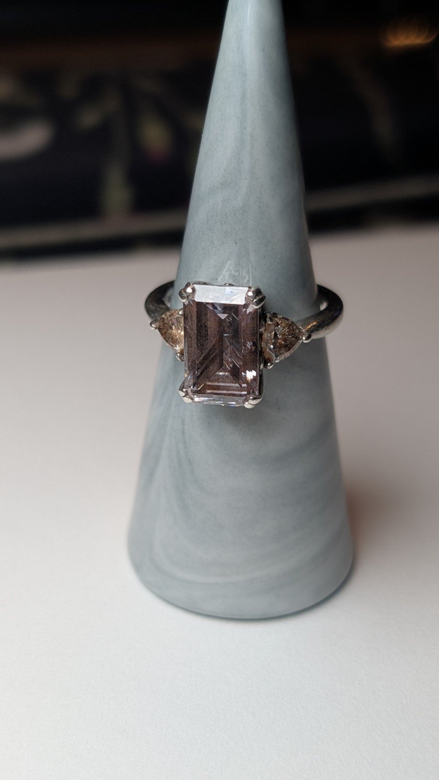 The middle Gemstone has internal cracks as seen in the pictures.