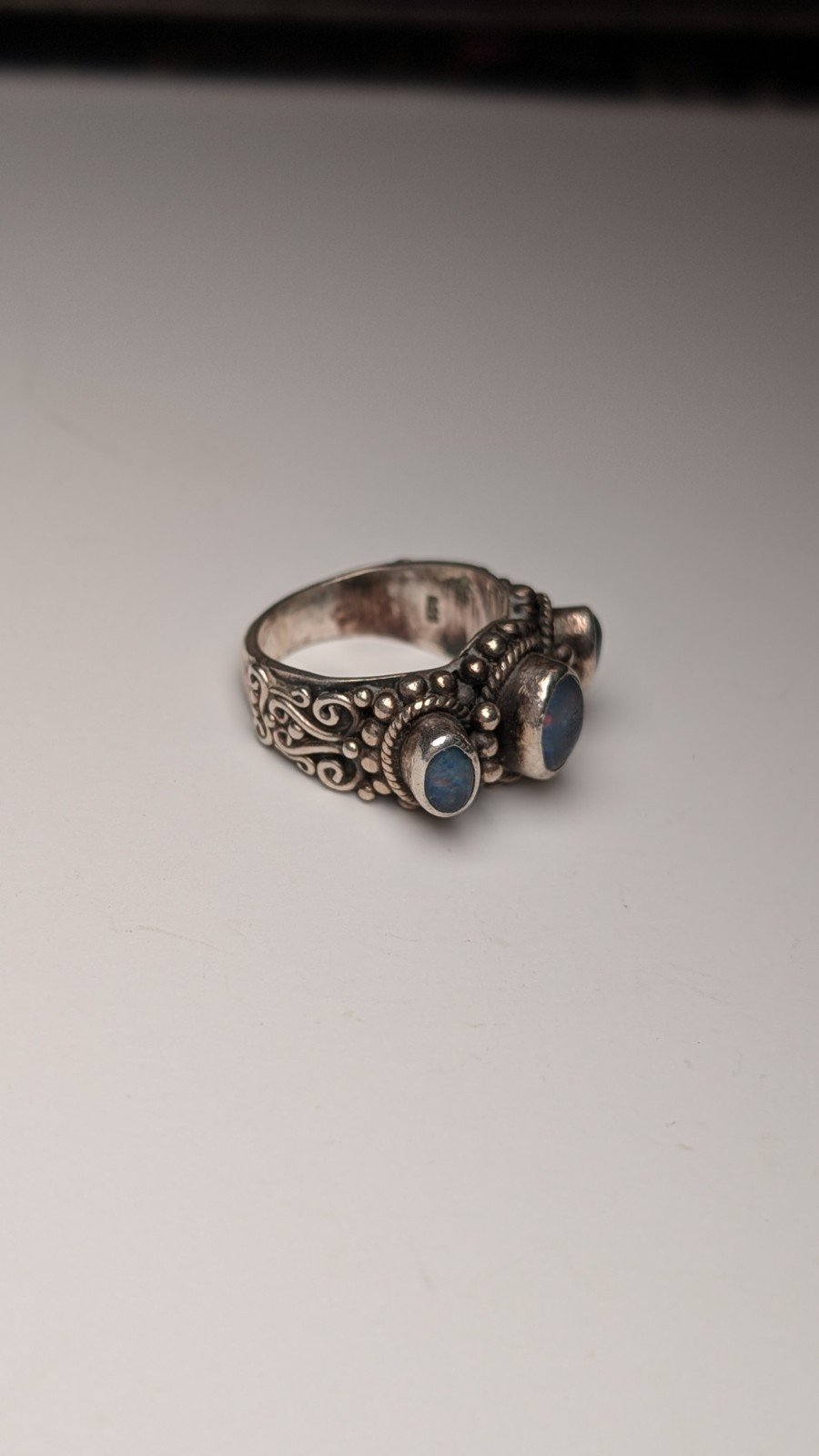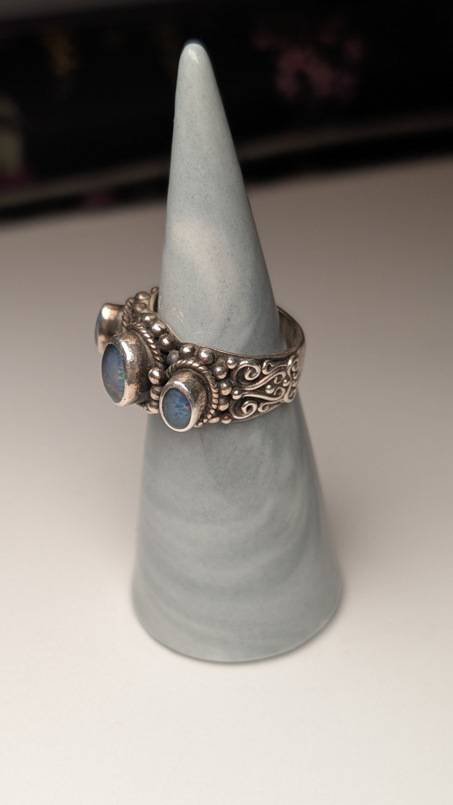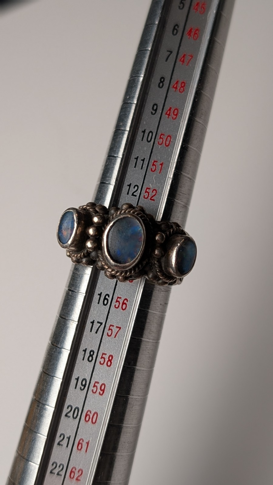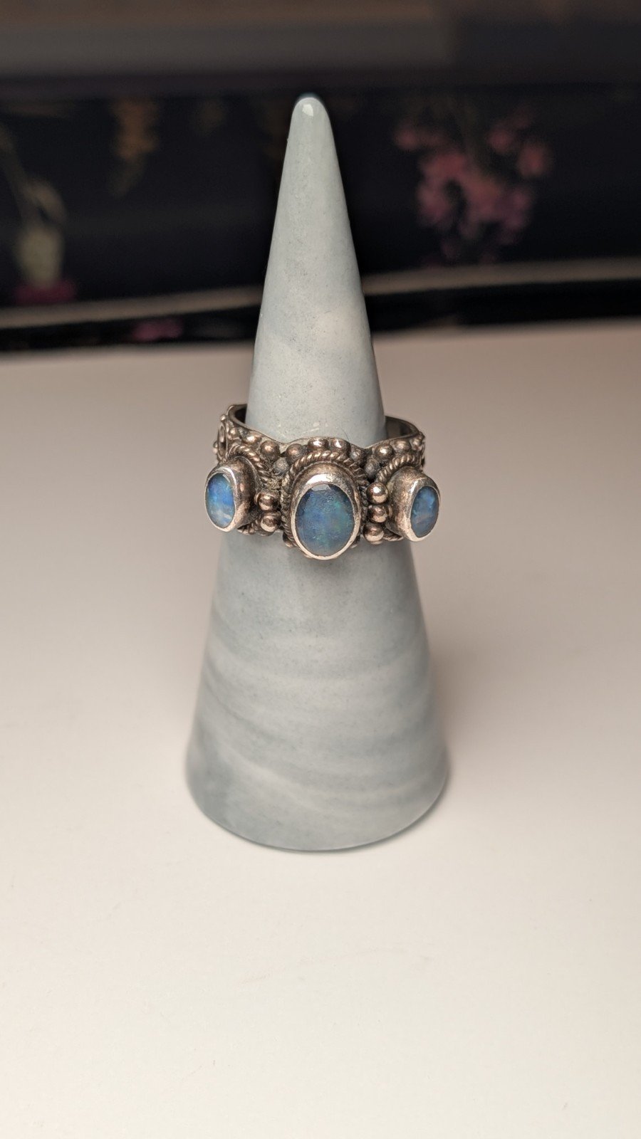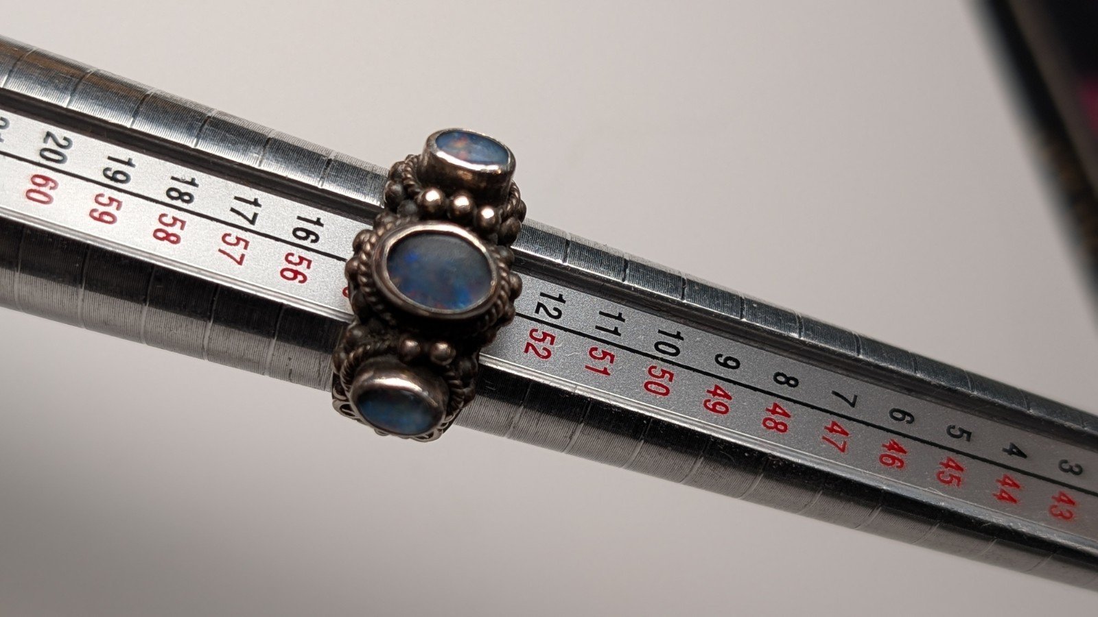 Vintage Sterling Silver Triple Opal Ring | Size N | 925 Silver