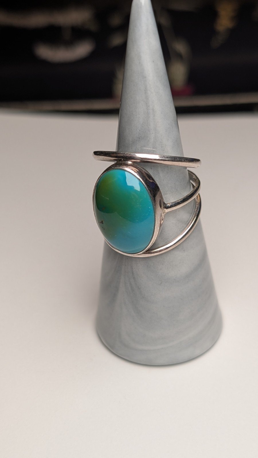 Be the first to review “Vintage Sterling Silver Turquoise Ring | Size Q 1/2 | Strange Darker Toning”