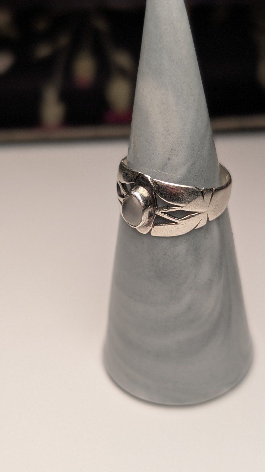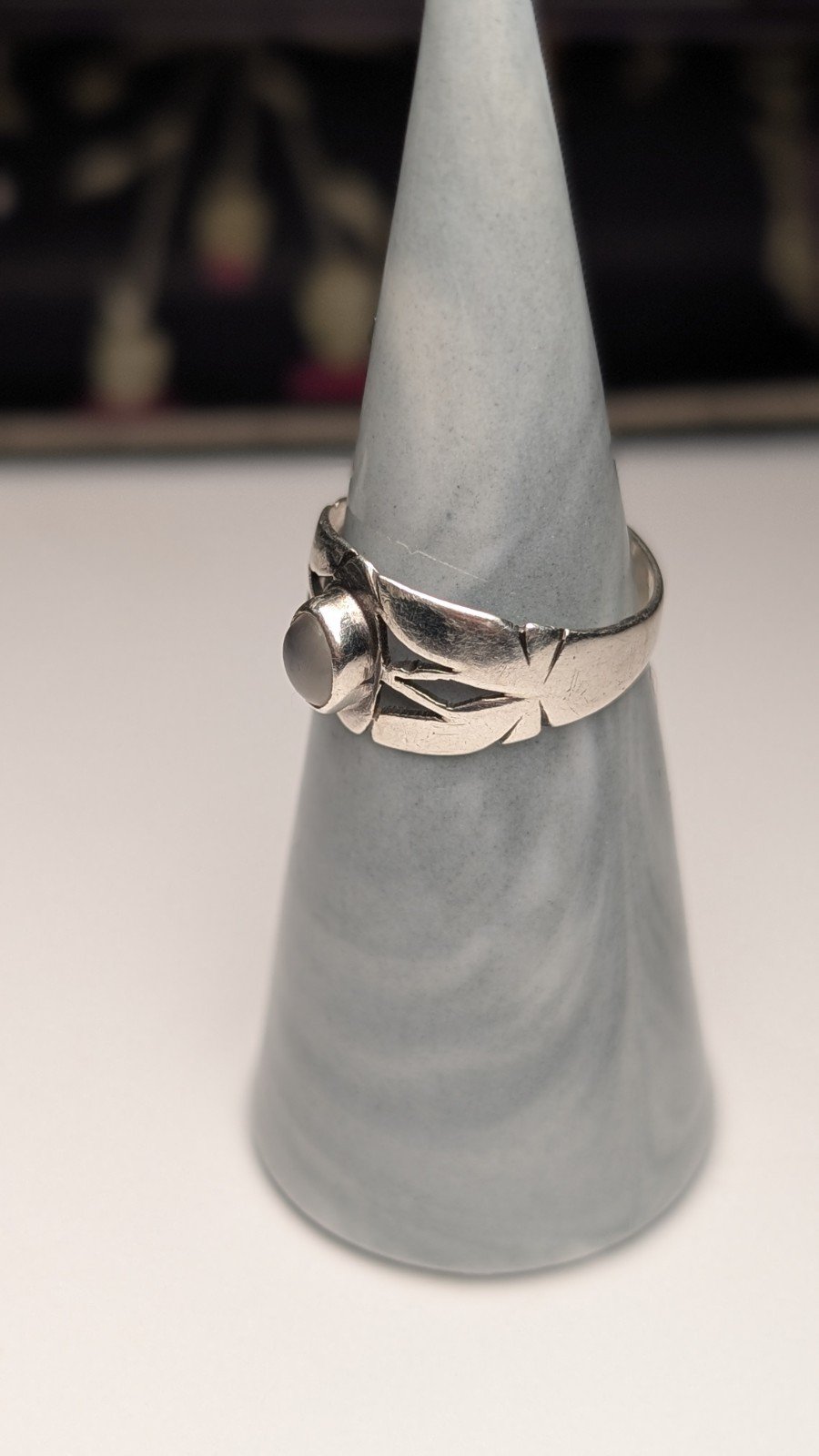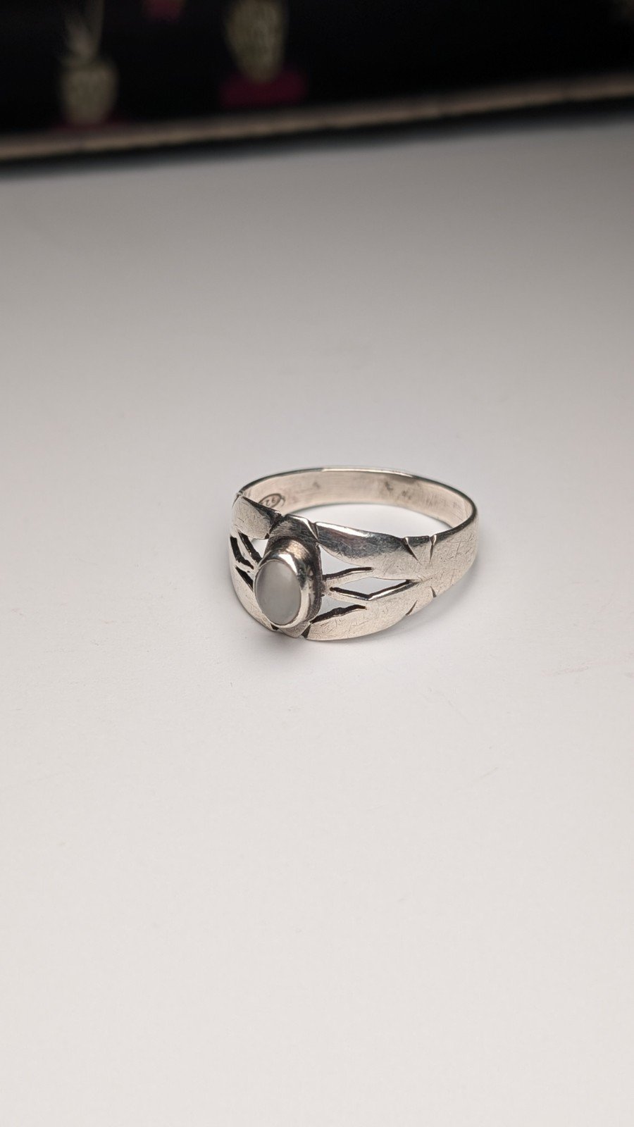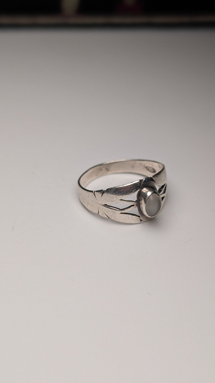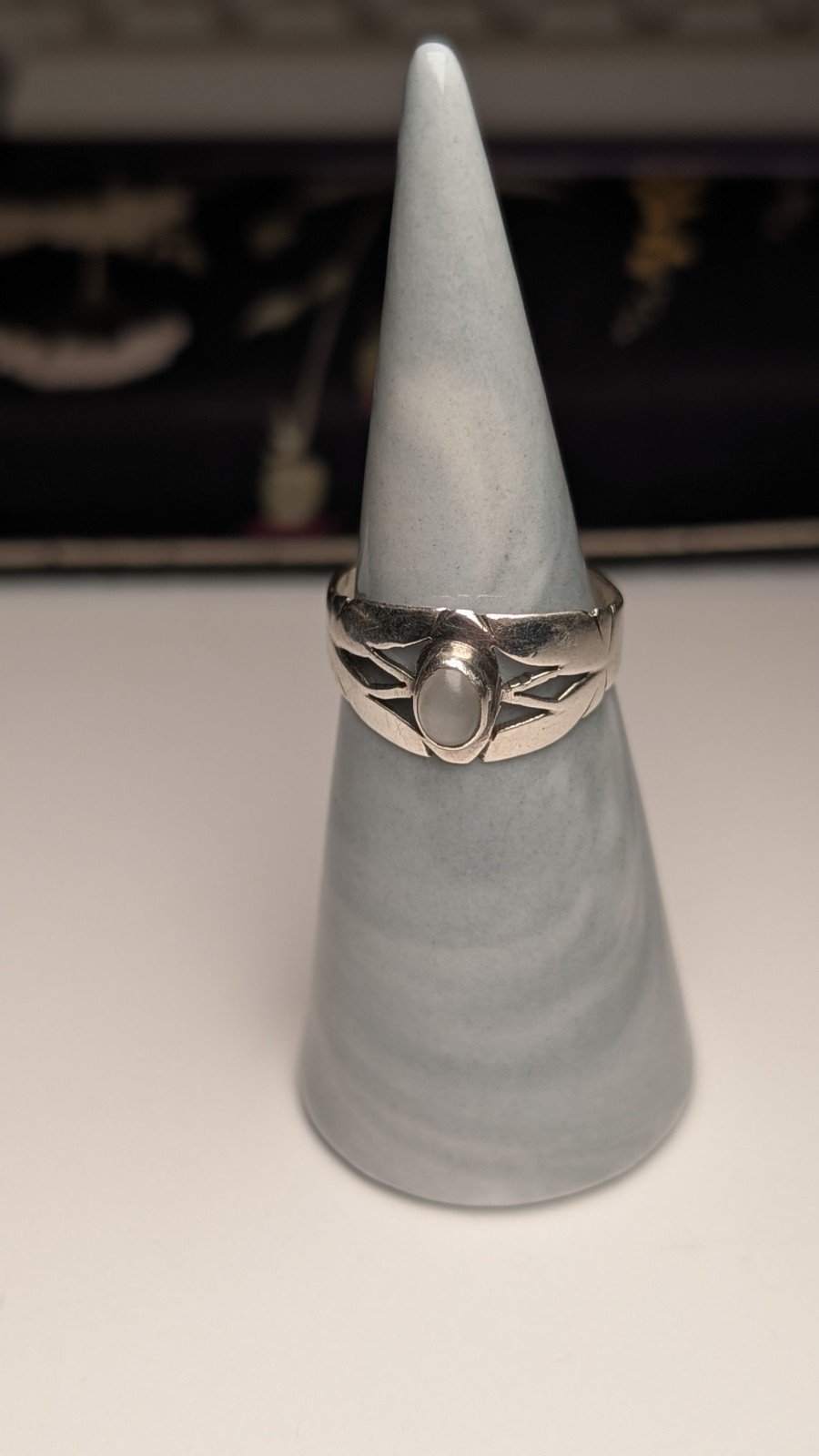 Vintage Sterling Silver White Chalcedony Ring | Size O | 925 Silver
