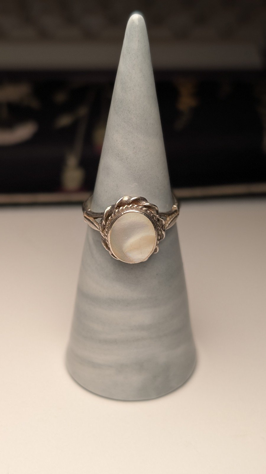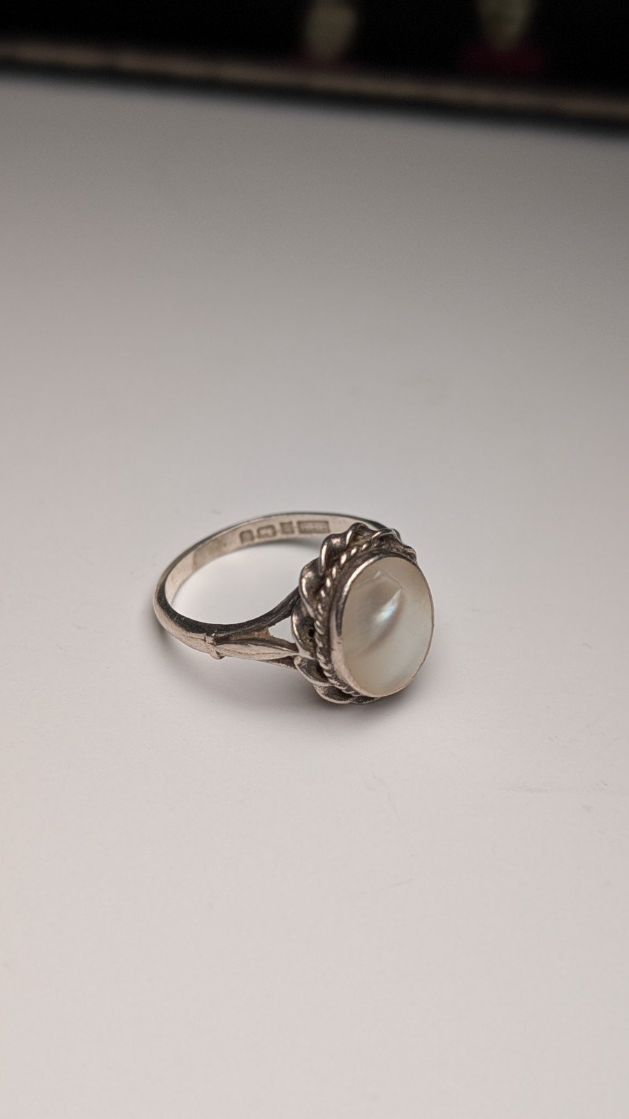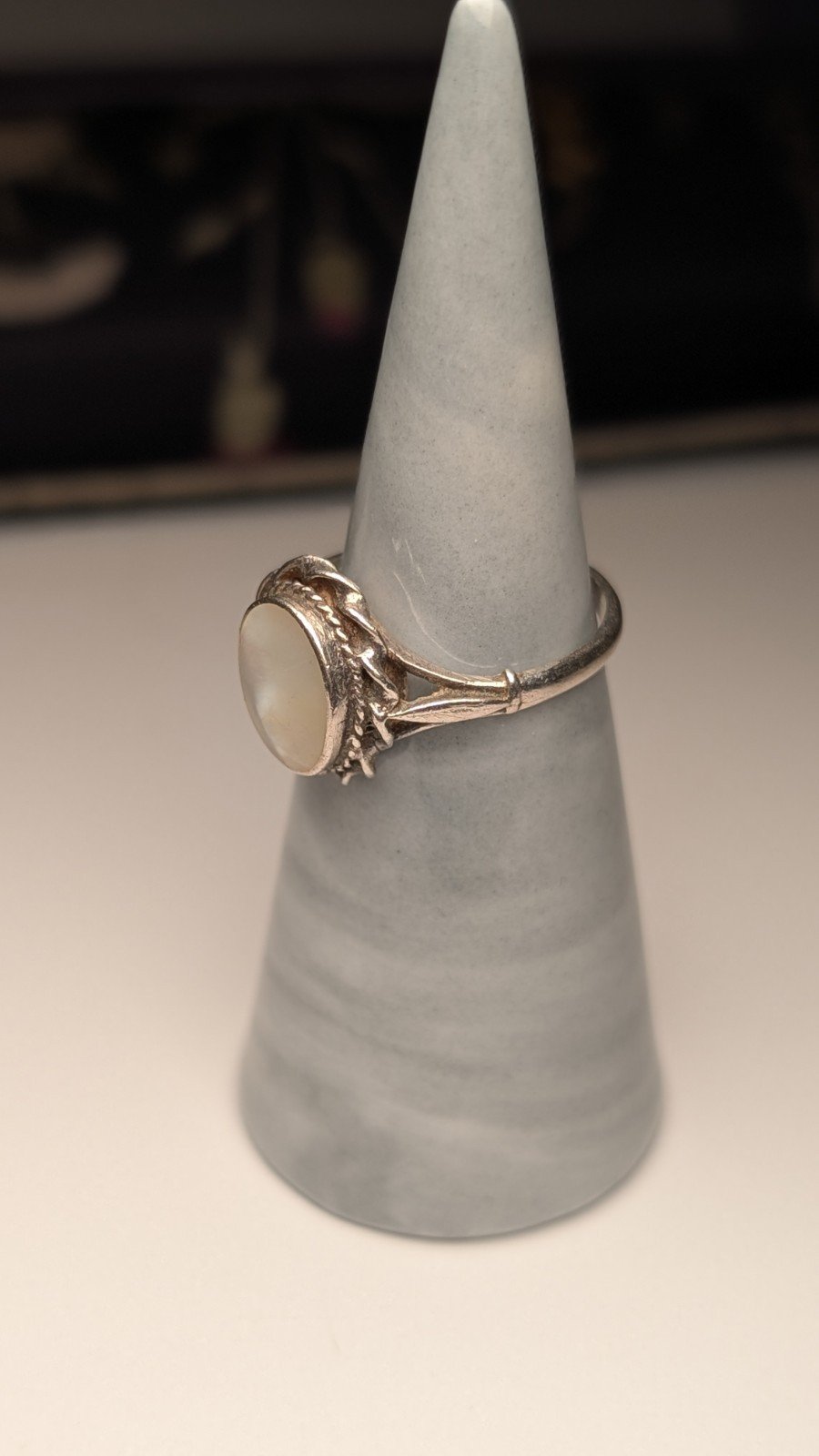 Vintage Sterling Silver White Opal 1978 Ring | Size M 1/2 | 925 Silver