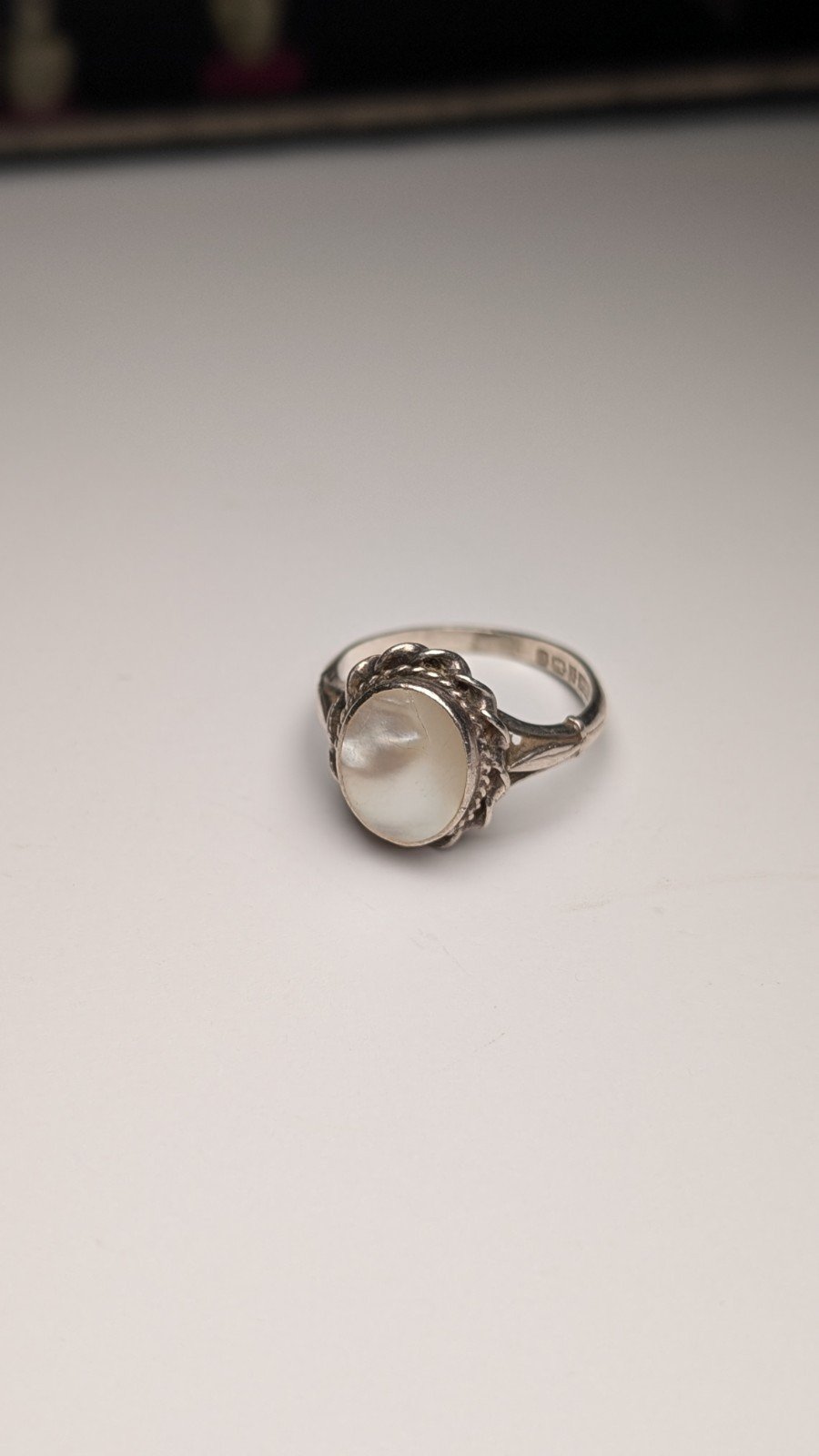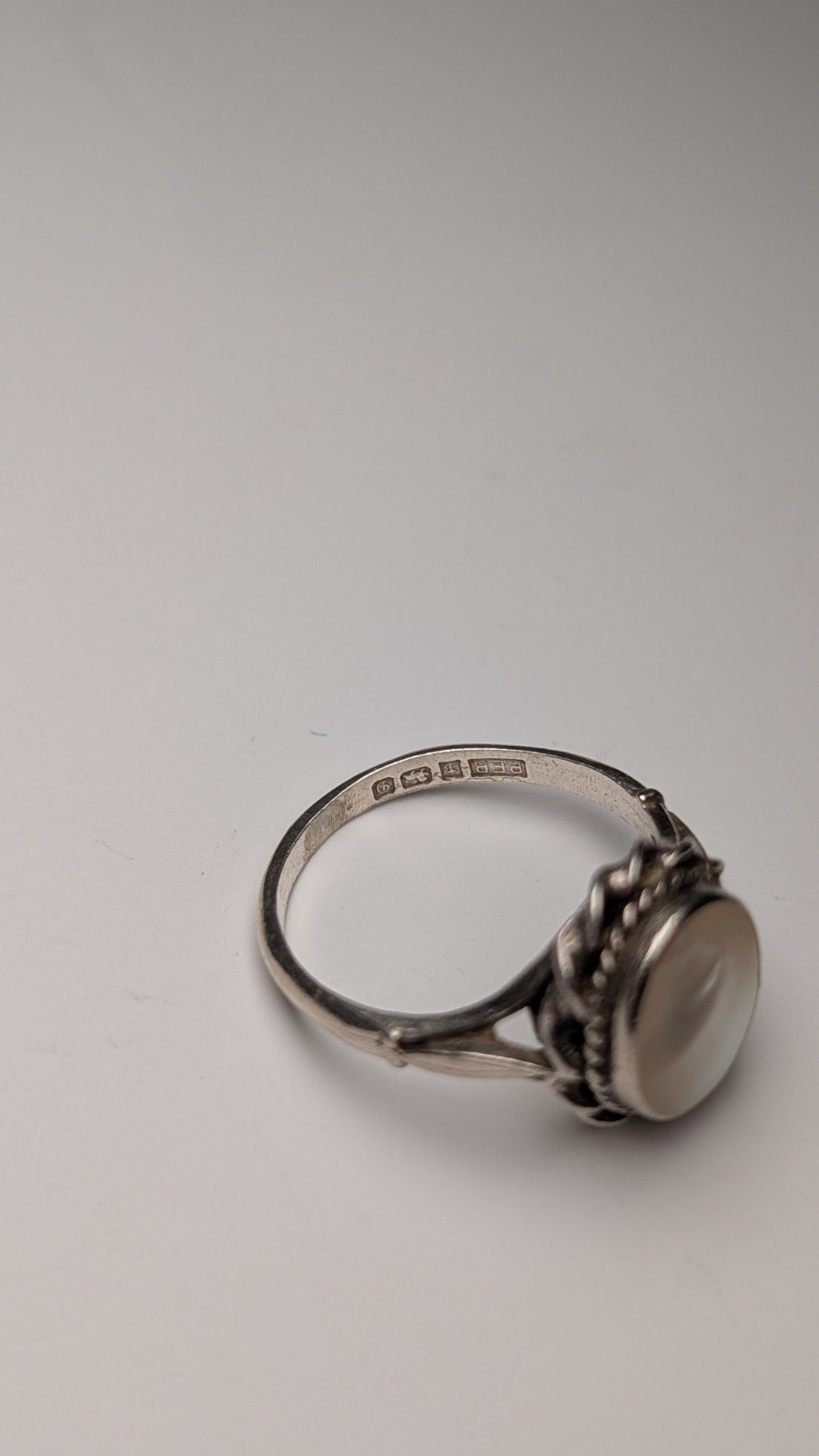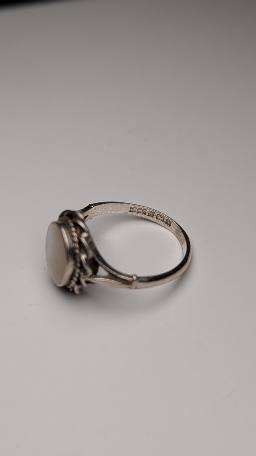 Vintage Sterling Silver White Opal 1978 Ring | Size M 1/2 | 925 Silver