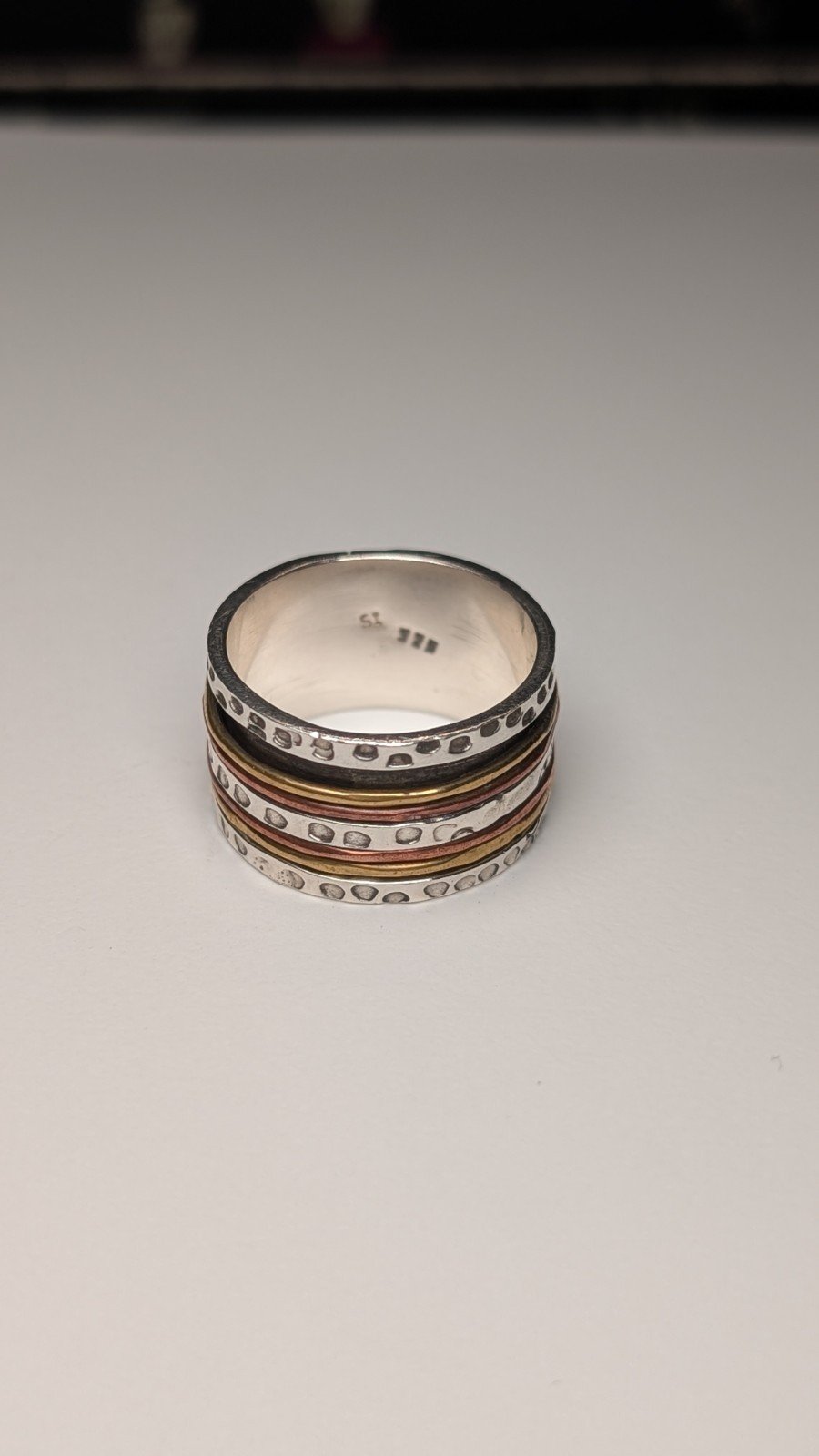 Vintage Sterling Silver With Gold/Copper Tone Thick Spinner Ring | Size U