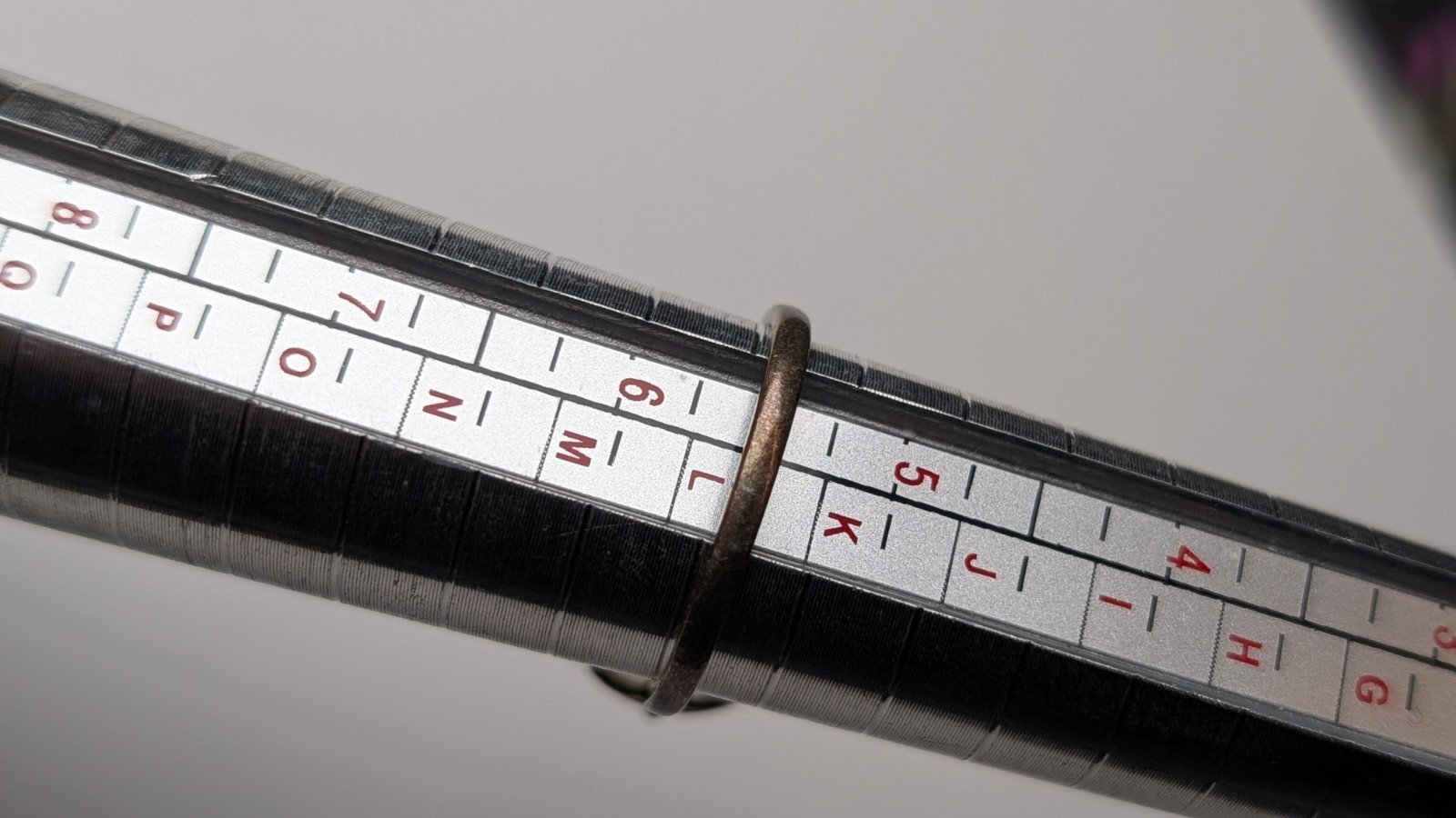 The ring is a size K 1/2, making it perfect for someone who enjoys unique and timeless pieces.