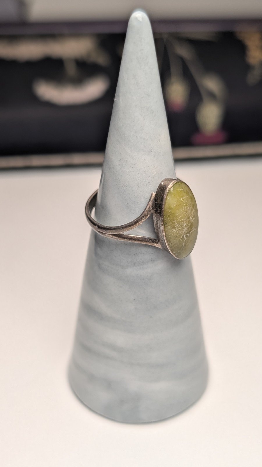 Vintage Sterling Silver Yellow Serpentine Ring | Size K 1/2 | 925 Silver