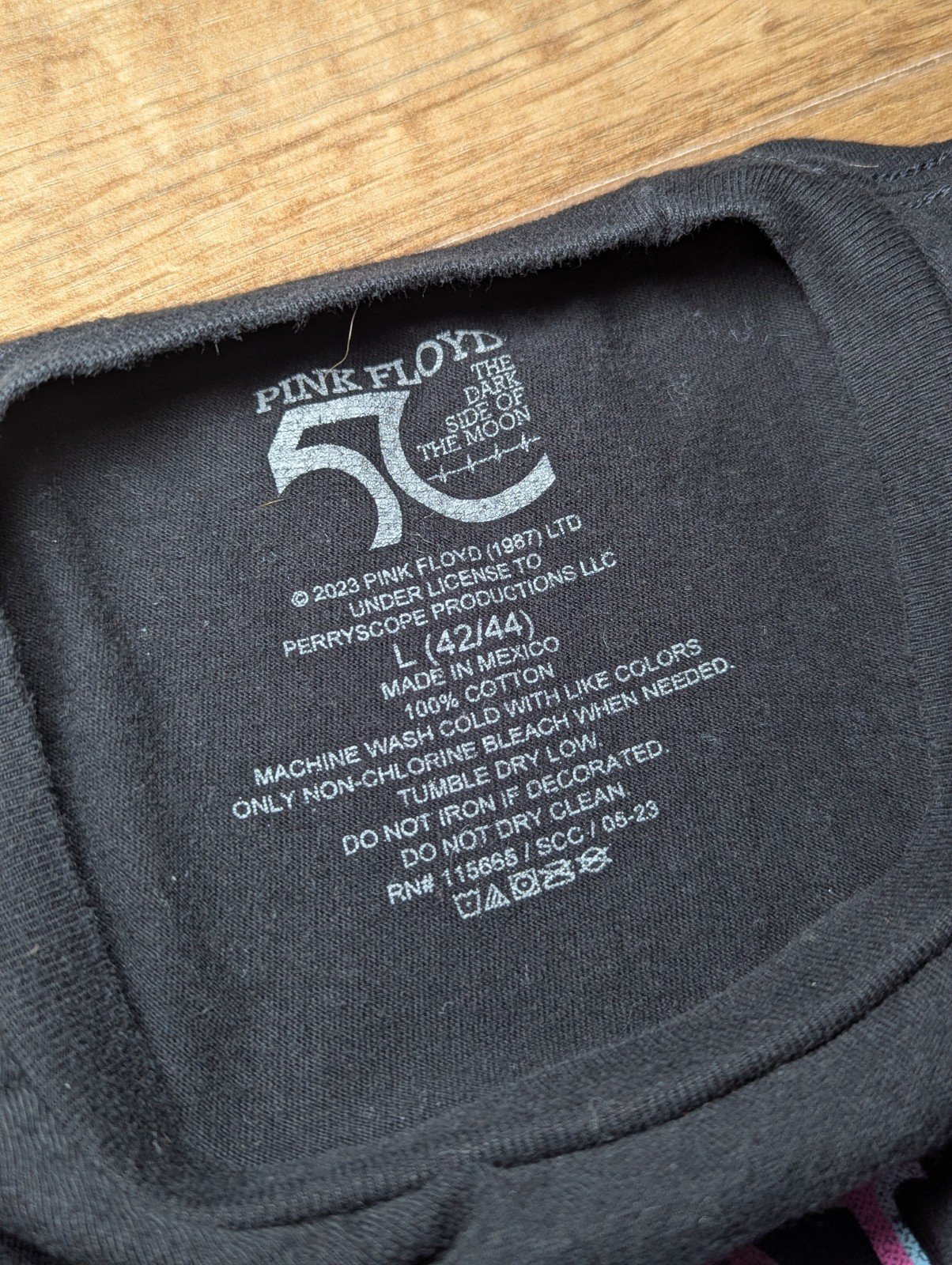 This Vintage Style Pink Floyd The Darkside Of The Moon Black T-shirt in size Large is a must-have for any music lover.