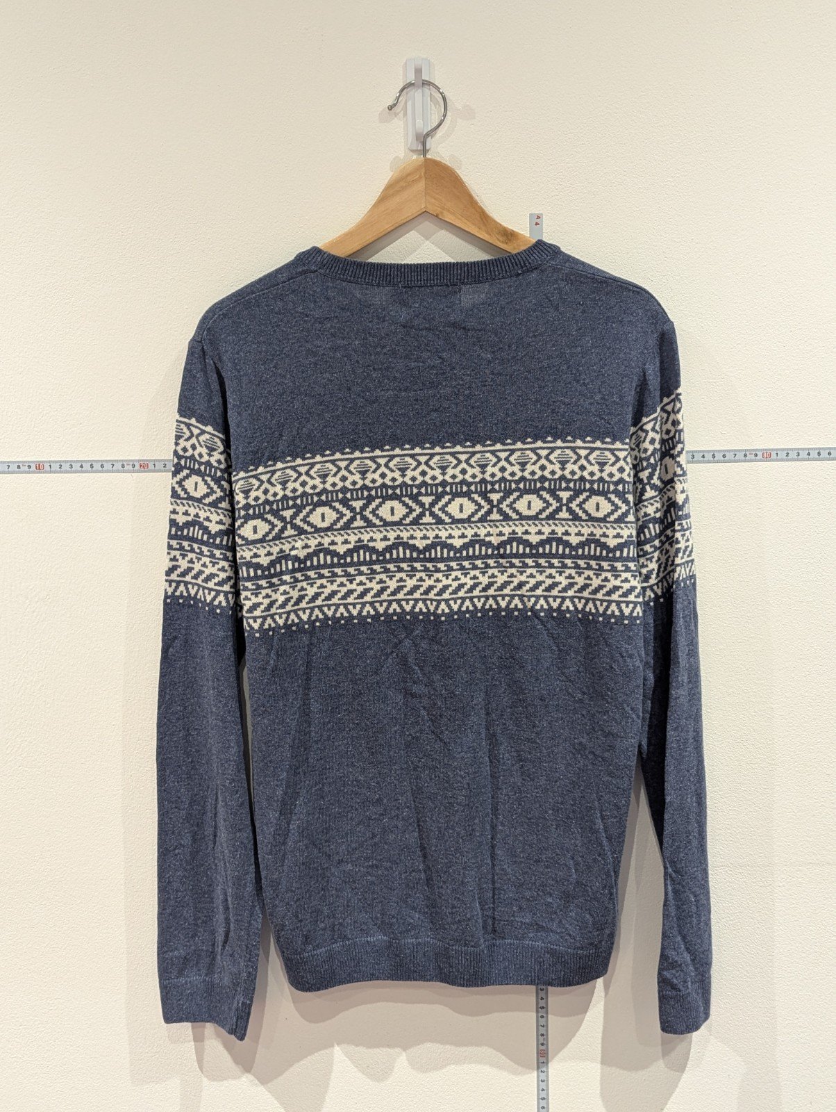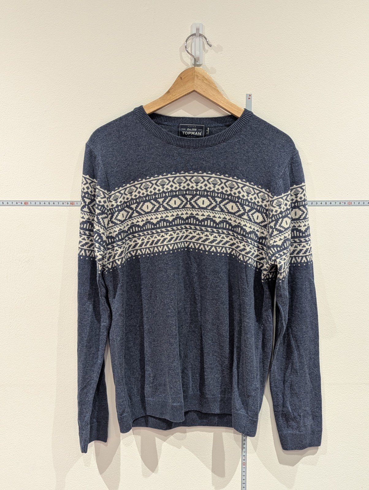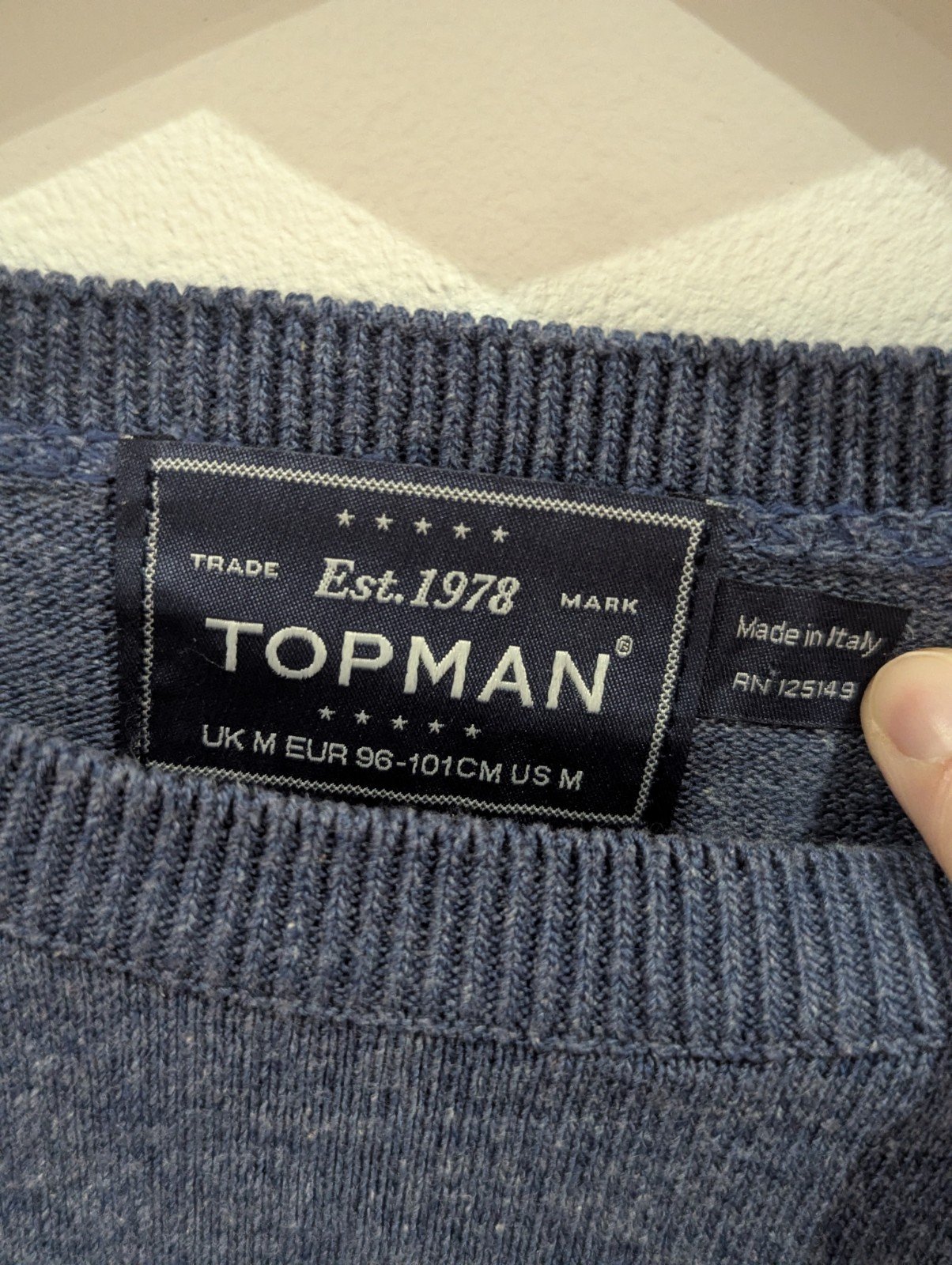 Vintage Style Topman Mens Thin Jumper Size Medium Blue and White Long Sleeve Top