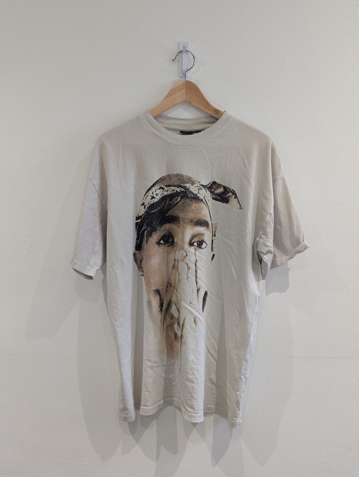 This Vintage Style Tupac T Shirt in size medium features a classic design with a white colour and short sleeves, made from comfortable cotton material.